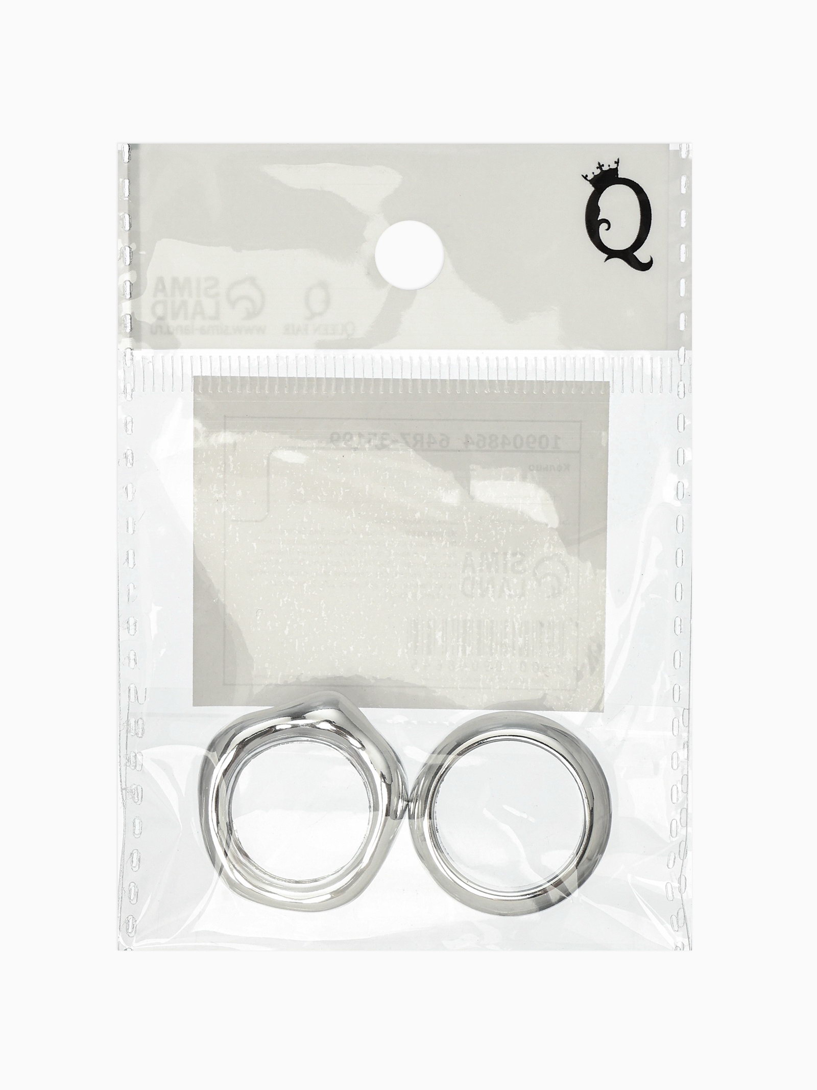 Кольцо пластик "Стиль", набор 2 шт. размер 17, цвет серебро, 3x2.5x0.5 см., QF, Китай