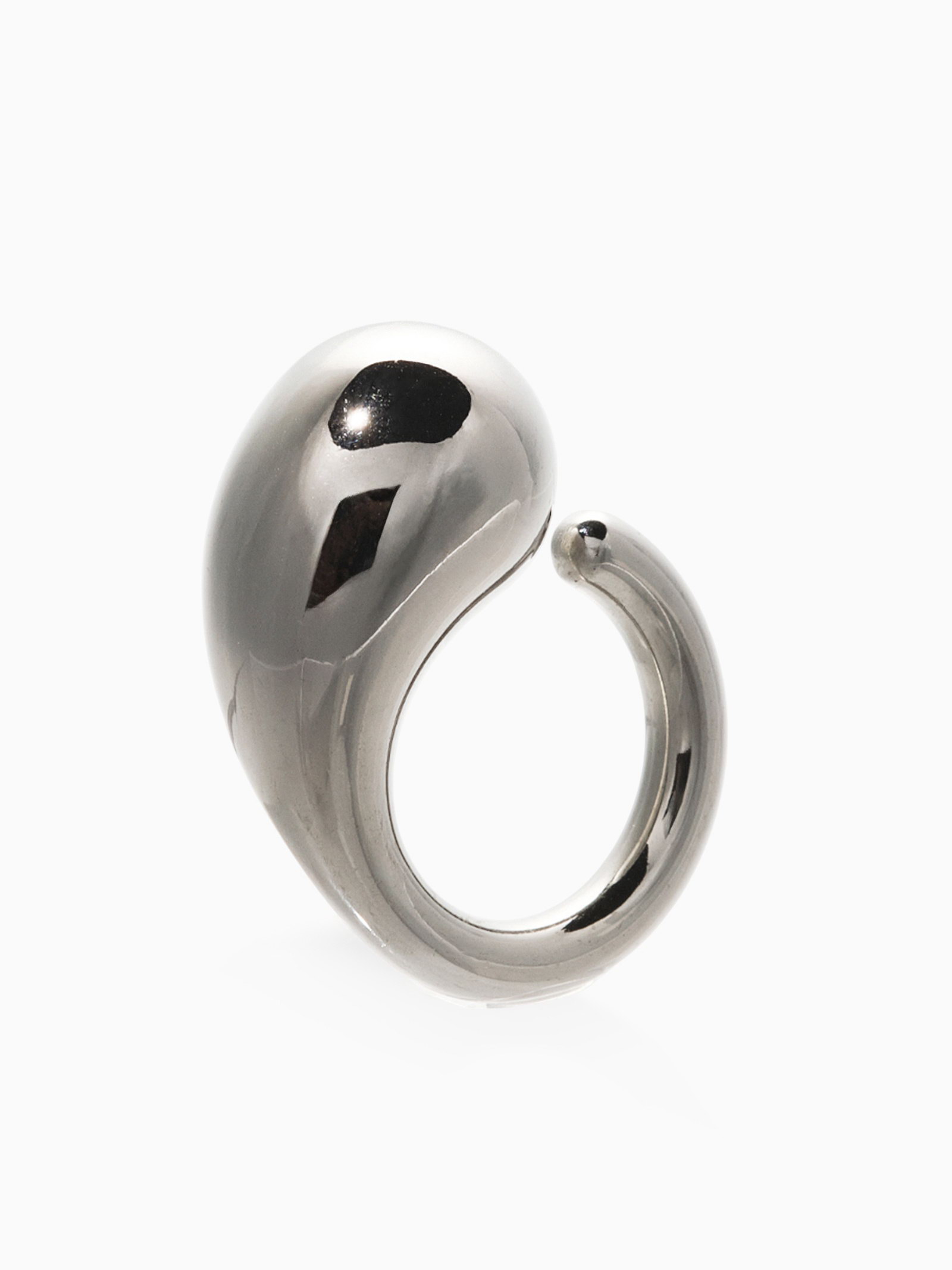 Кольцо крупное "Капля Бо", размер 17, пластик, цвет серебро, 2.5x3.5x1.5 см., QF, Китай