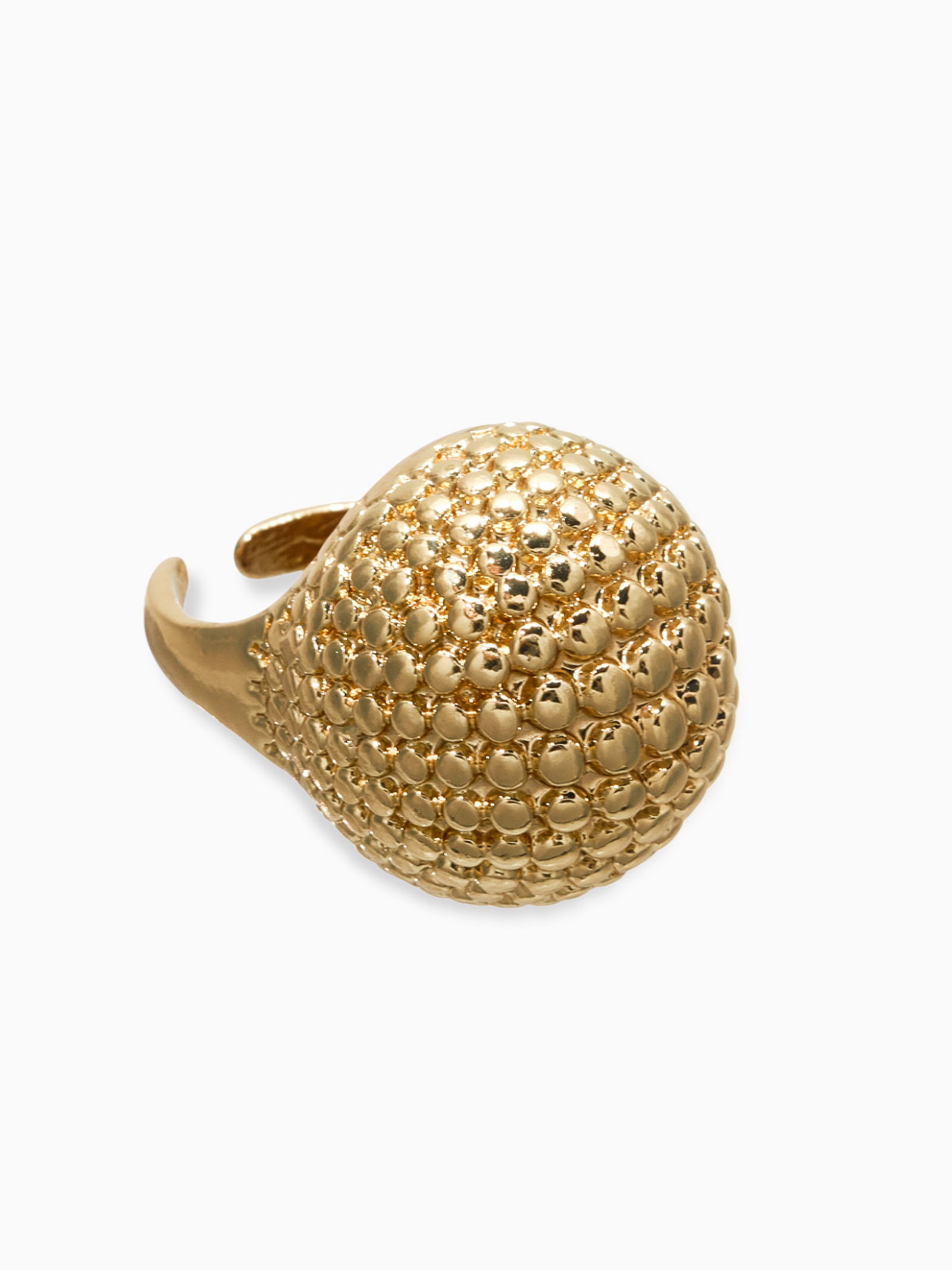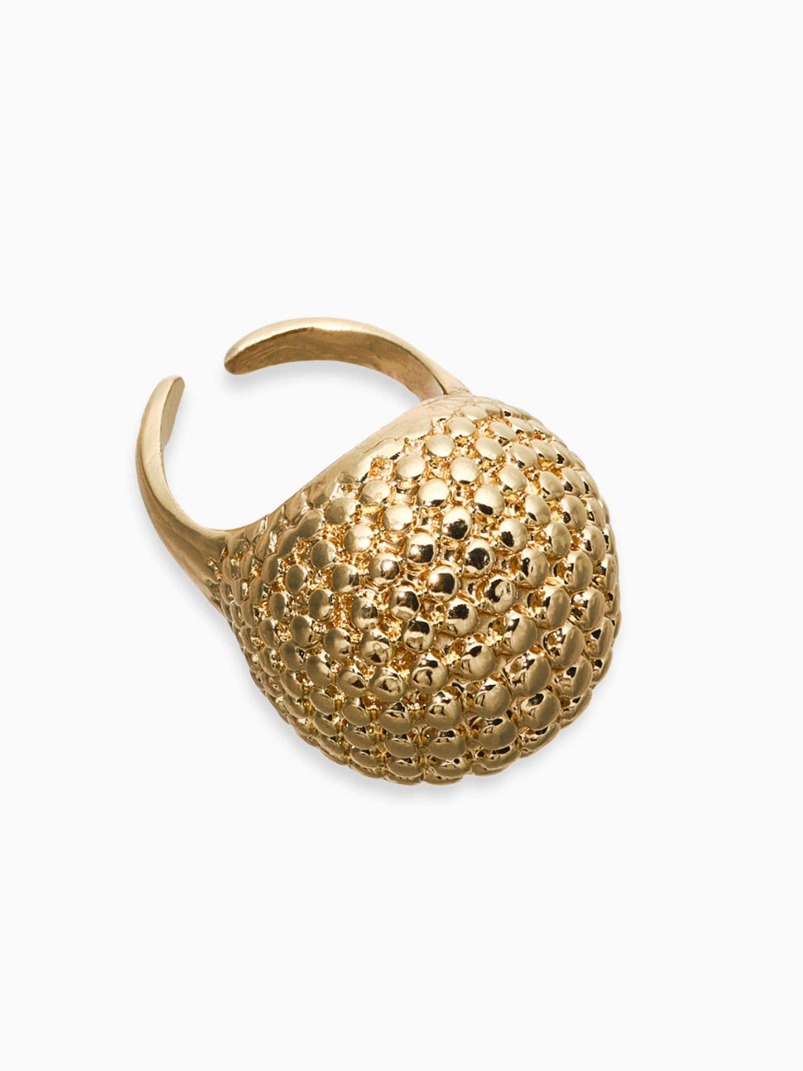 Кольцо металл "Шар сетка", цвет золото, безразмерное, 3x4x3 см., QF, Китай