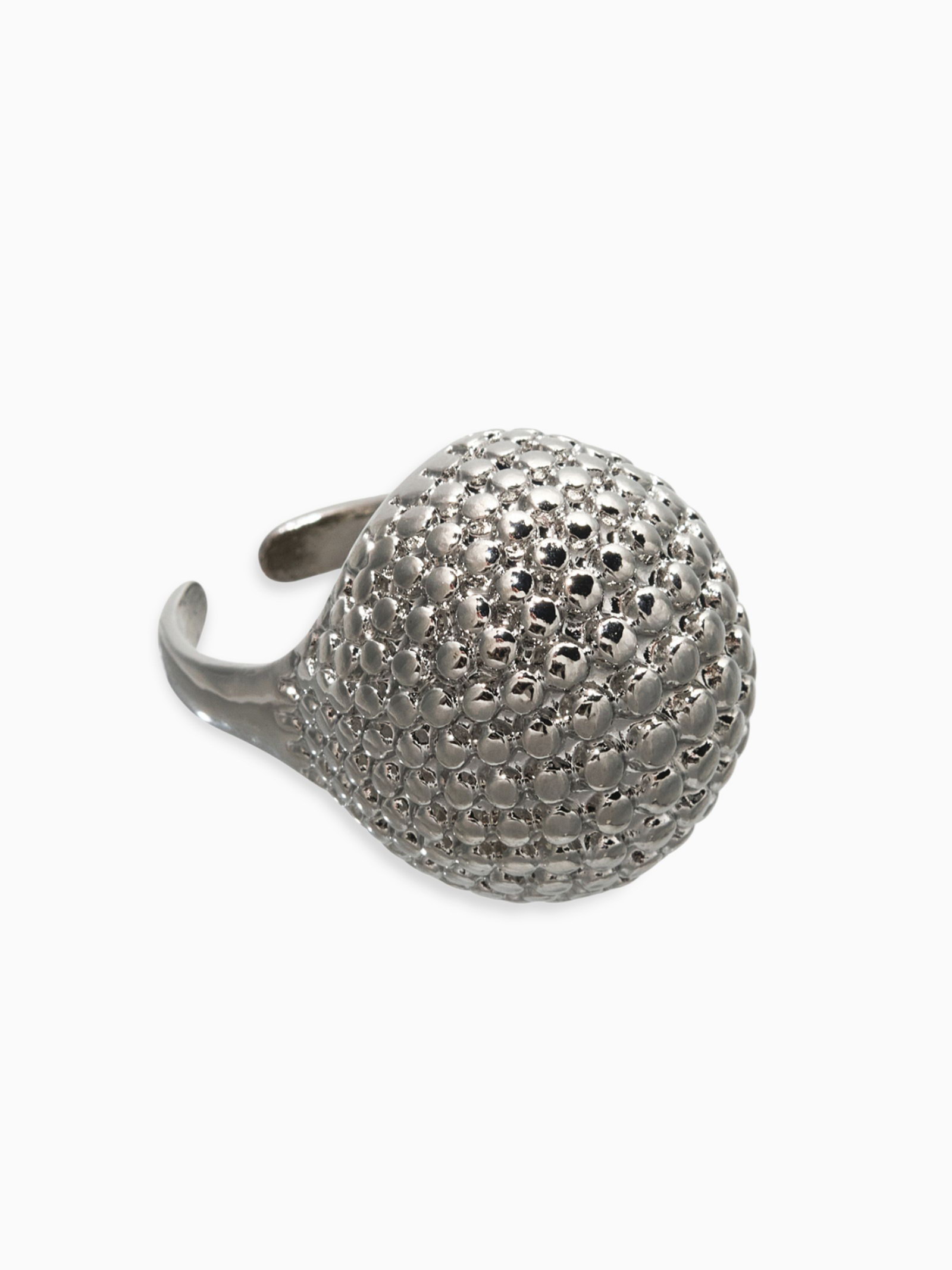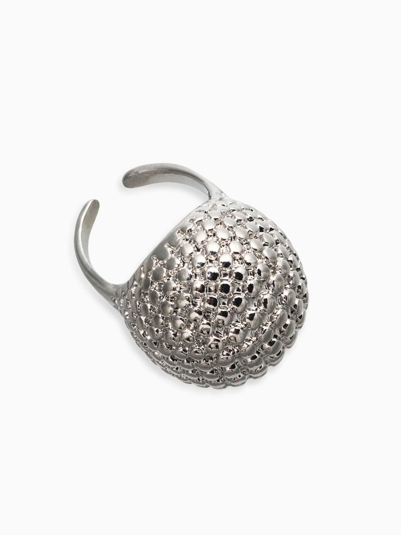 Кольцо металл "Шар сетка", цвет серебро, безразмерное, 3x4x3 см., QF, Китай