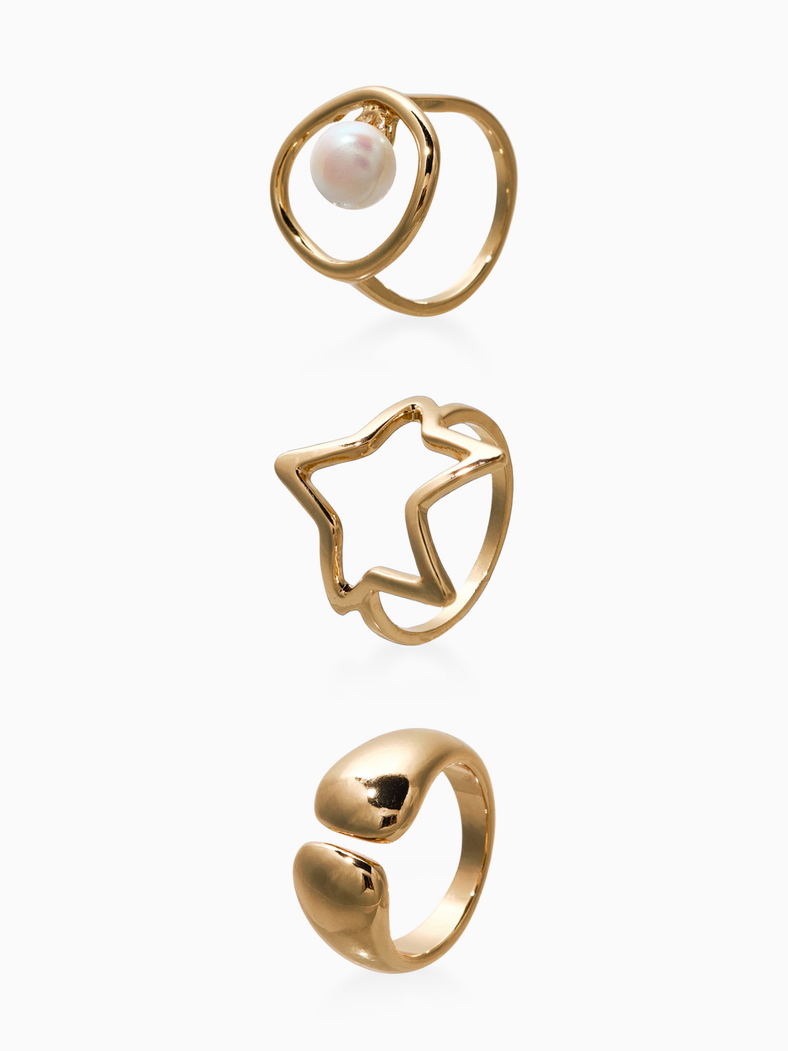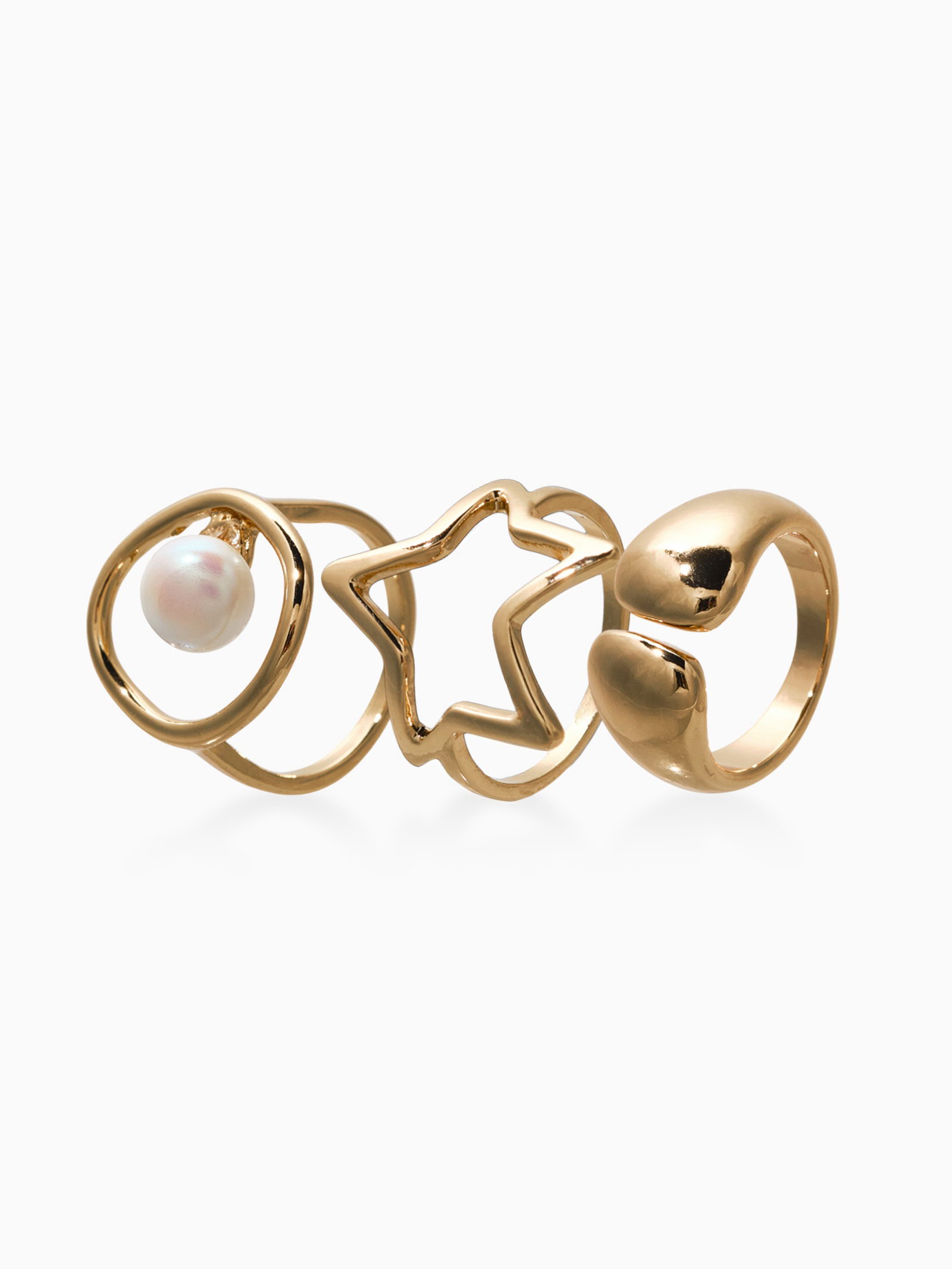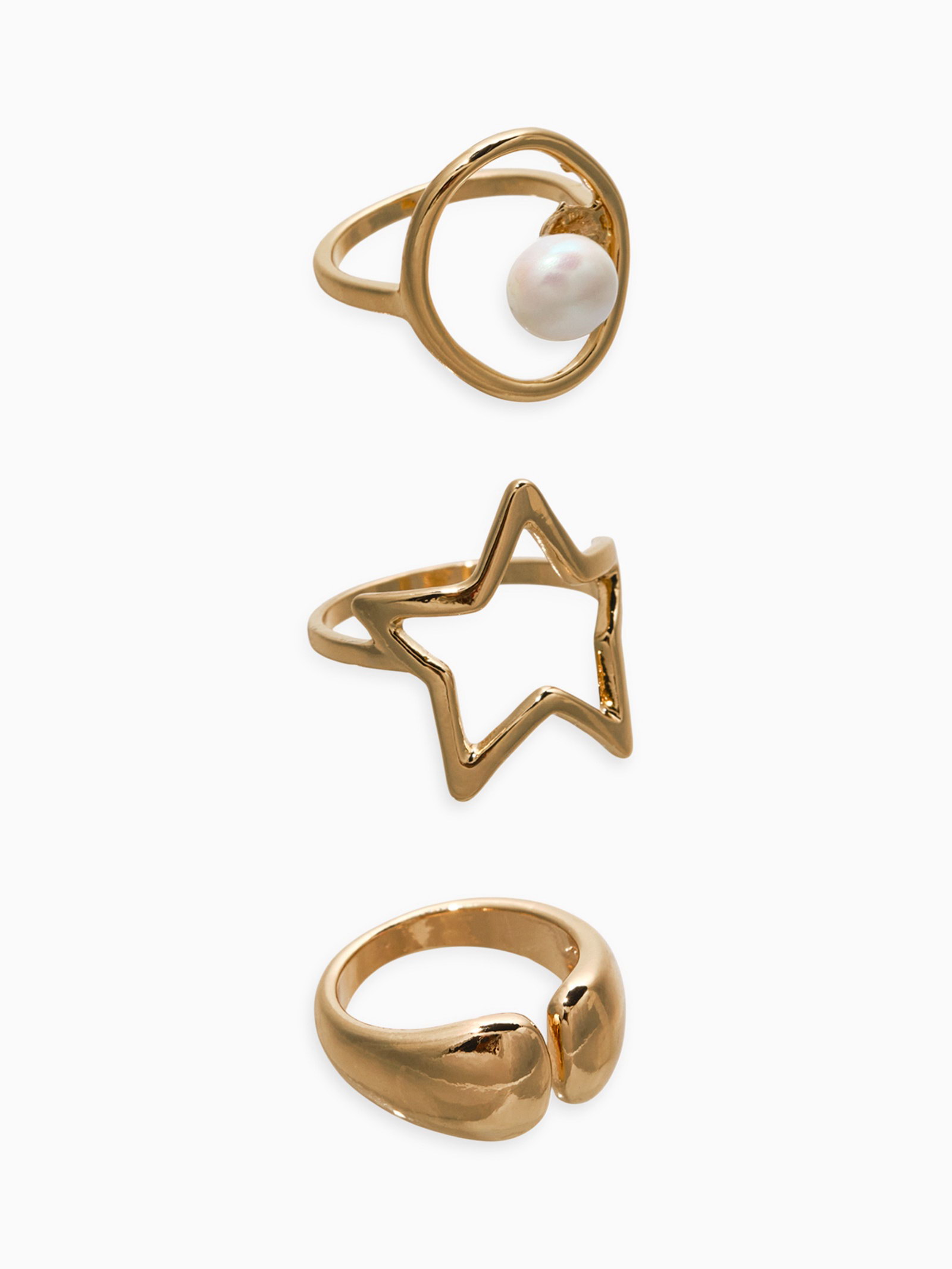 Набор колец "Новый стиль. Космос", 3 шт. размер МИКС, белый в золоте, 2x2x2 см., QF, Китай