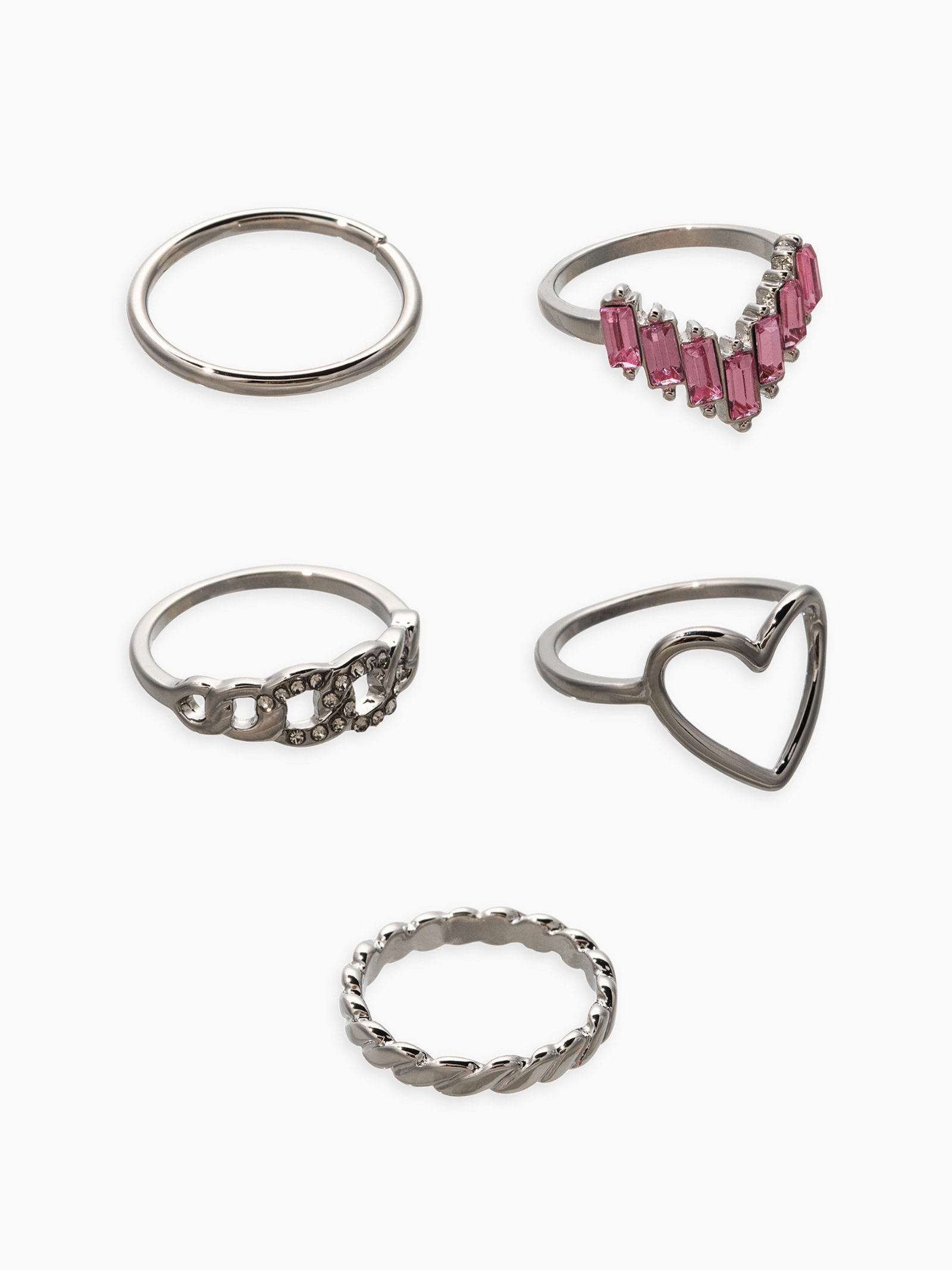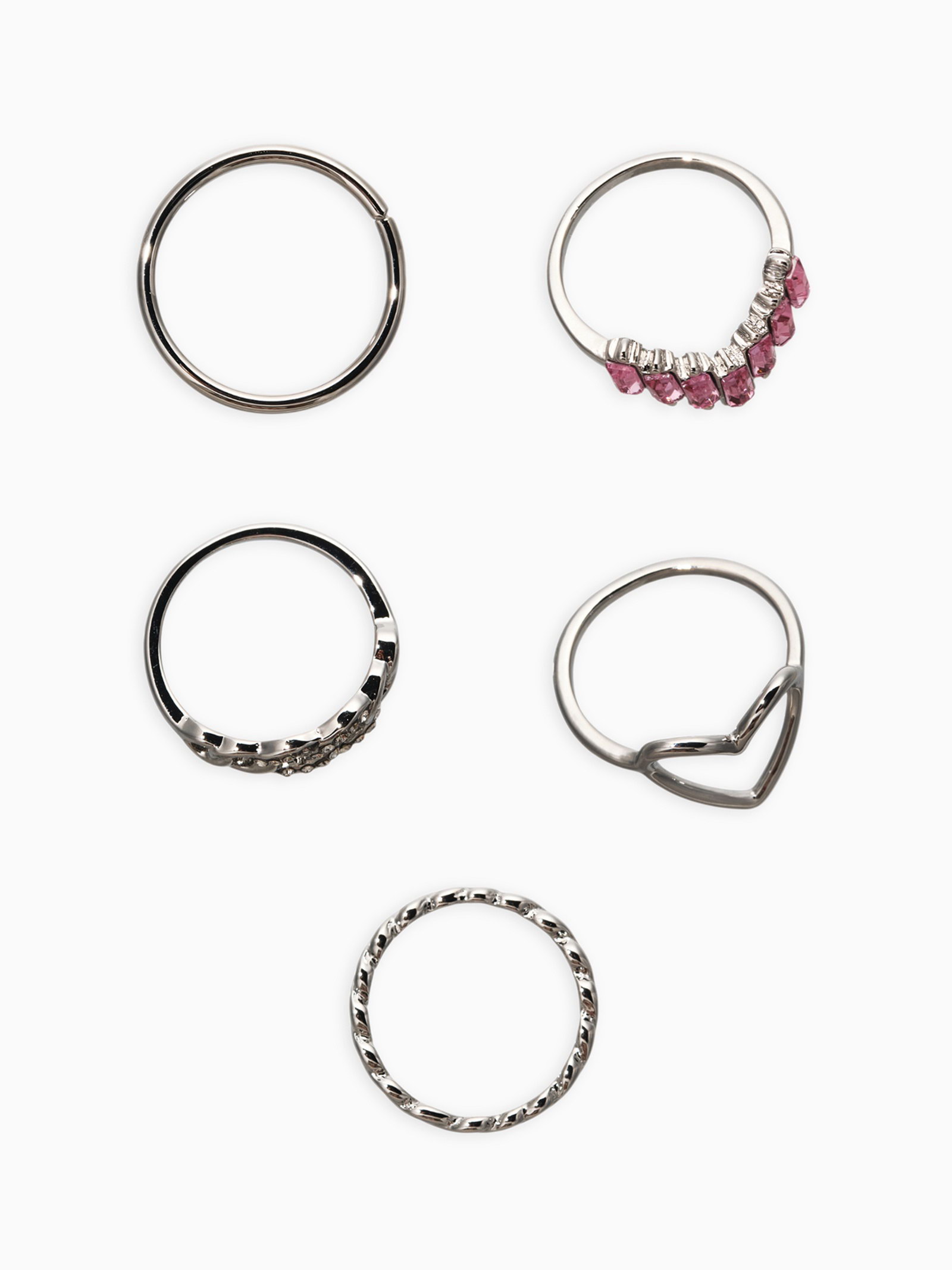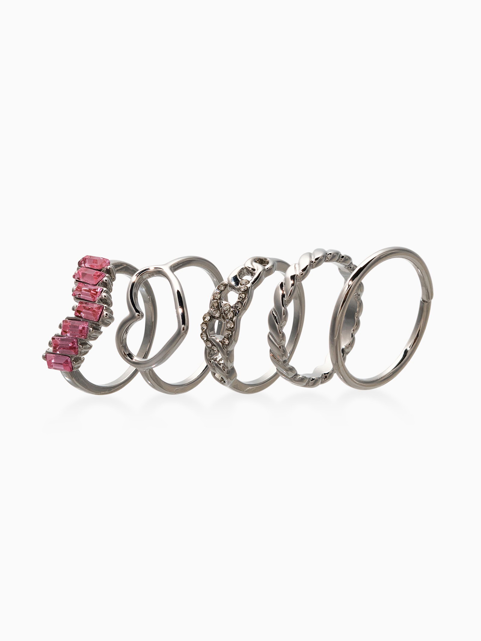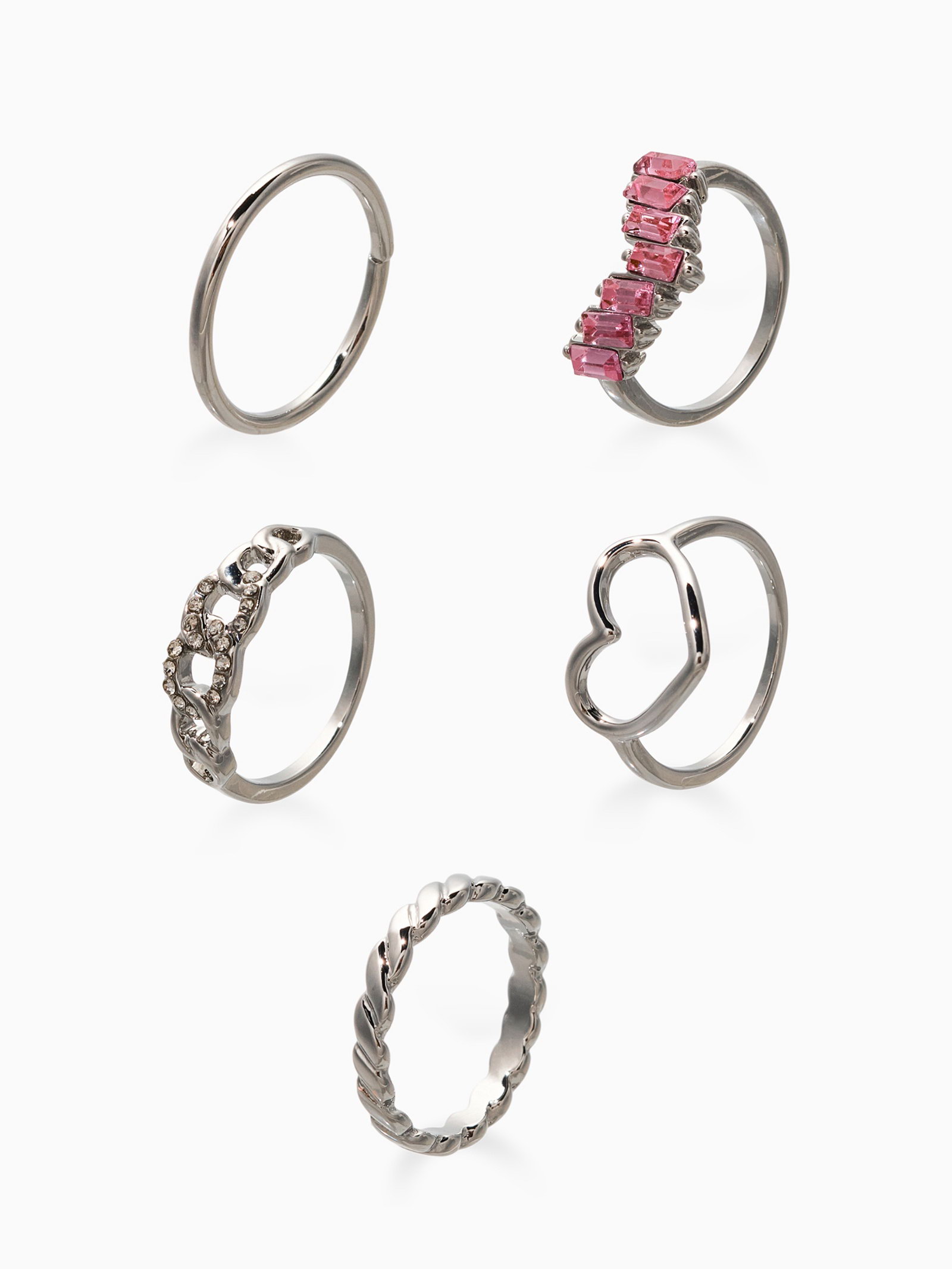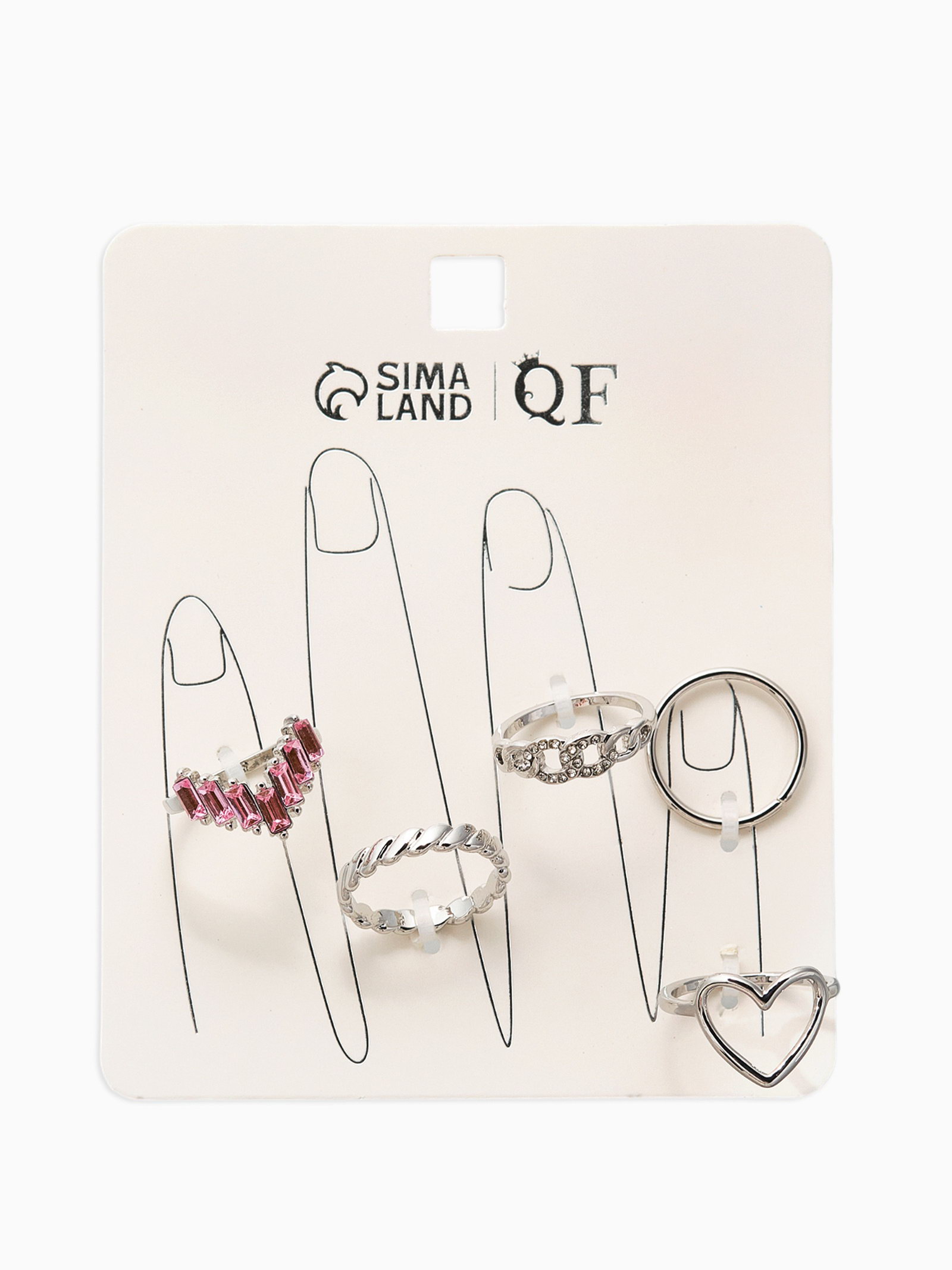 Набор колец "Новый стиль. Сердца и Бесконечность", 5 шт. размер МИКС, бело-розовый в серебре, 1.5x2x2 см., QF, Китай