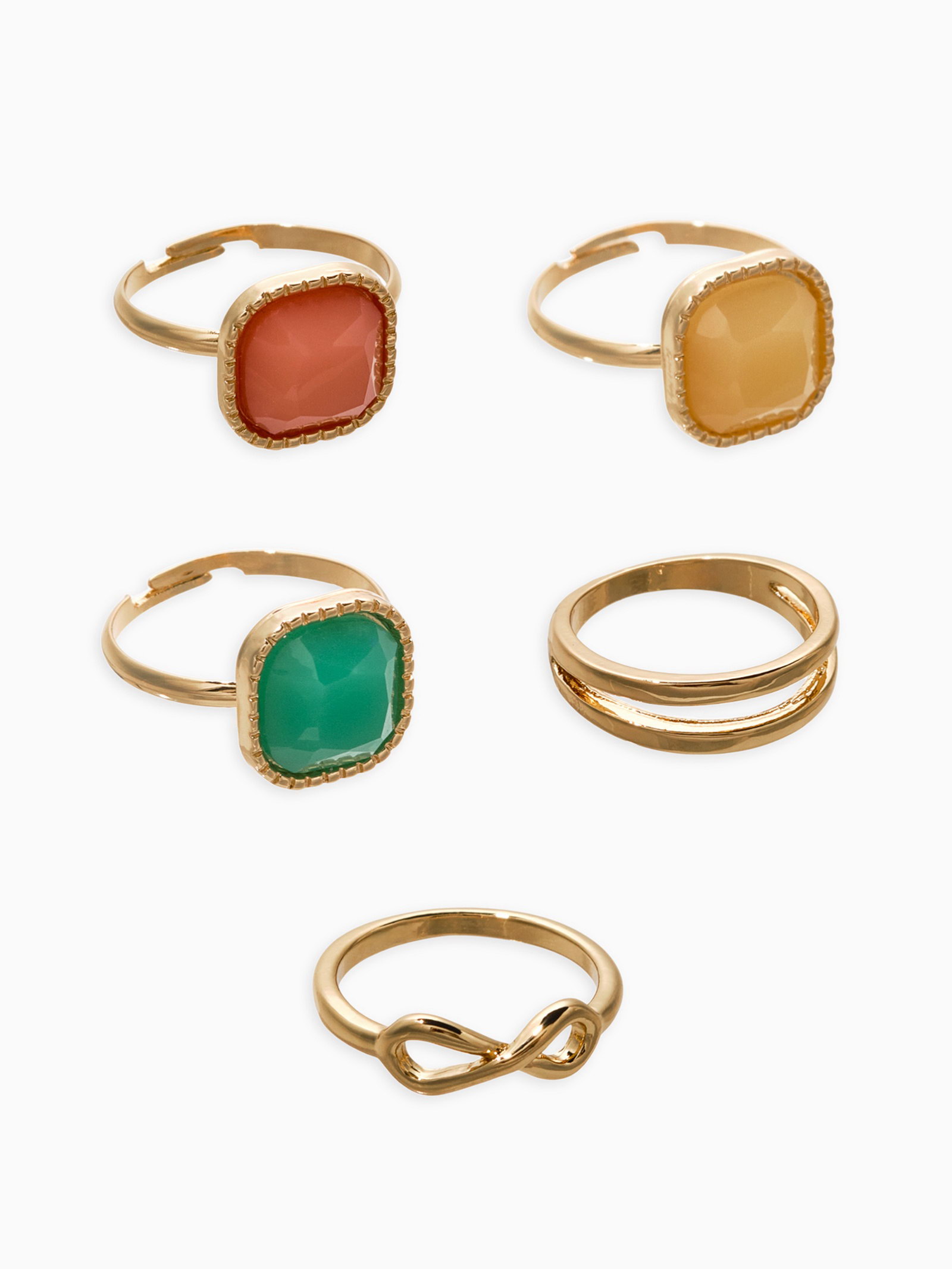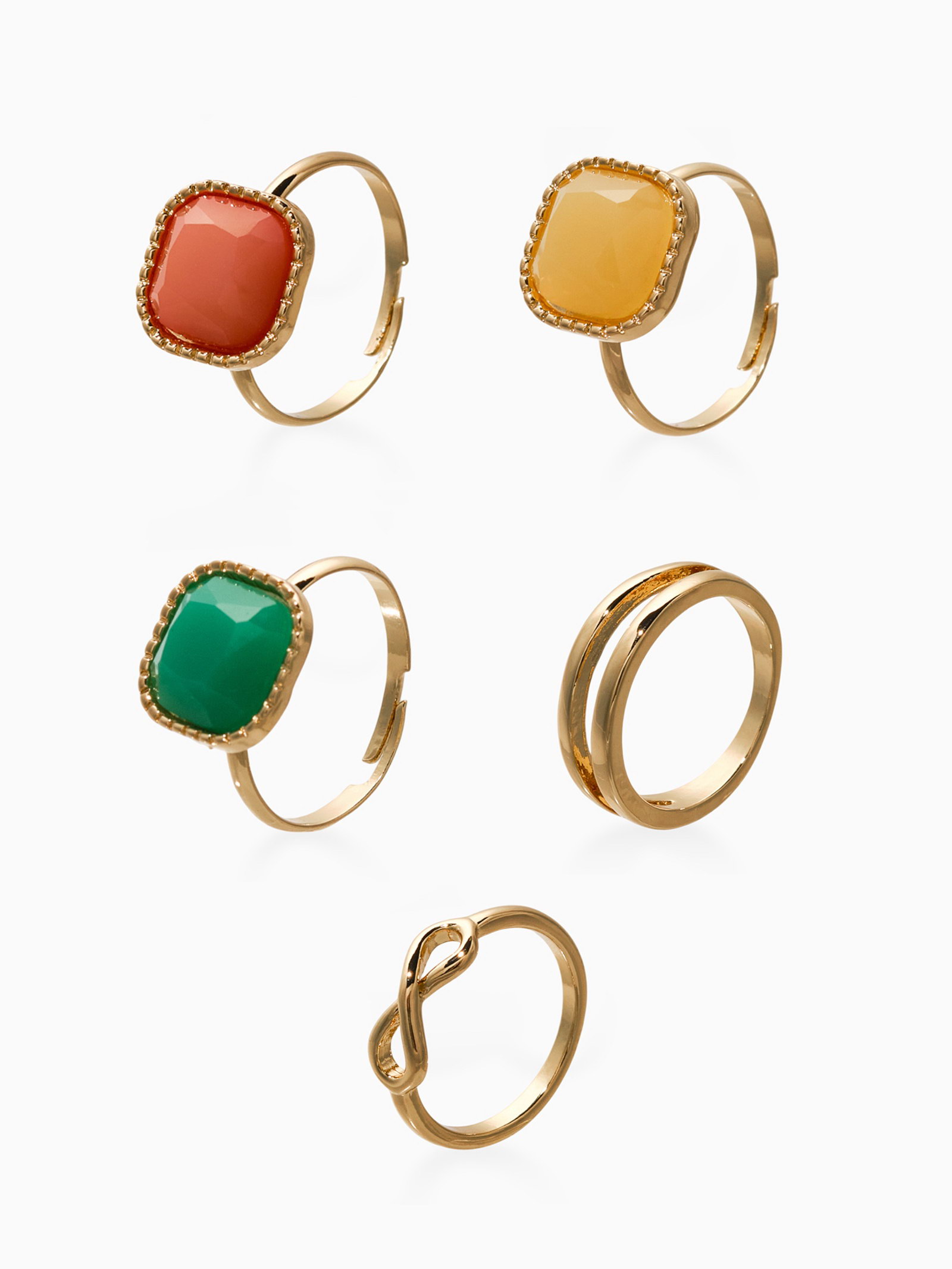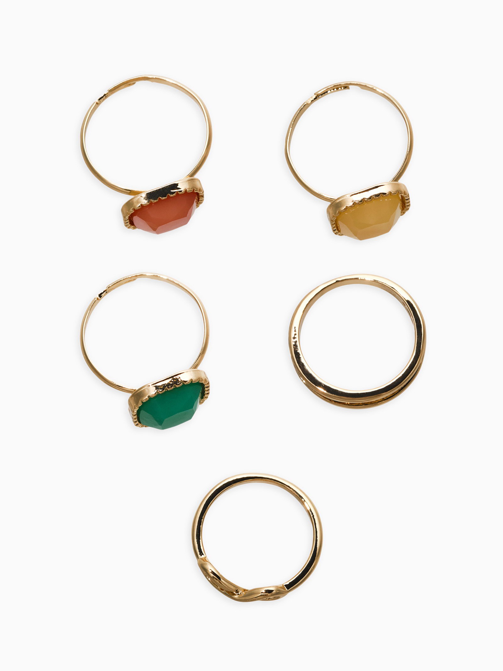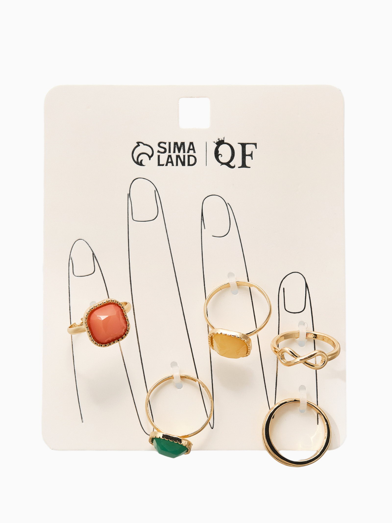 Набор колец "Новый стиль. Камни", 5 шт. размер МИКС, цветной в золоте, 1.5x2.5x1.5 см., QF, Китай