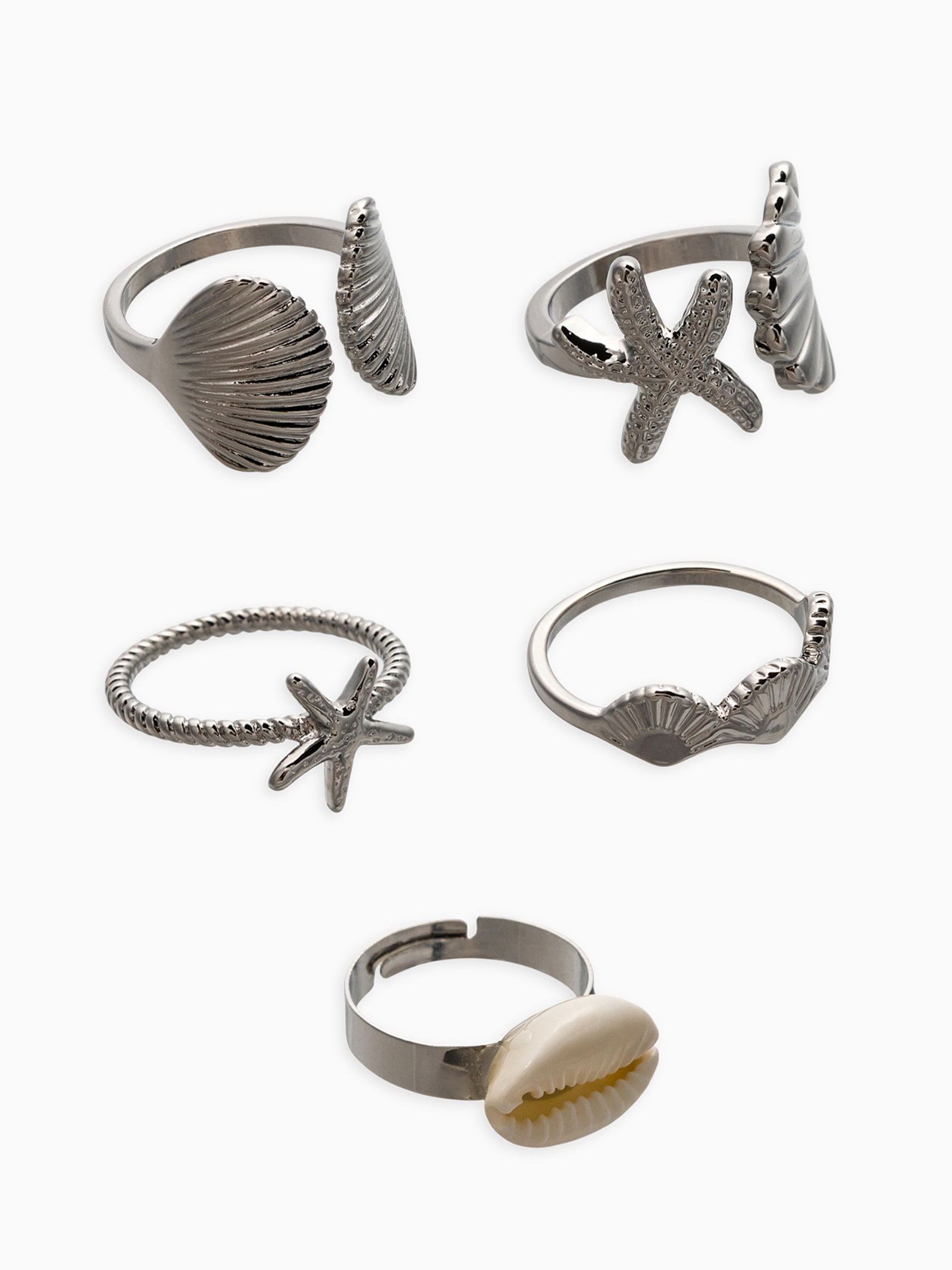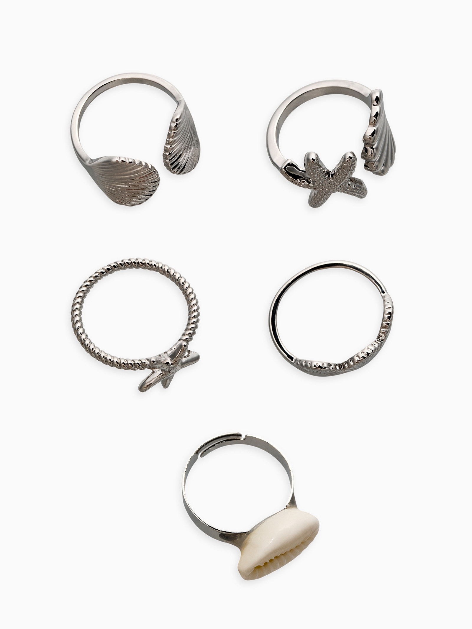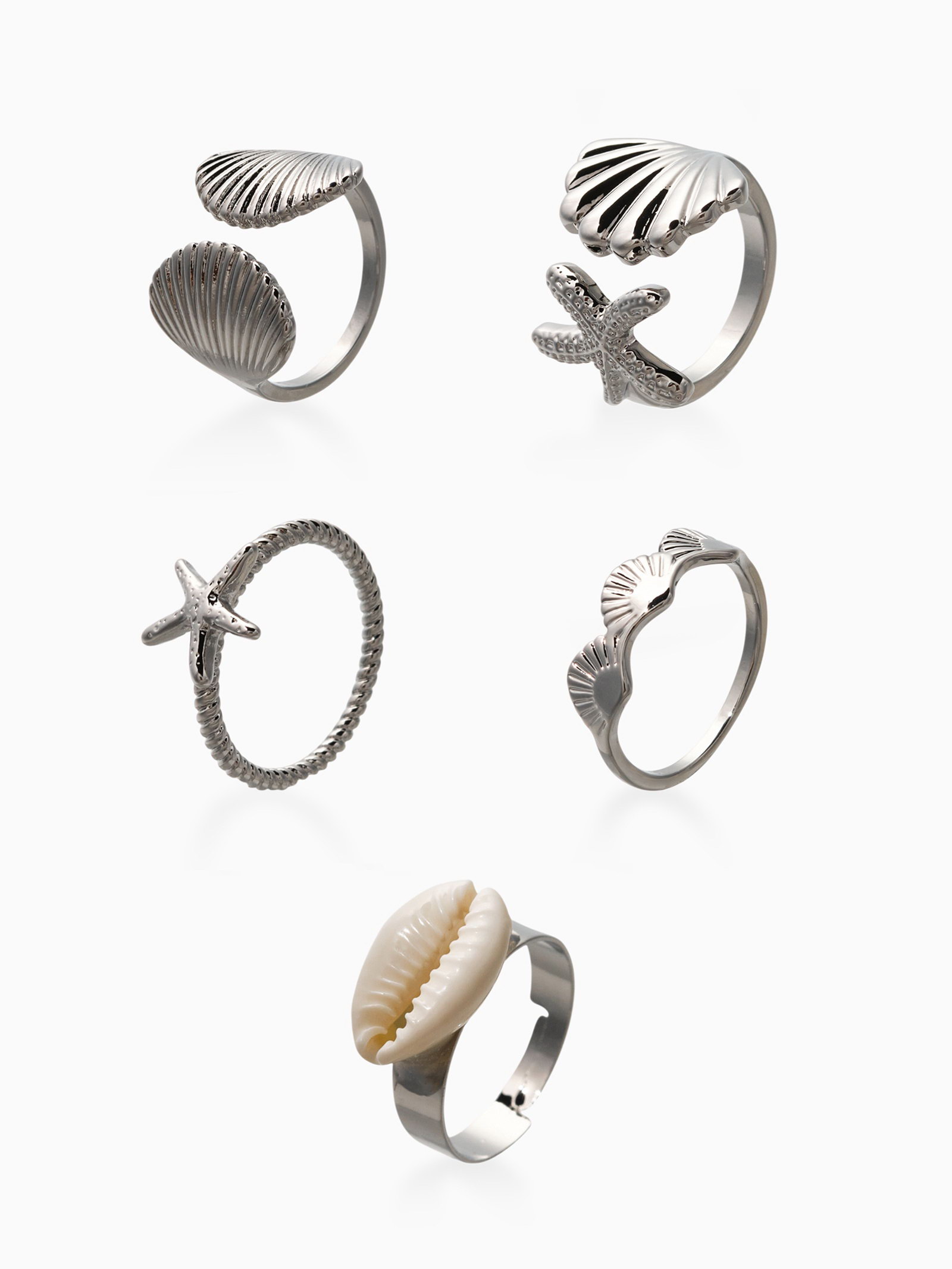 Набор колец 5 шт "Новый стиль" море, размер МИКС, цвет белый в серебре, 2x1.5x2 см., QF, Китай