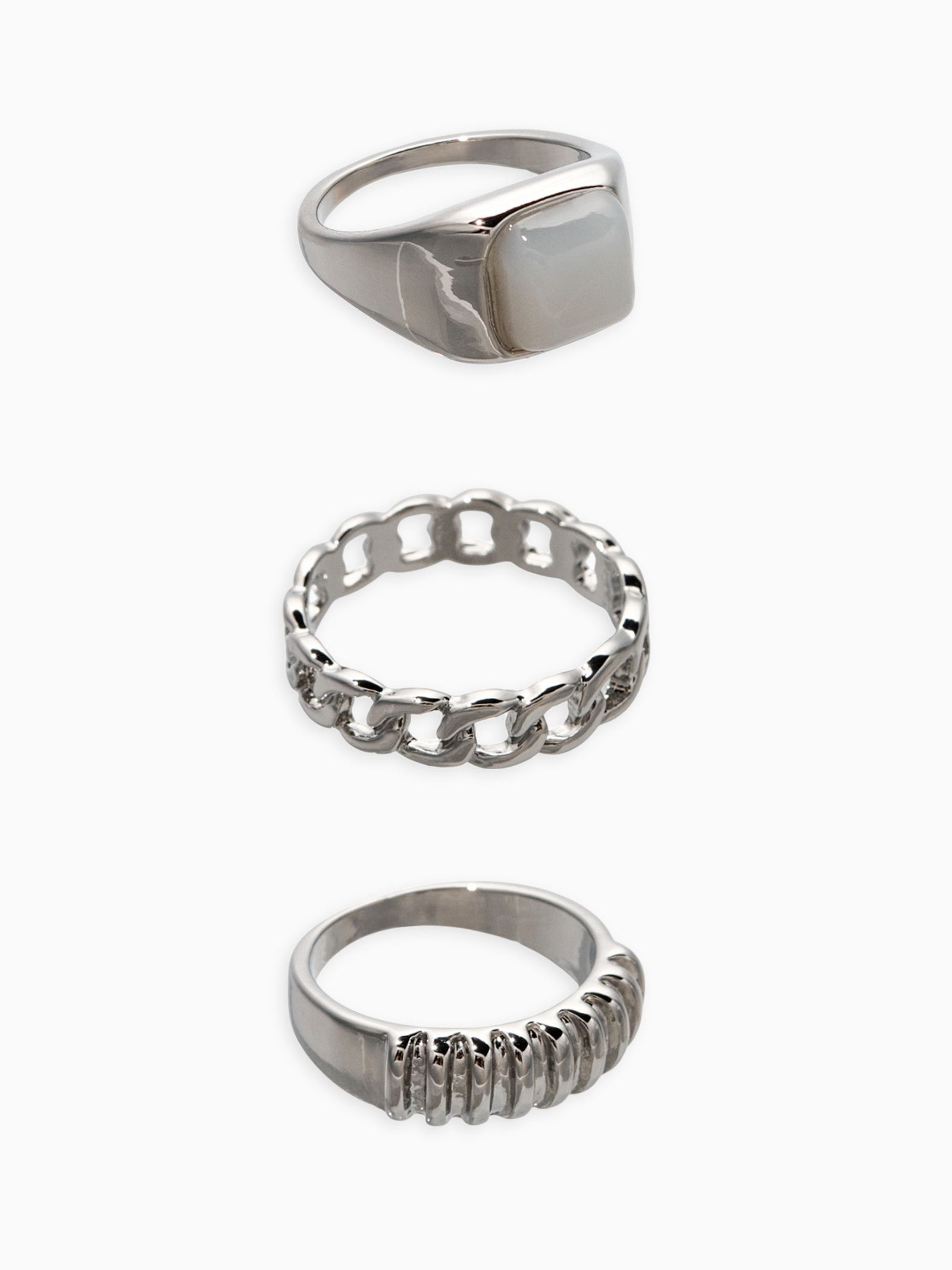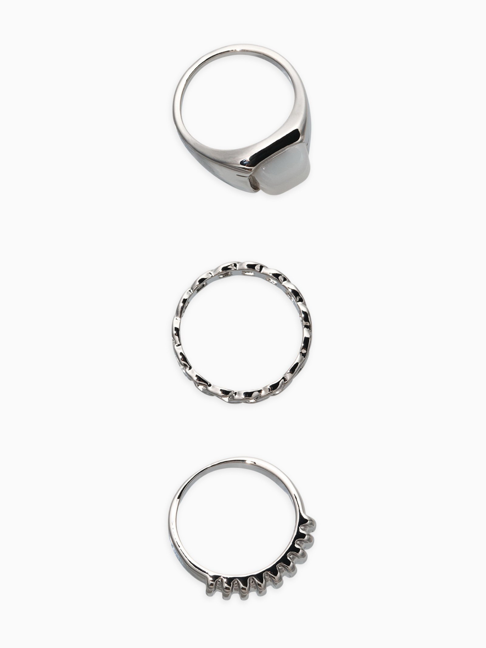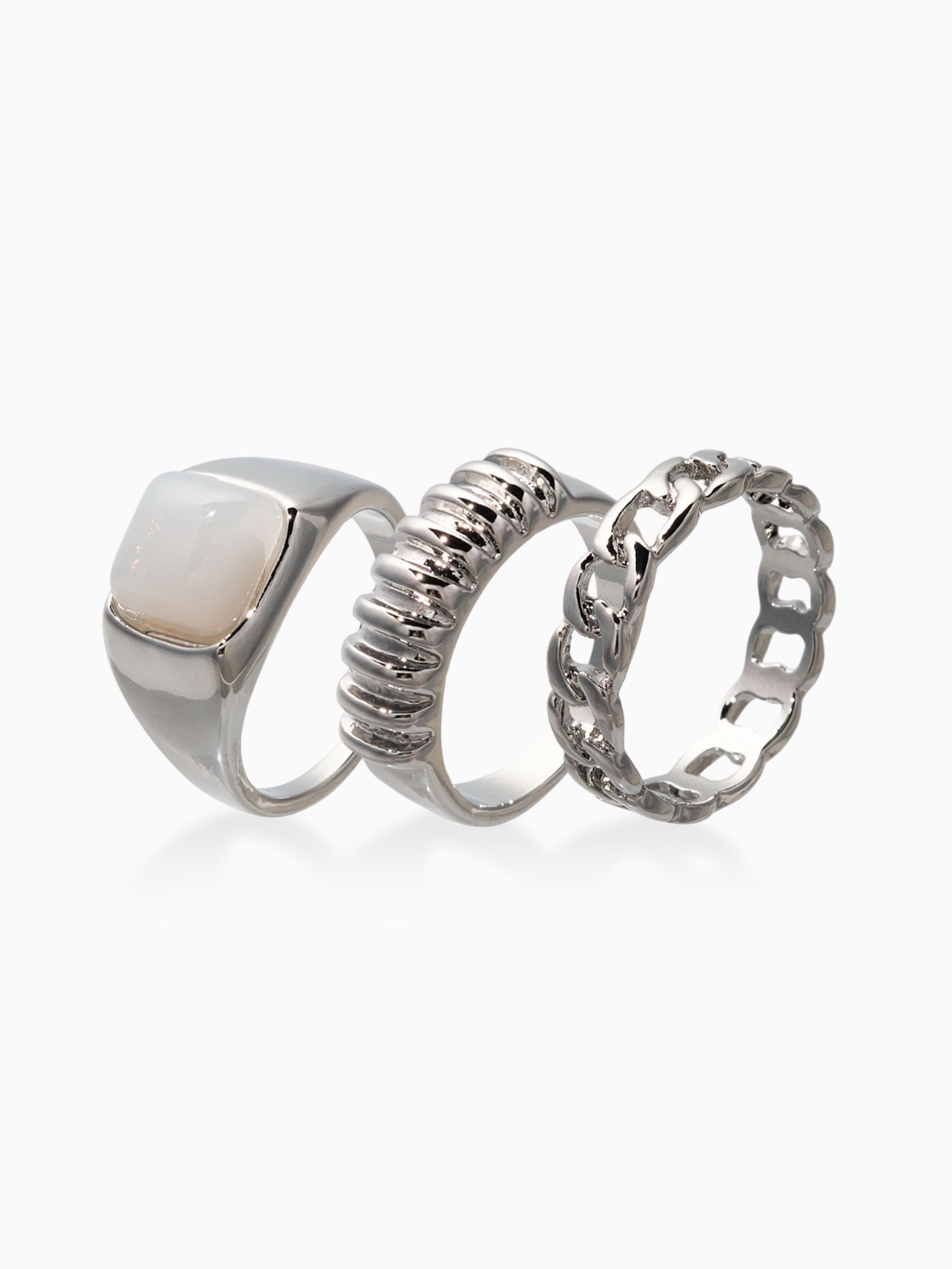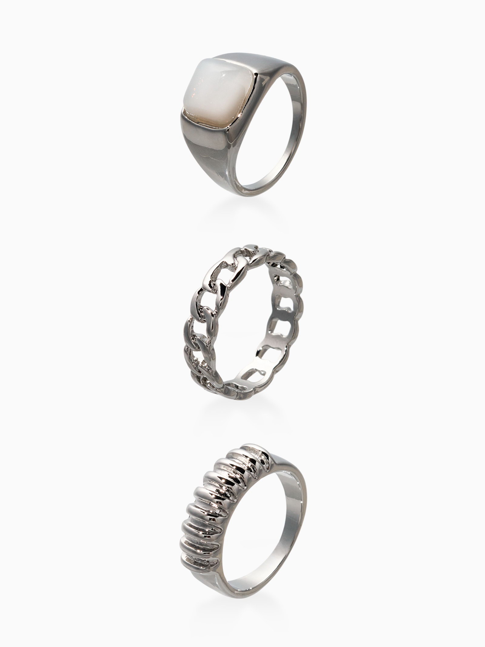 Набор колец "Новый стиль. Цепь", 3 шт. размер МИКС, белый в серебре, 1.2x2x2.5 см., QF, Китай