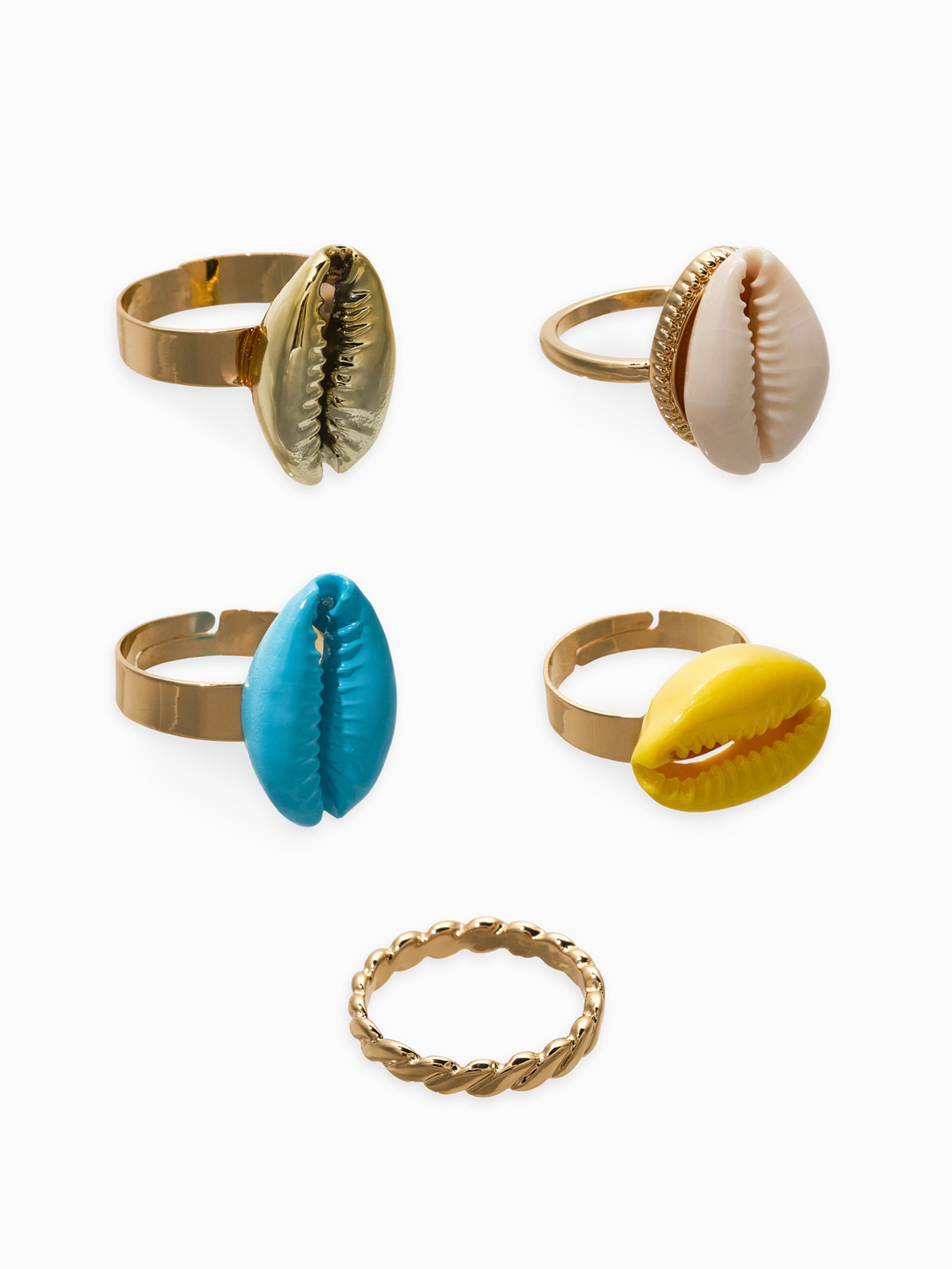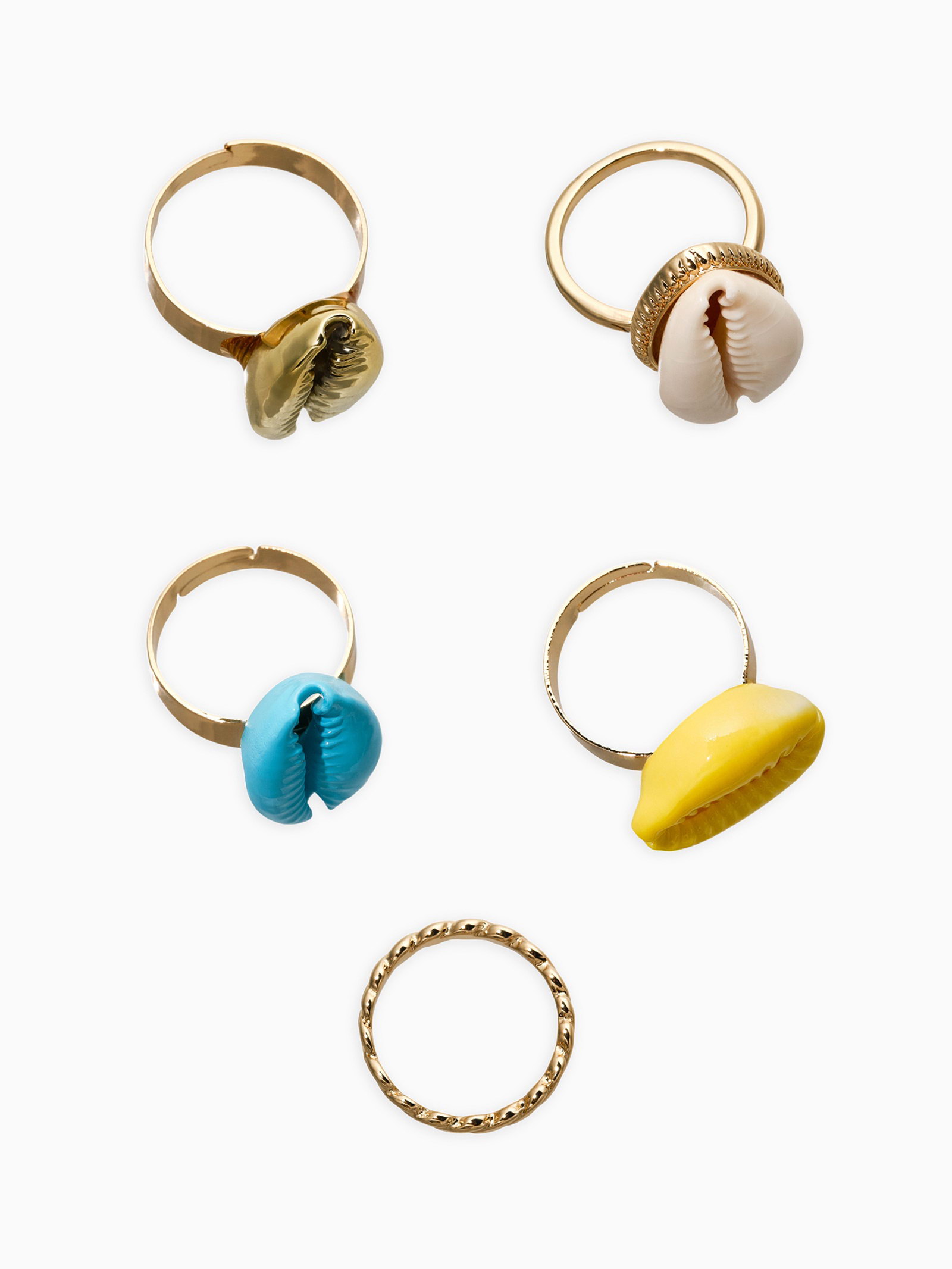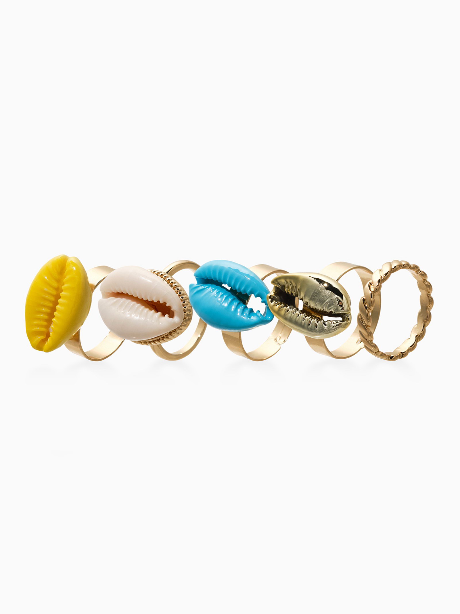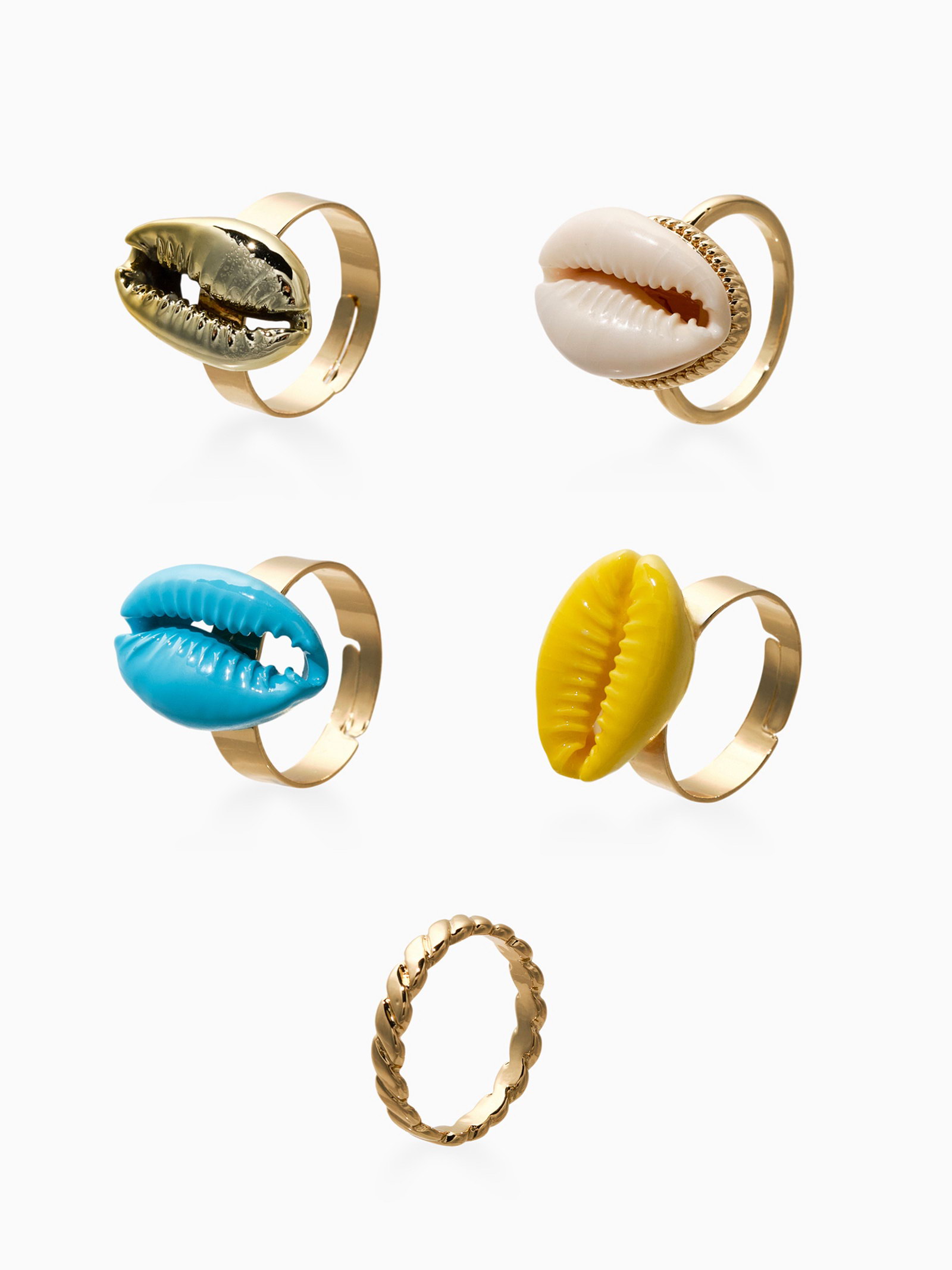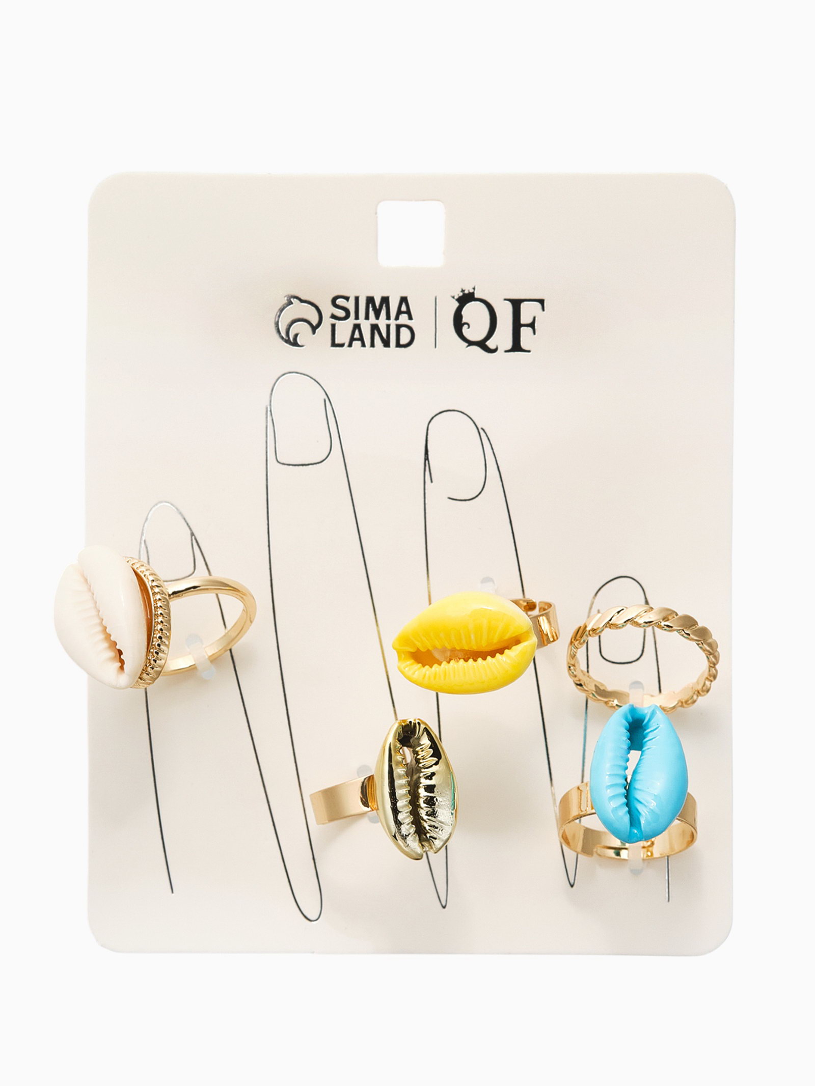 Набор колец 5 шт "Новый стиль" ракушки, размер МИКС, цветные в золоте, 2x3x2 см., QF, Китай