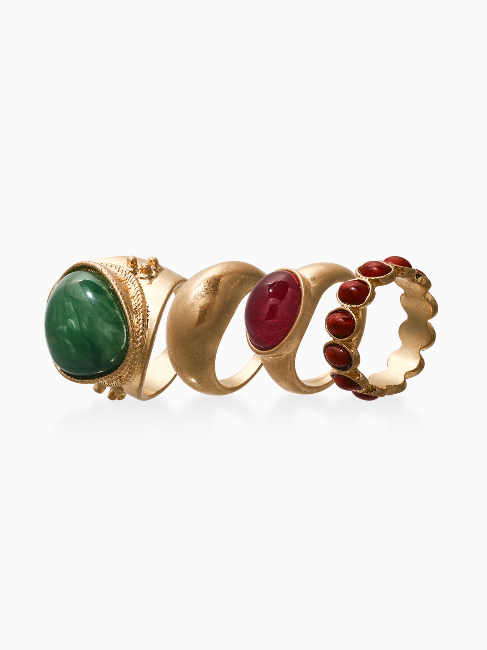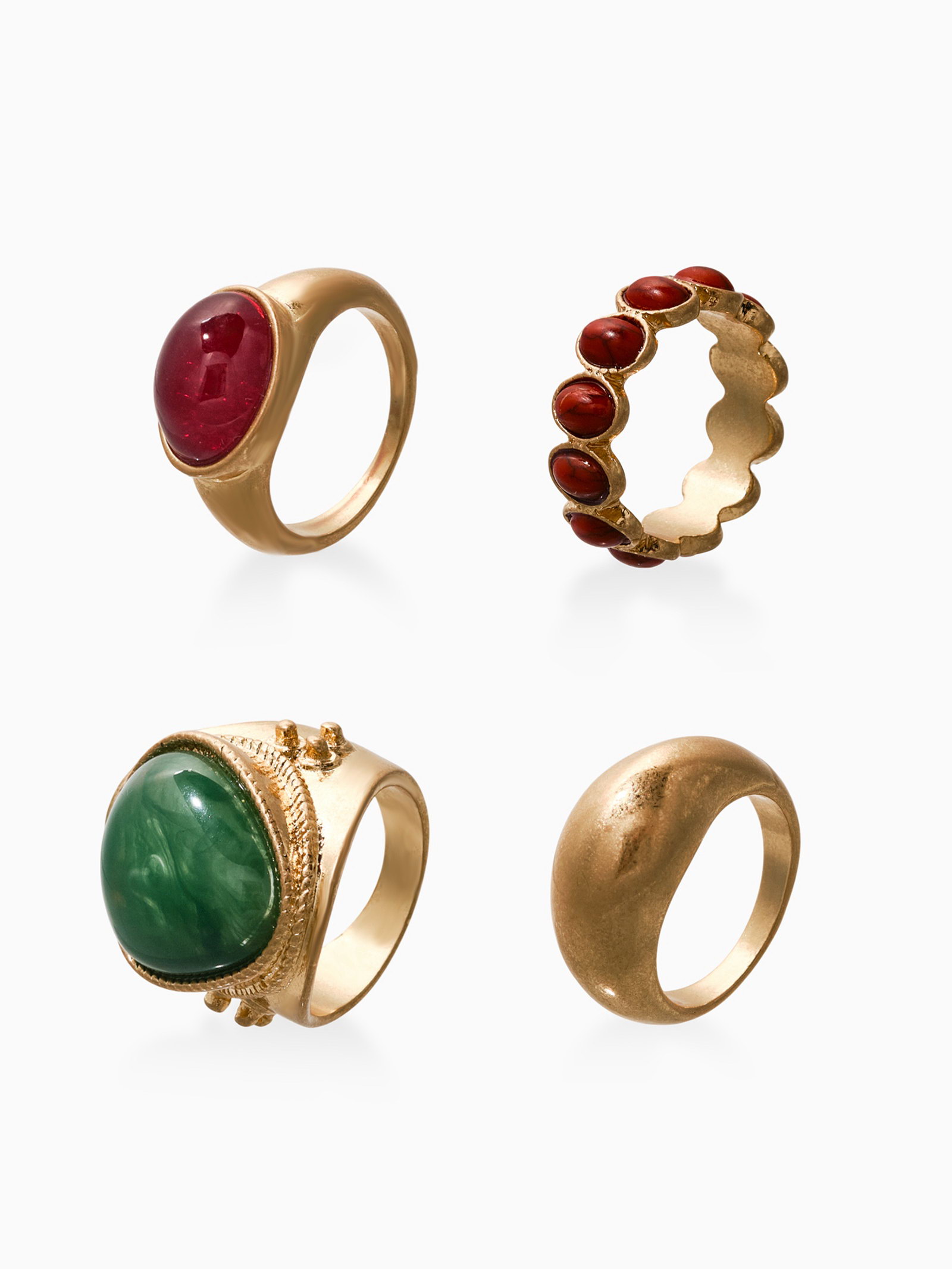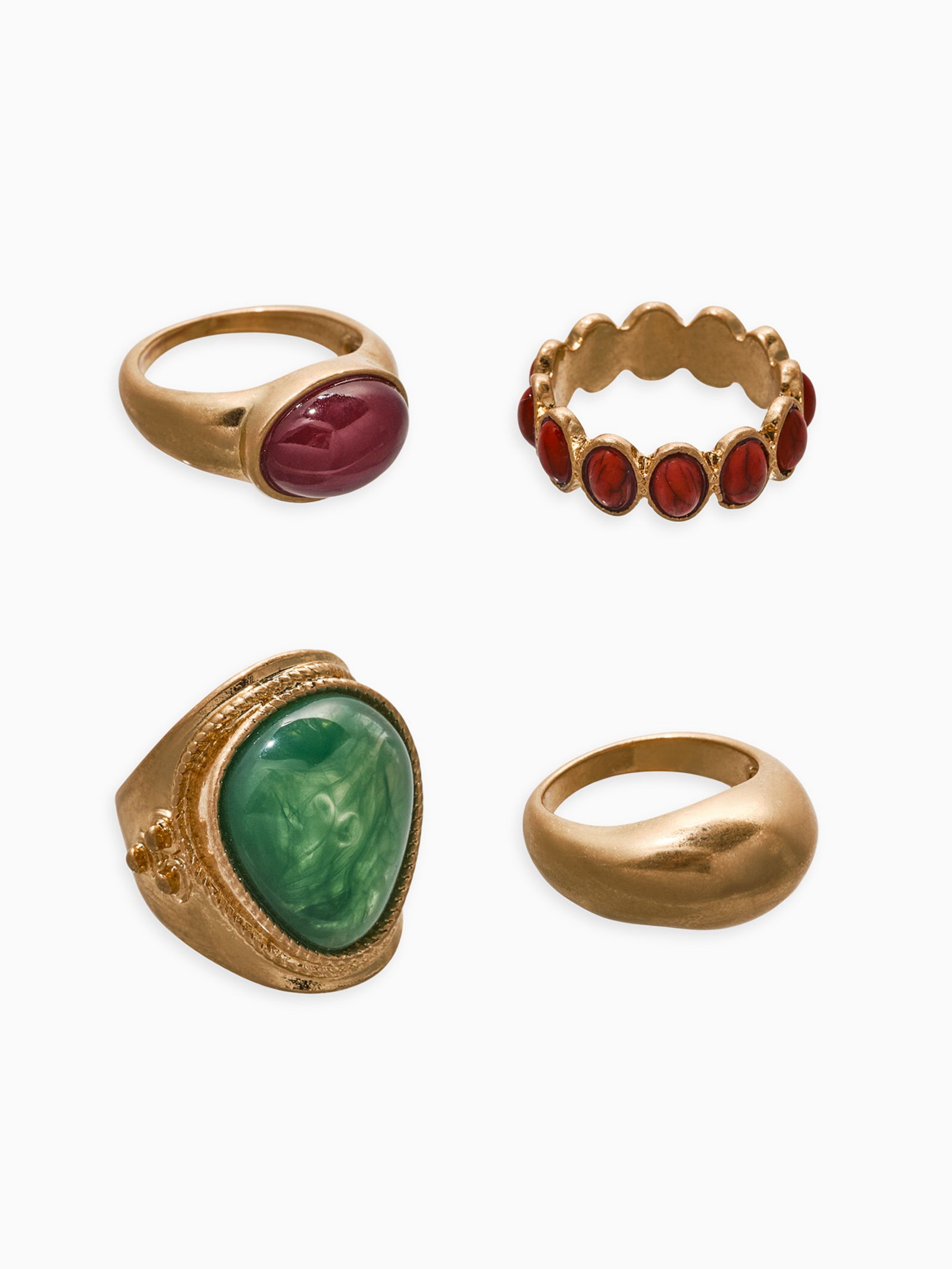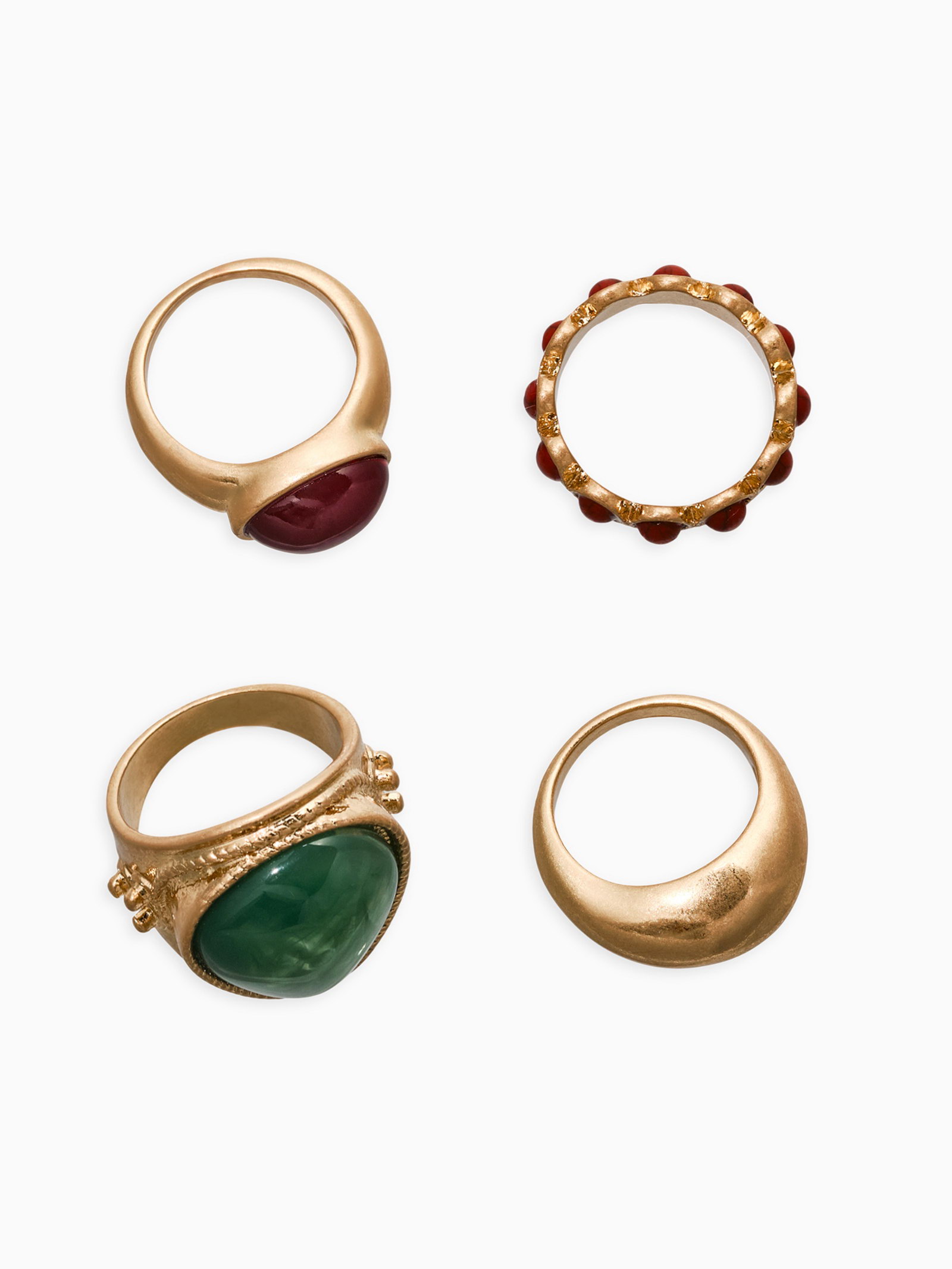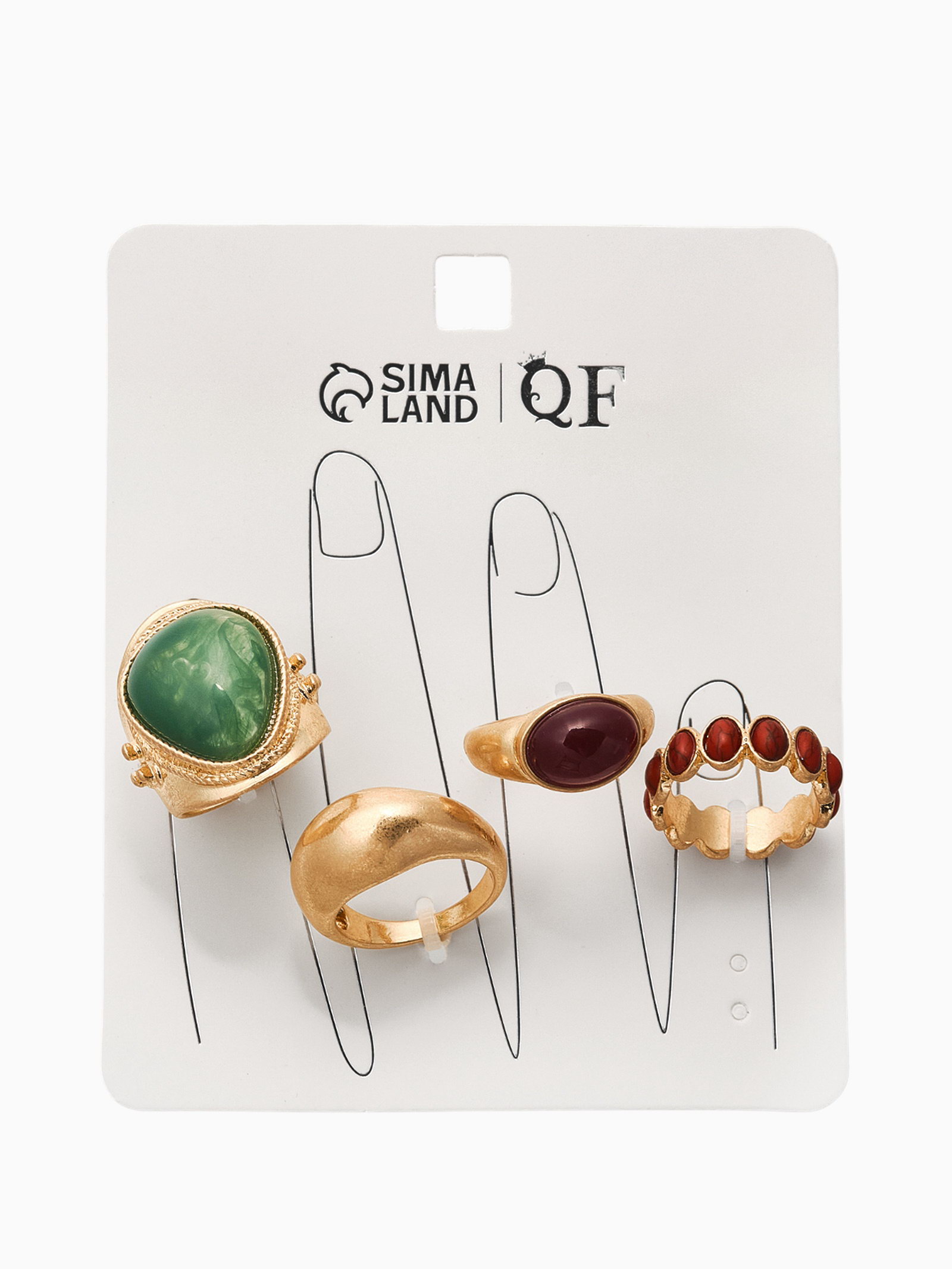Набор колец "Новый стиль. Винтаж", 4 шт. размер МИКС, зелено-коричневый в золоте, 2.5x3x3.3 см., QF, Китай