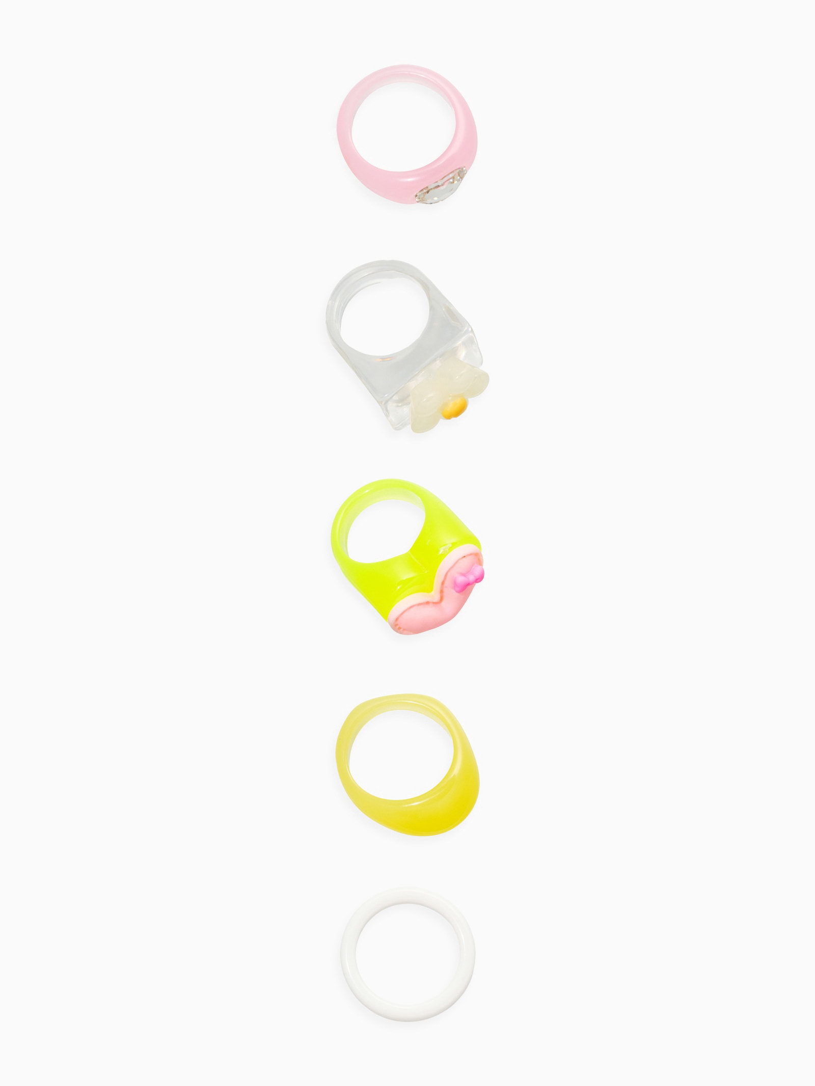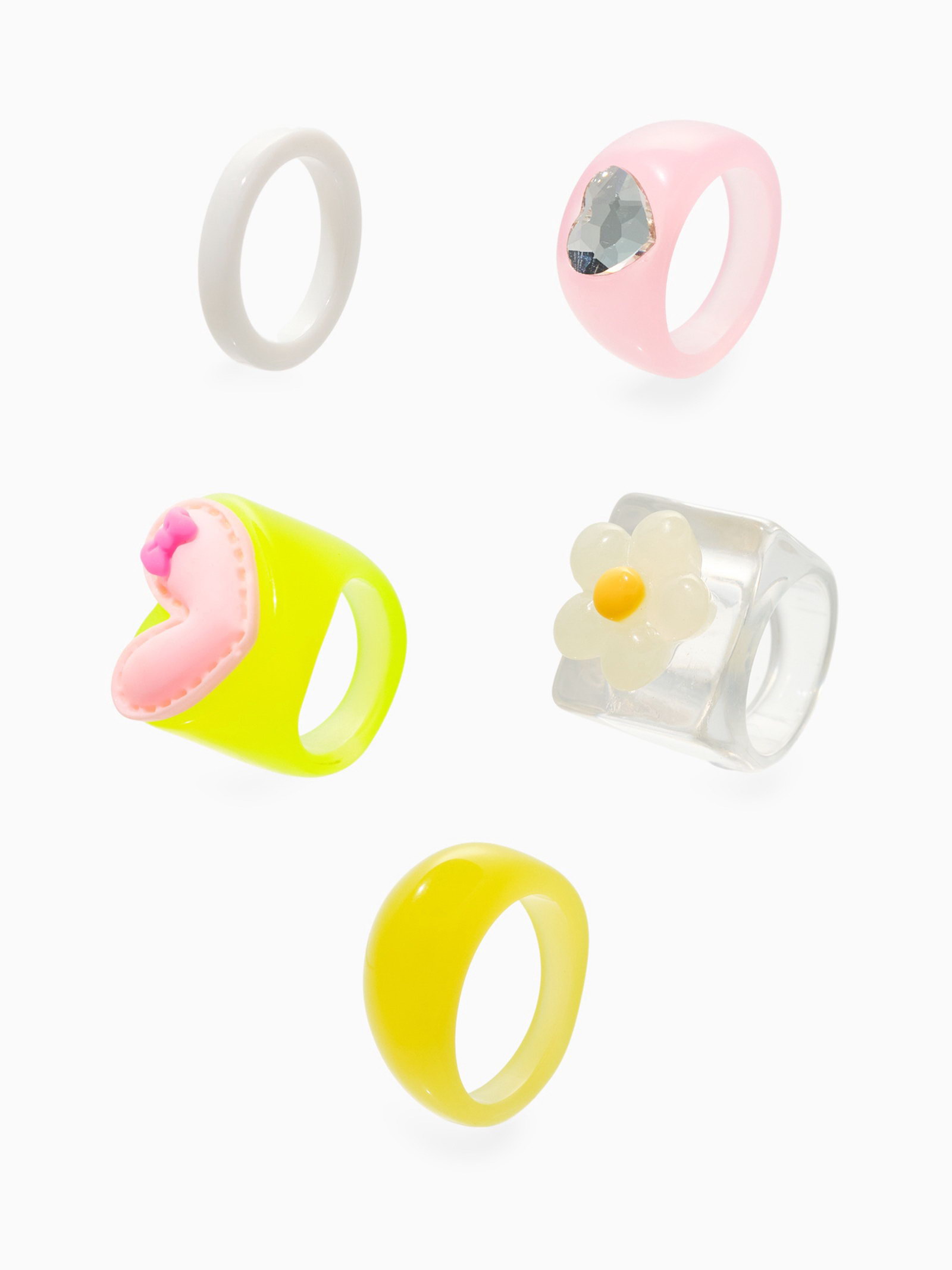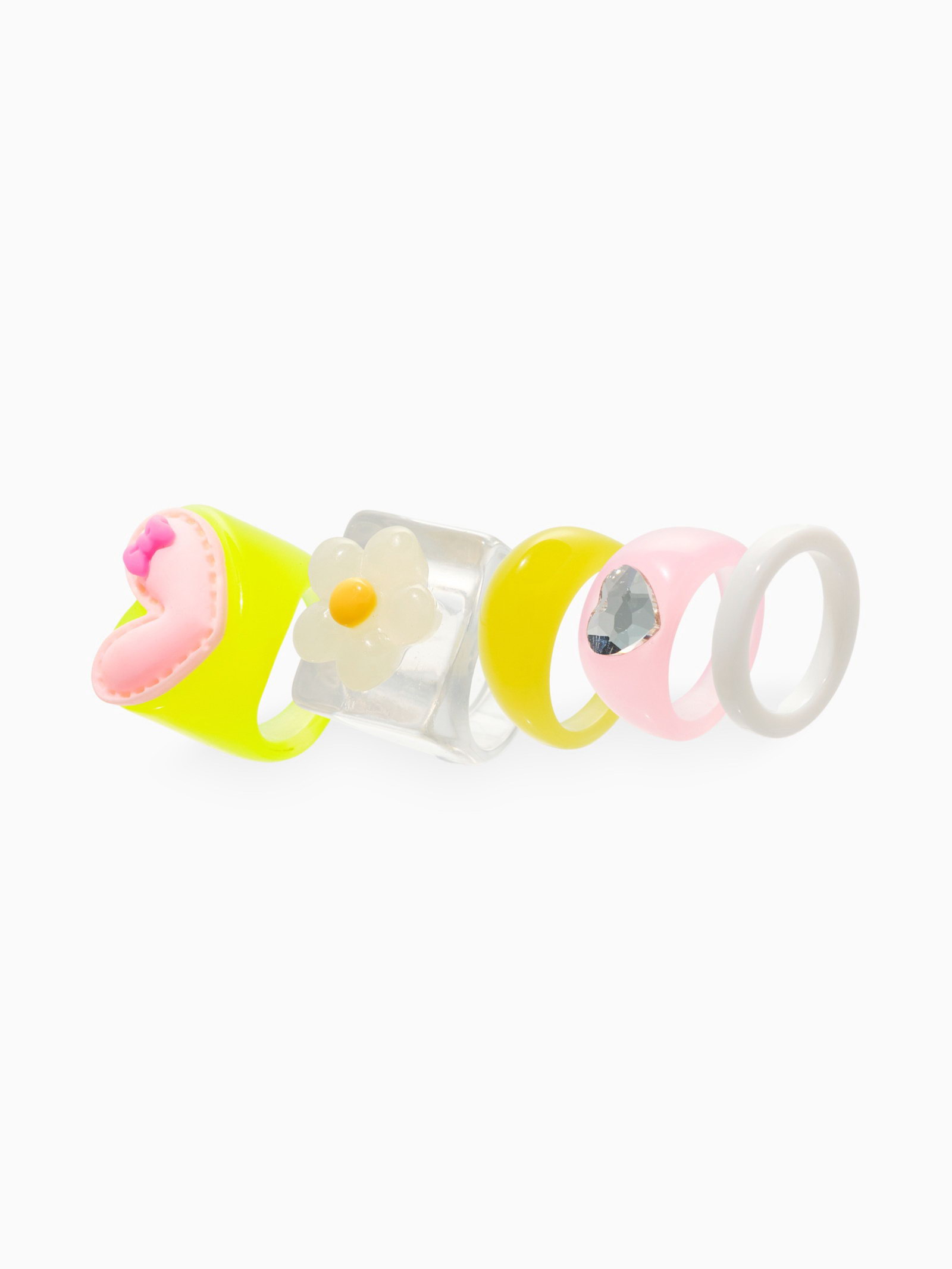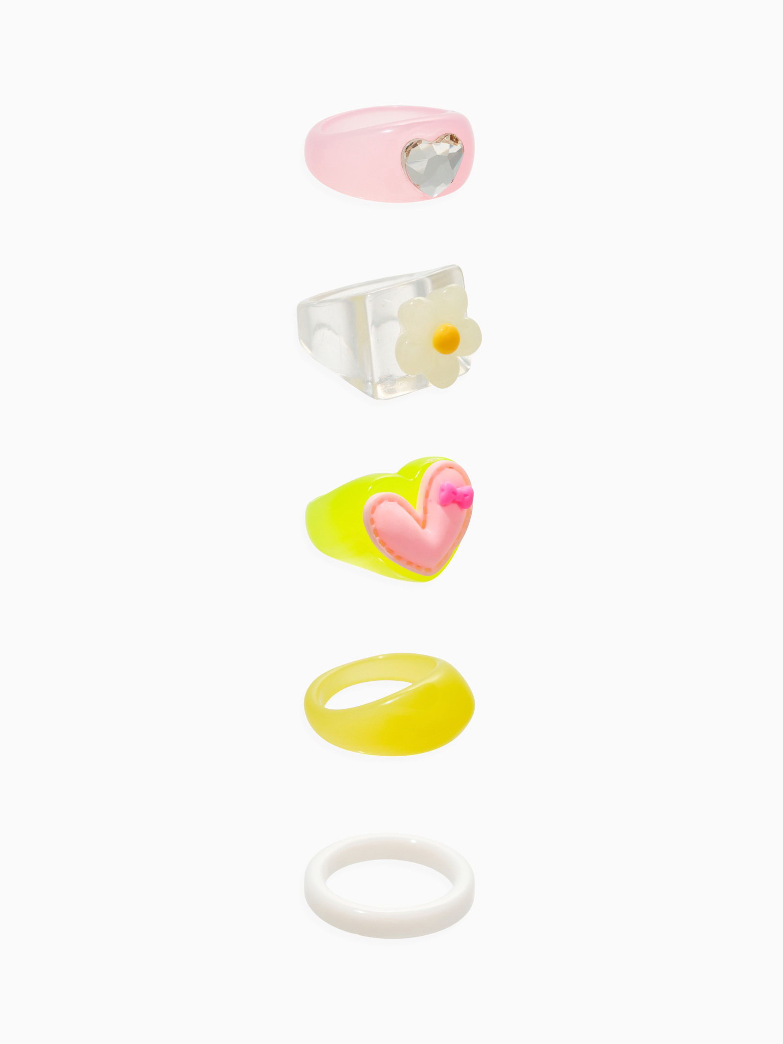 Набор колец 5 шт. "Стиль лёгкий. Цветы и сердечки", размер МИКС, 2.5x4x2 см., QF, Китай