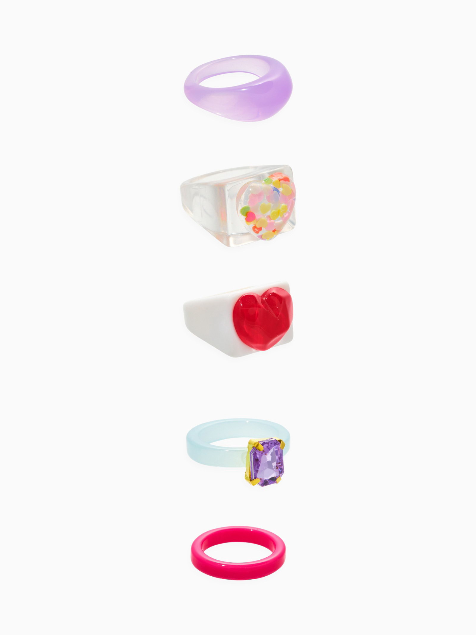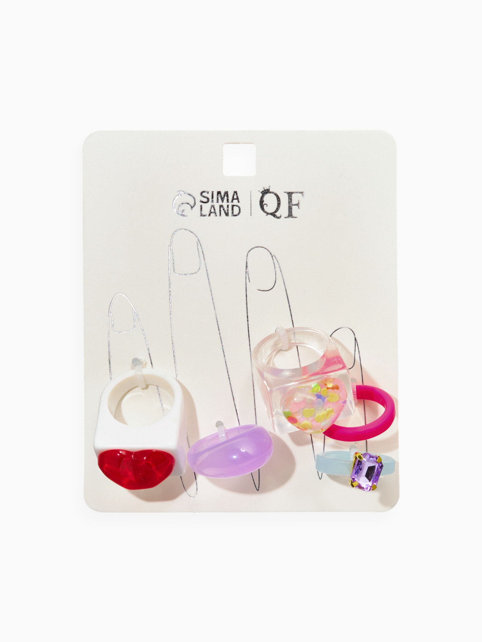 Набор колец 5 шт. "Стиль лёгкий. Сердечки", размер МИКС, 2.3x4x2 см., QF, Китай