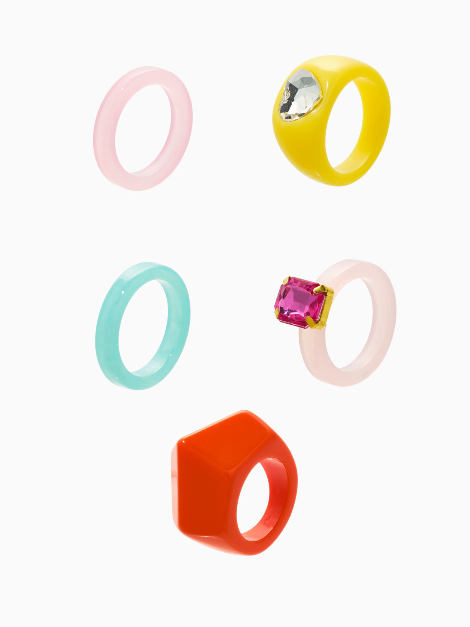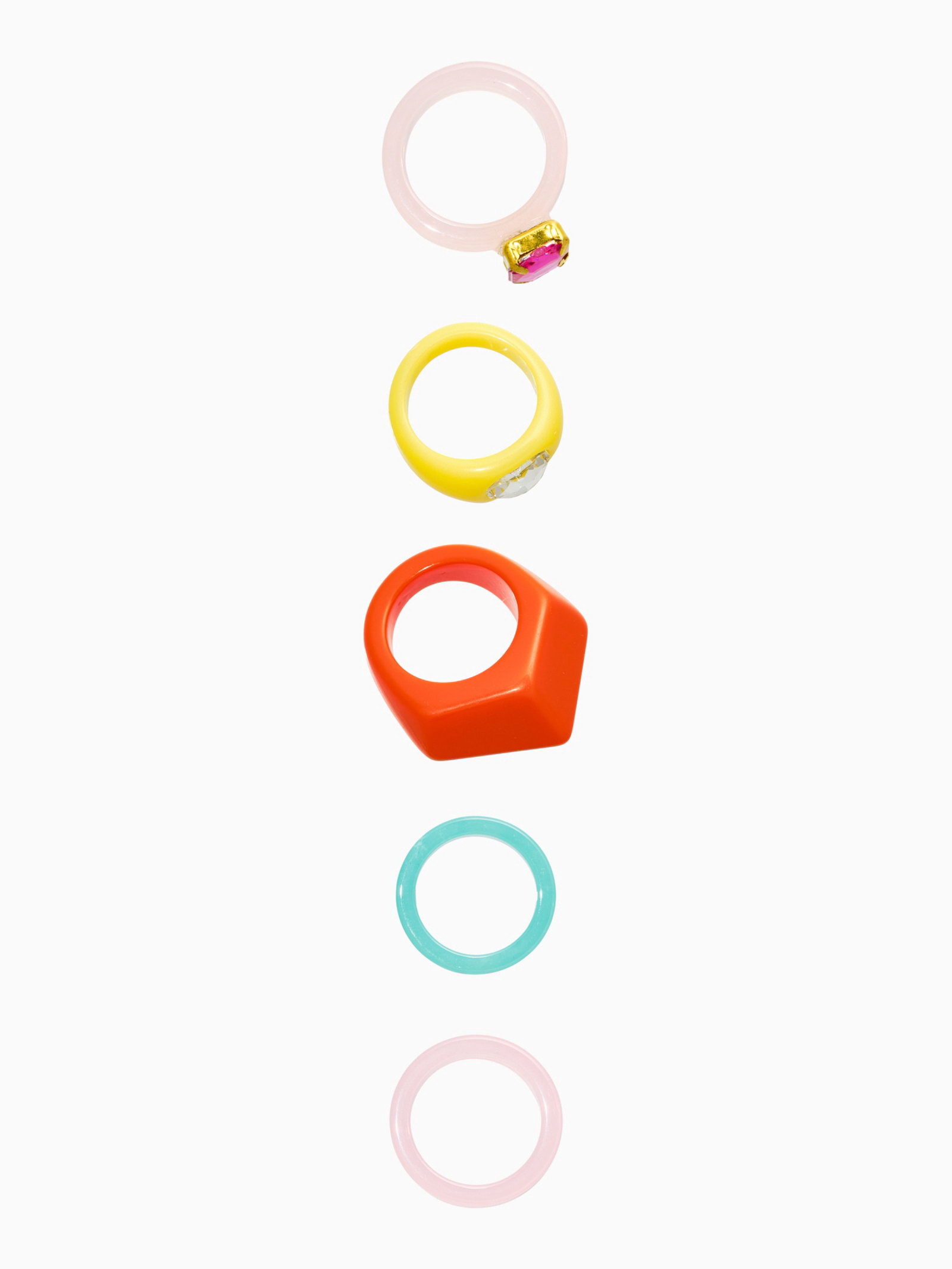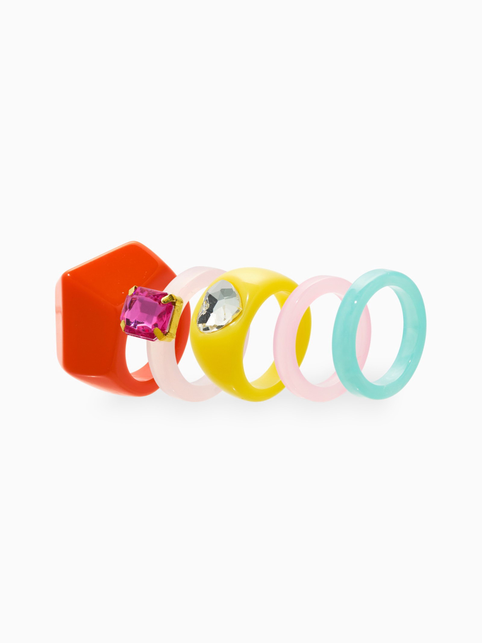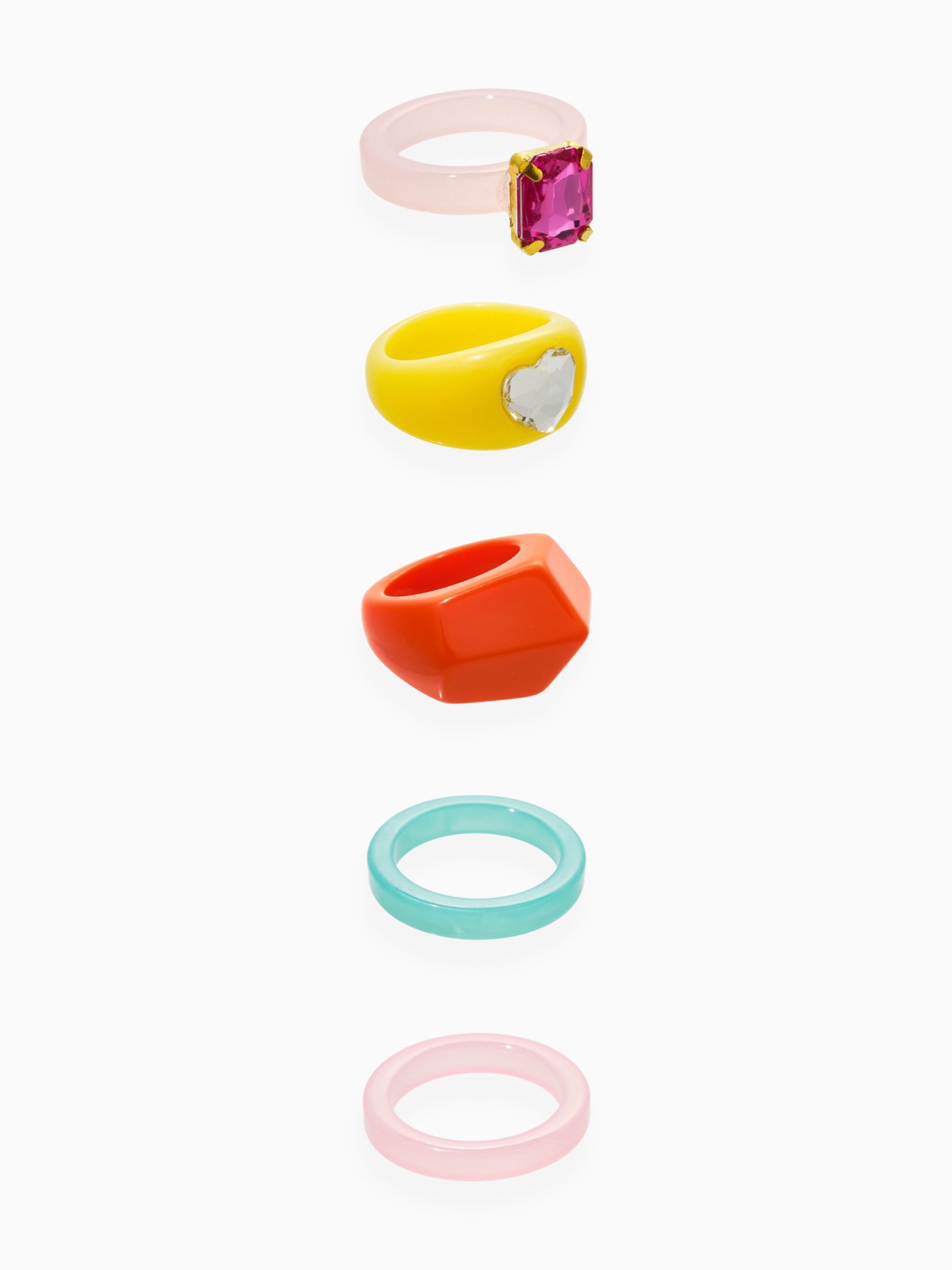 Набор колец 5 шт. "Стиль лёгкий. Кристалл и сердце", размер МИКС, 2.9x3.3x2 см., QF, Китай