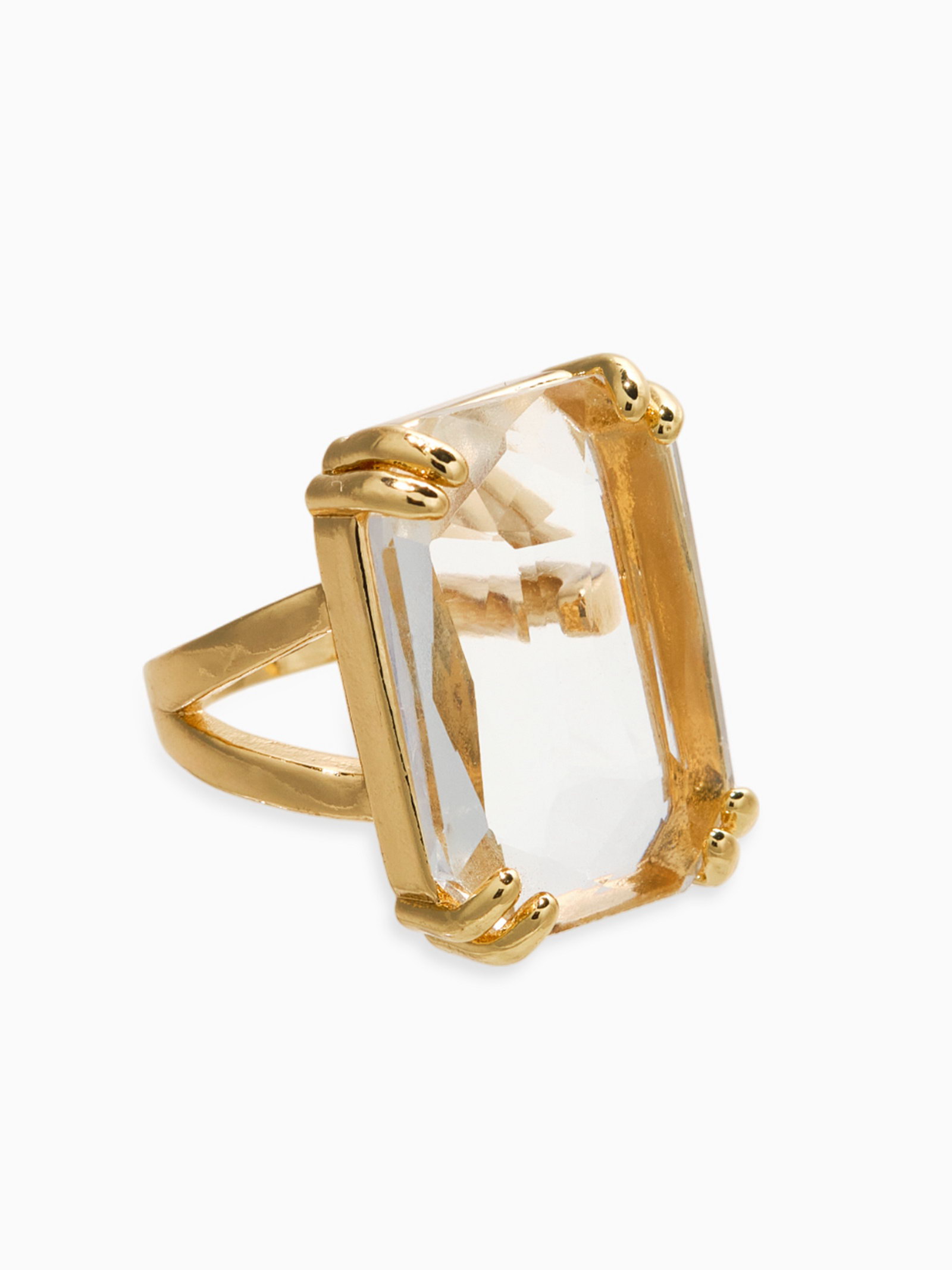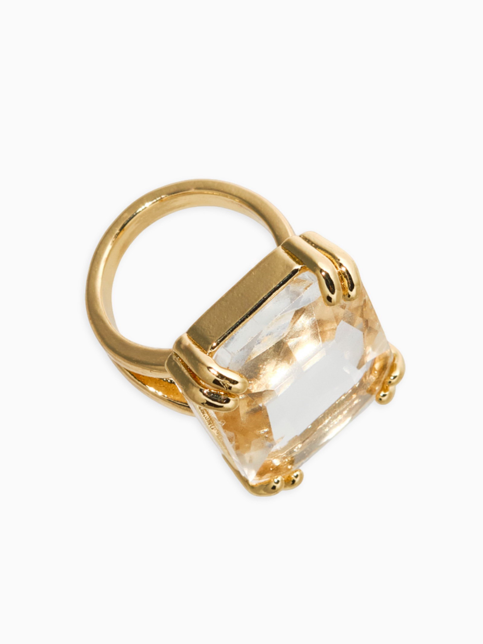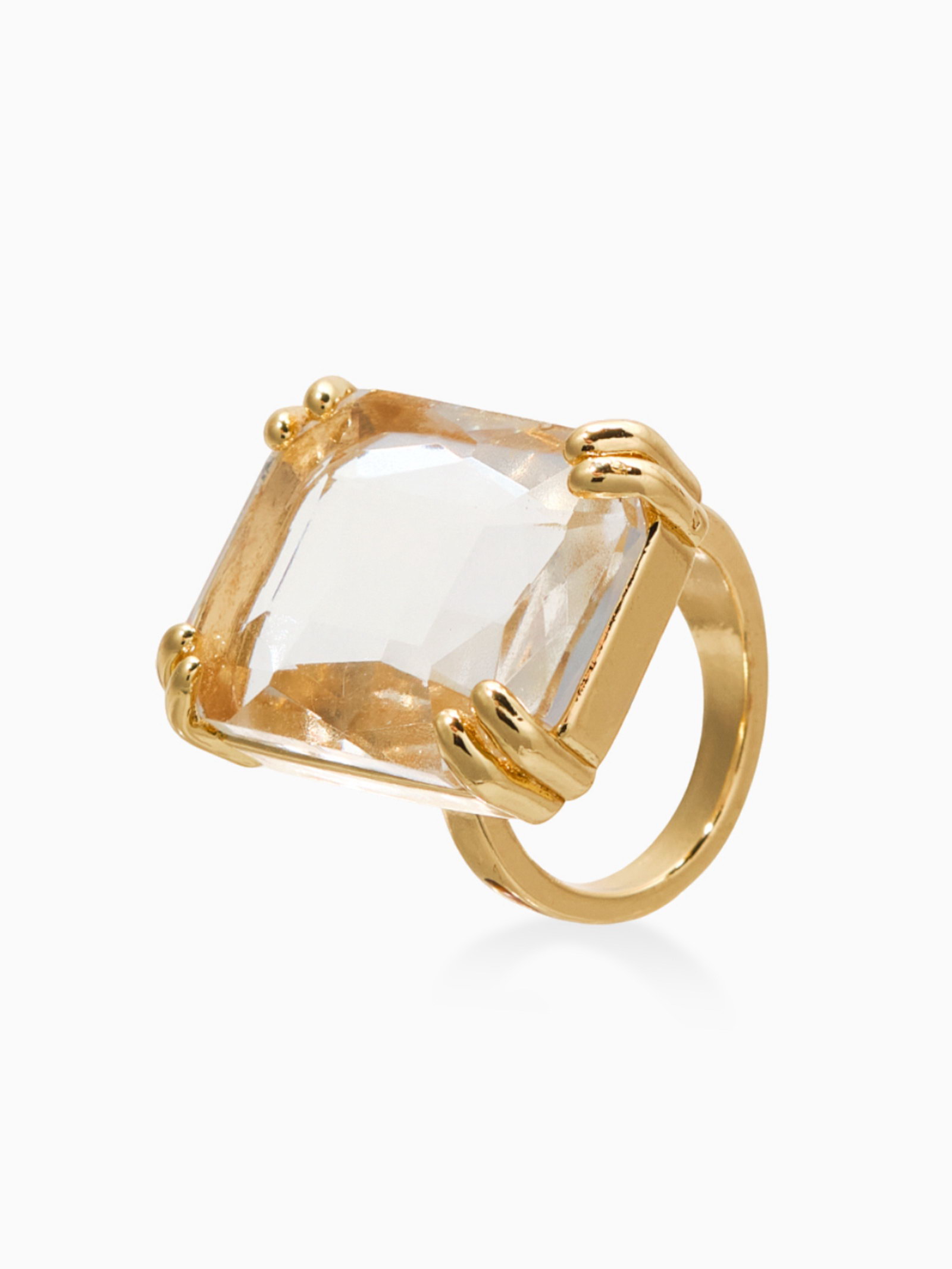Кольцо с камнем "Империя. Прямоугольник с гранями", белое в золоте, безразмерное, 1.8x2.5x3 см., QF, Китай