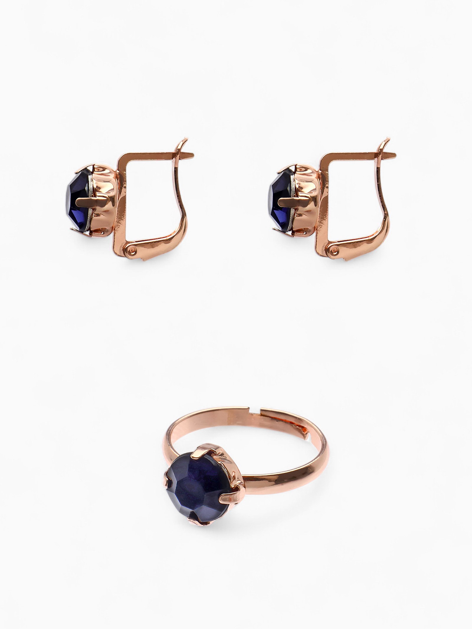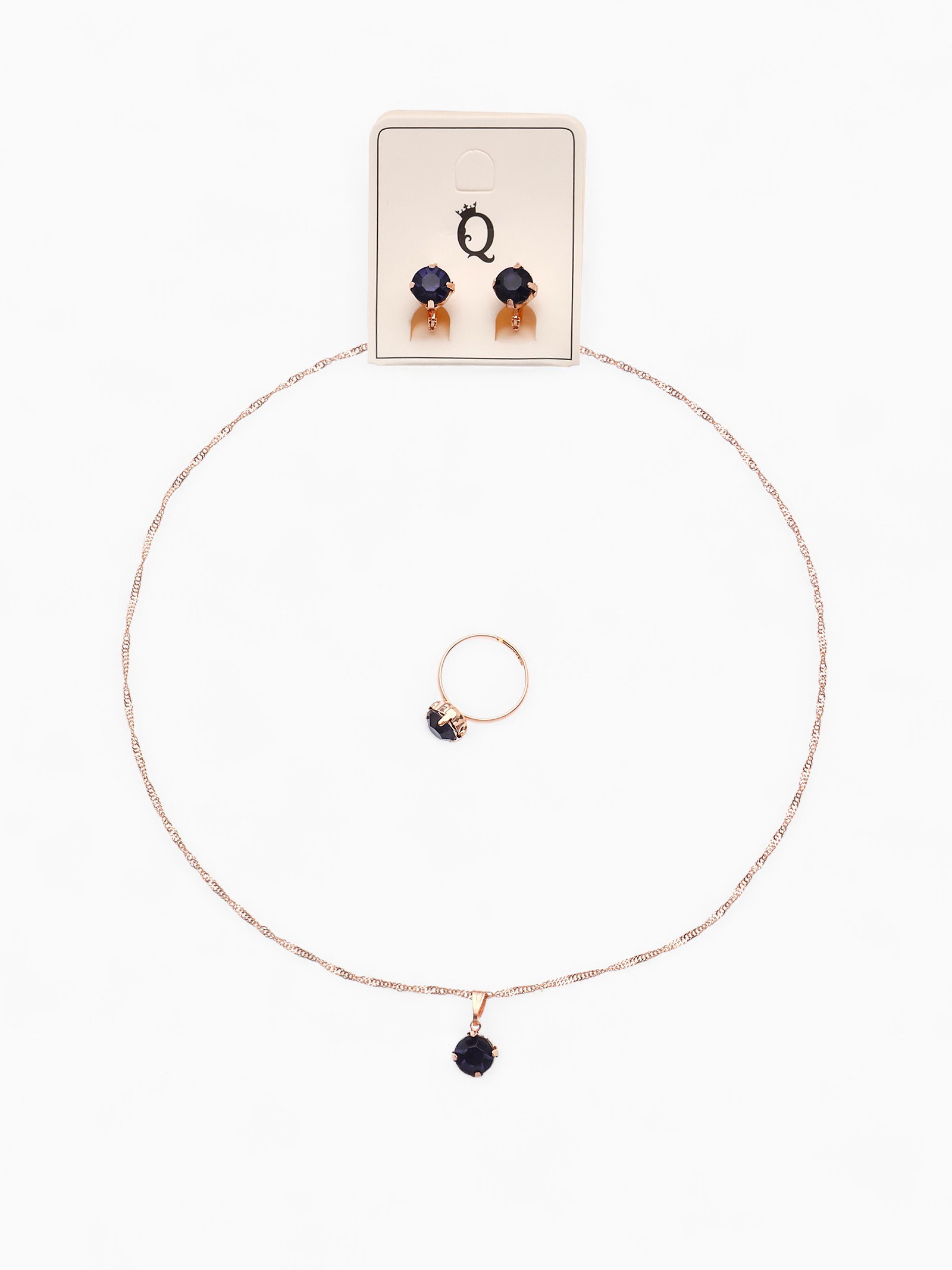 Гарнитур 3 предмета: серьги, кулон, кольцо безразмерное "Эдель" бусинка, цвет синий в золоте, 45 см, 0.5x45x0.5 см., QF, Китай