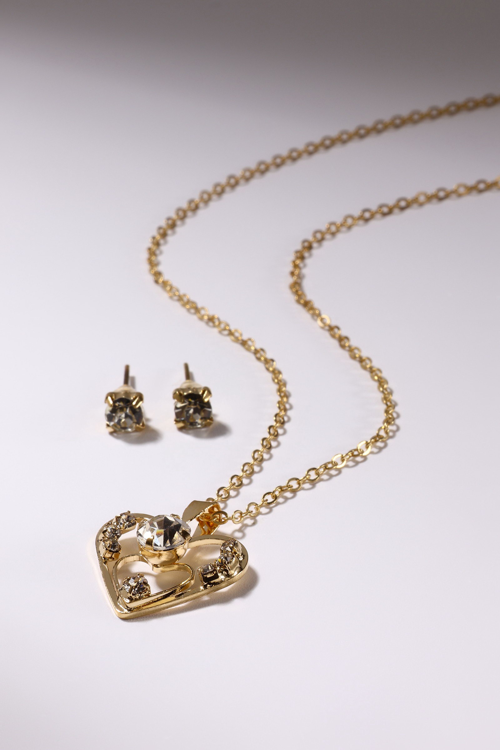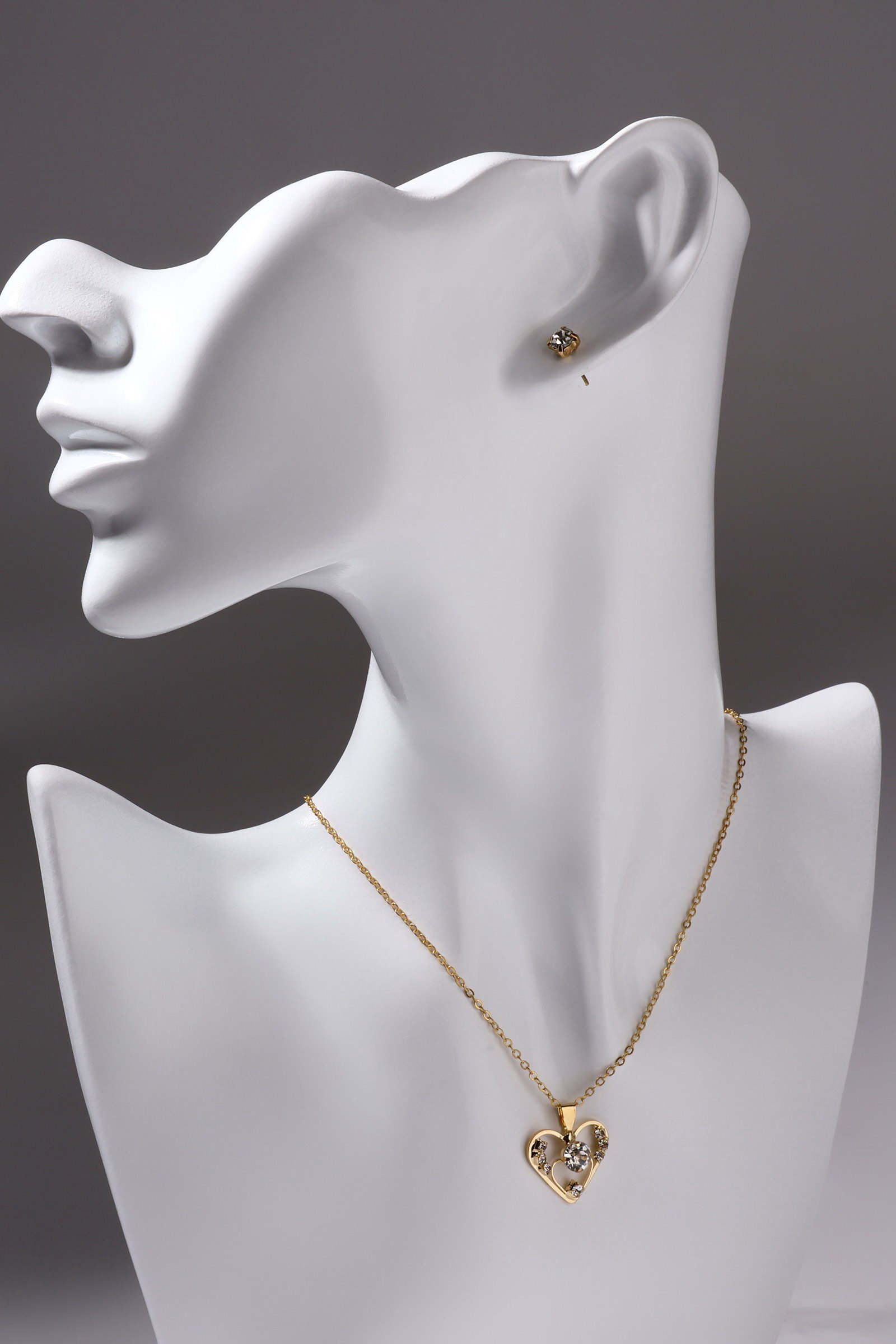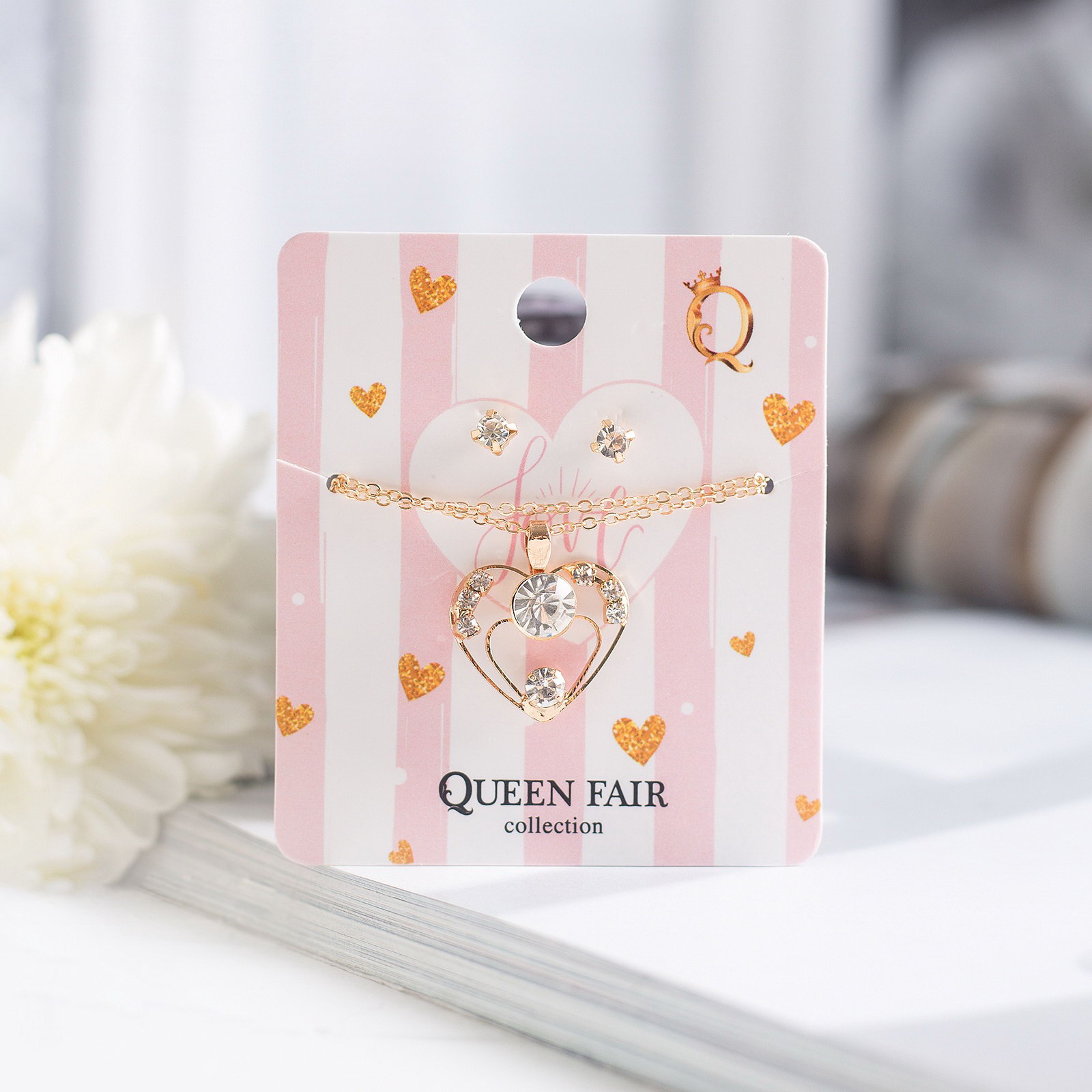 Гарнитур 2 предмета: кулон, серьги "Невесомость", сердце, цвет белый в золоте, 45 см, 2.5x45x0.4 см., QF, Китай