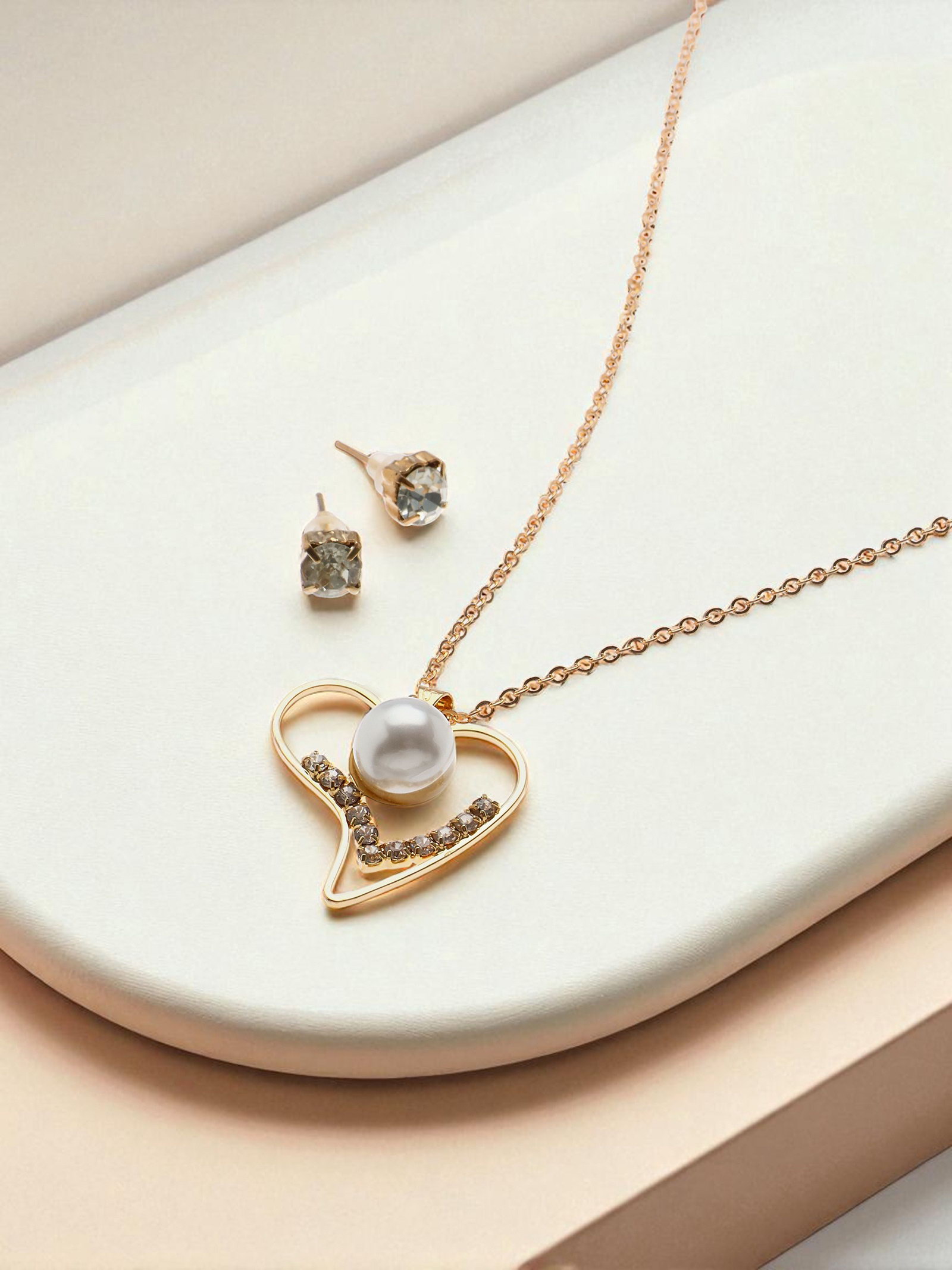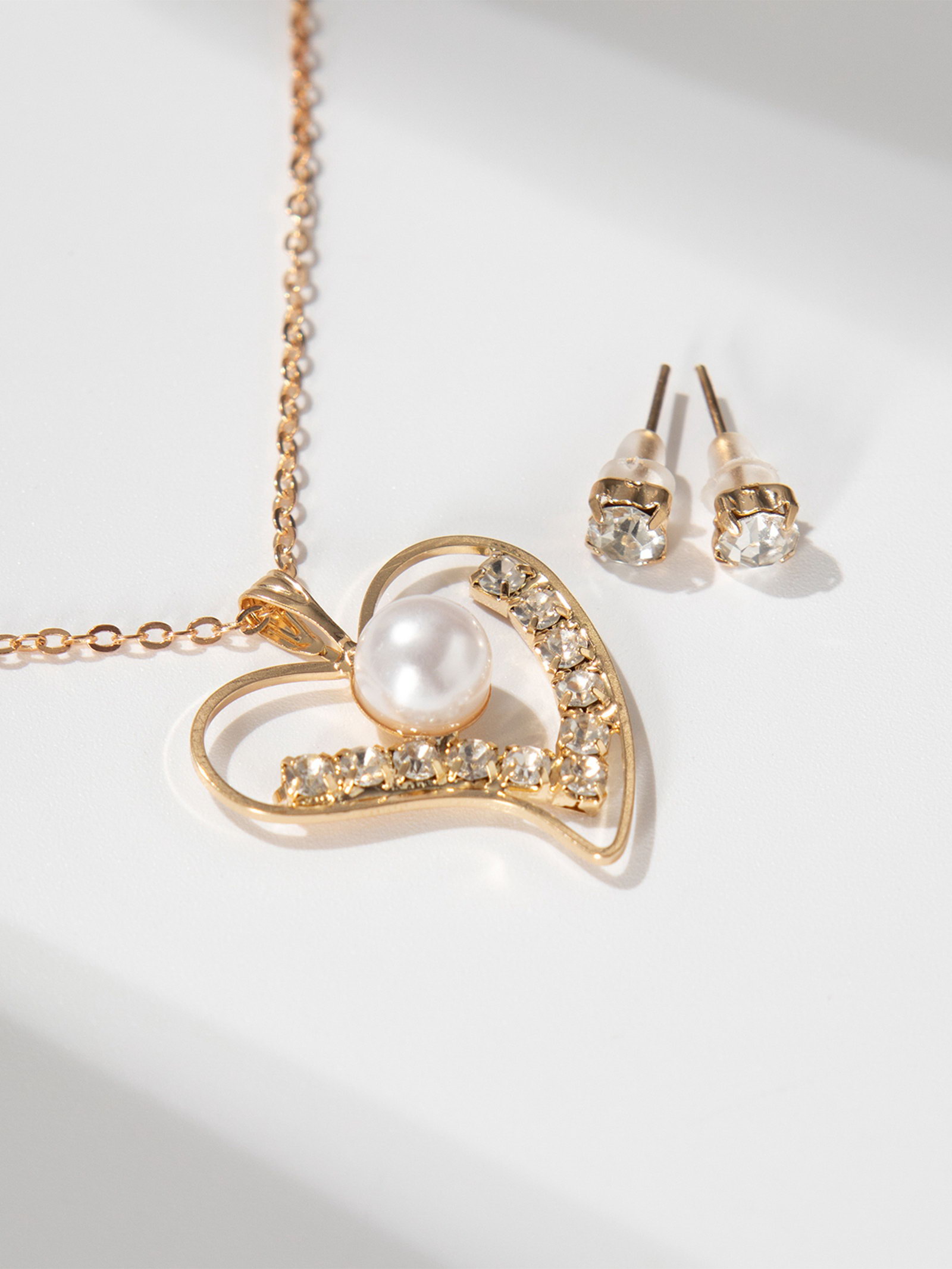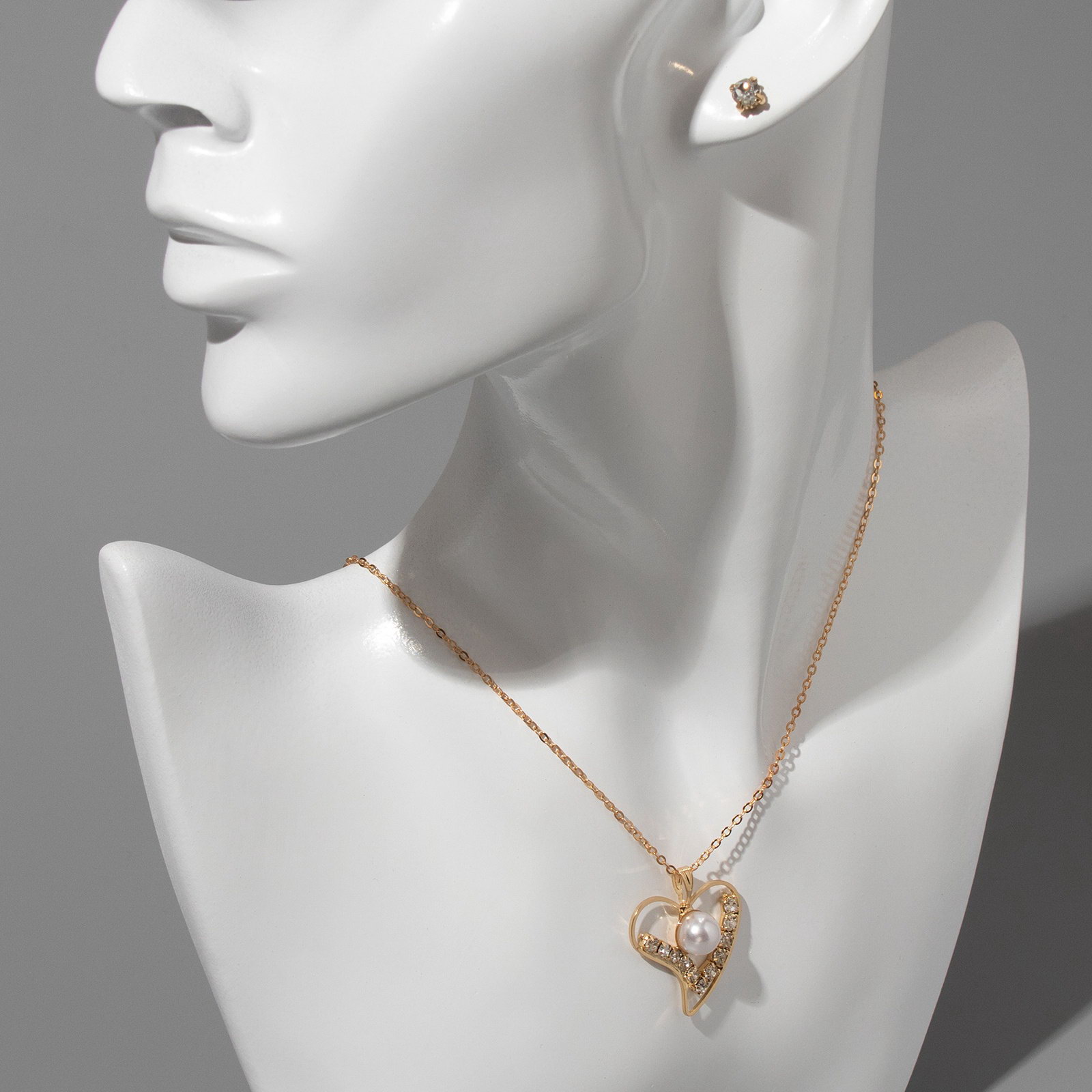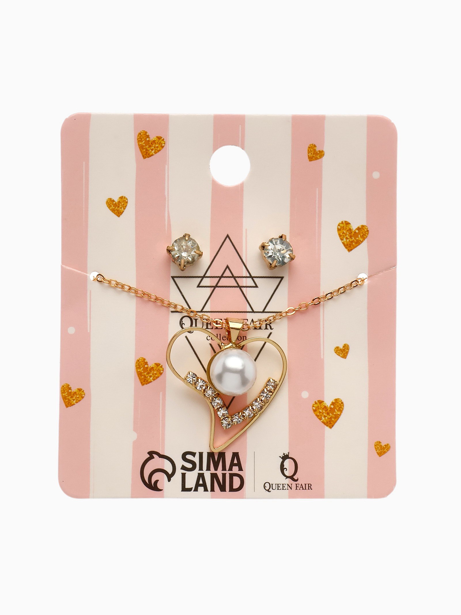 Гарнитур 2 предмета: кулон, серьги "Невесомость", сердечко, цвет белый в золоте, 45см, 3x45x0.4 см., QF, Китай
