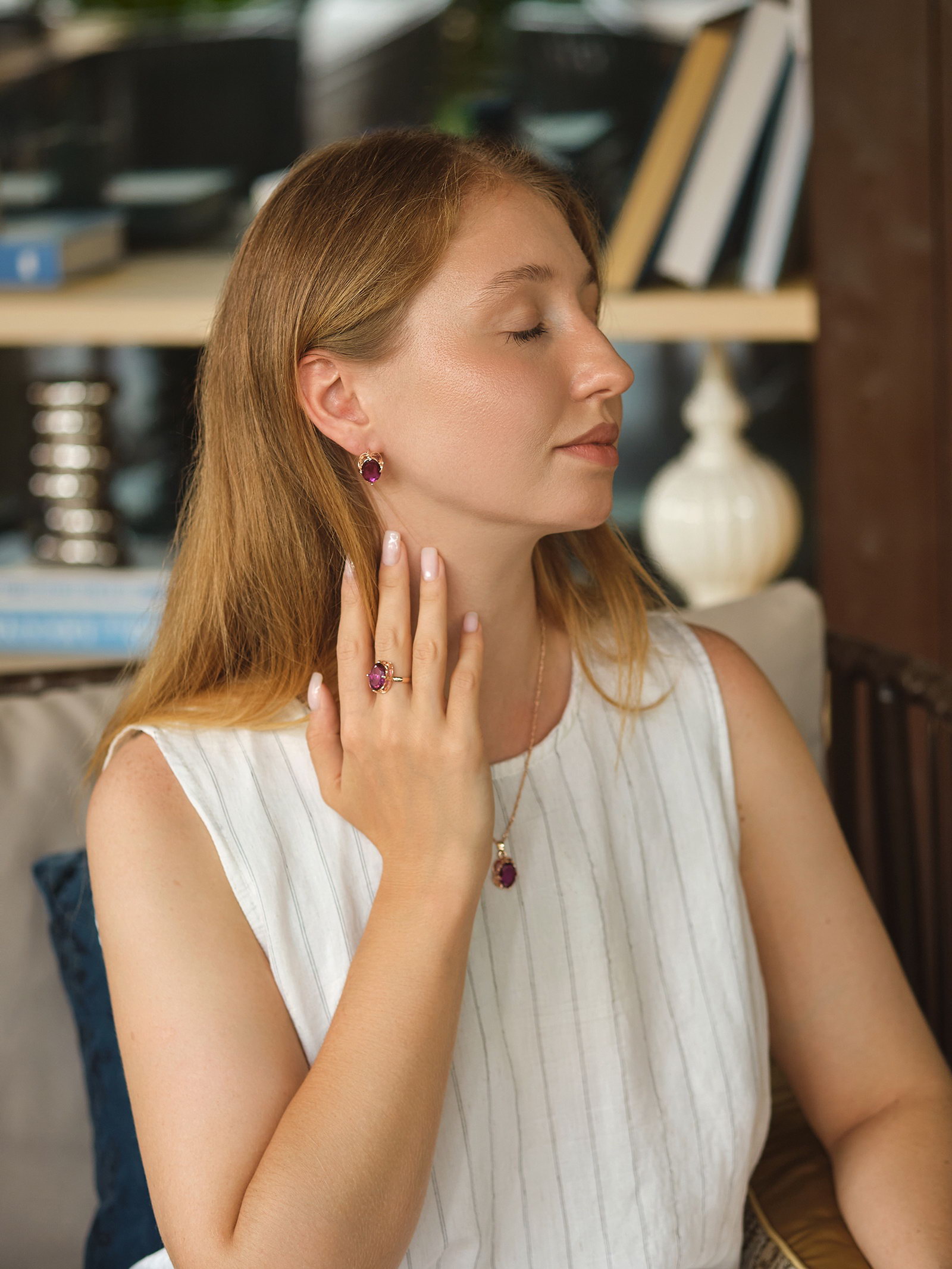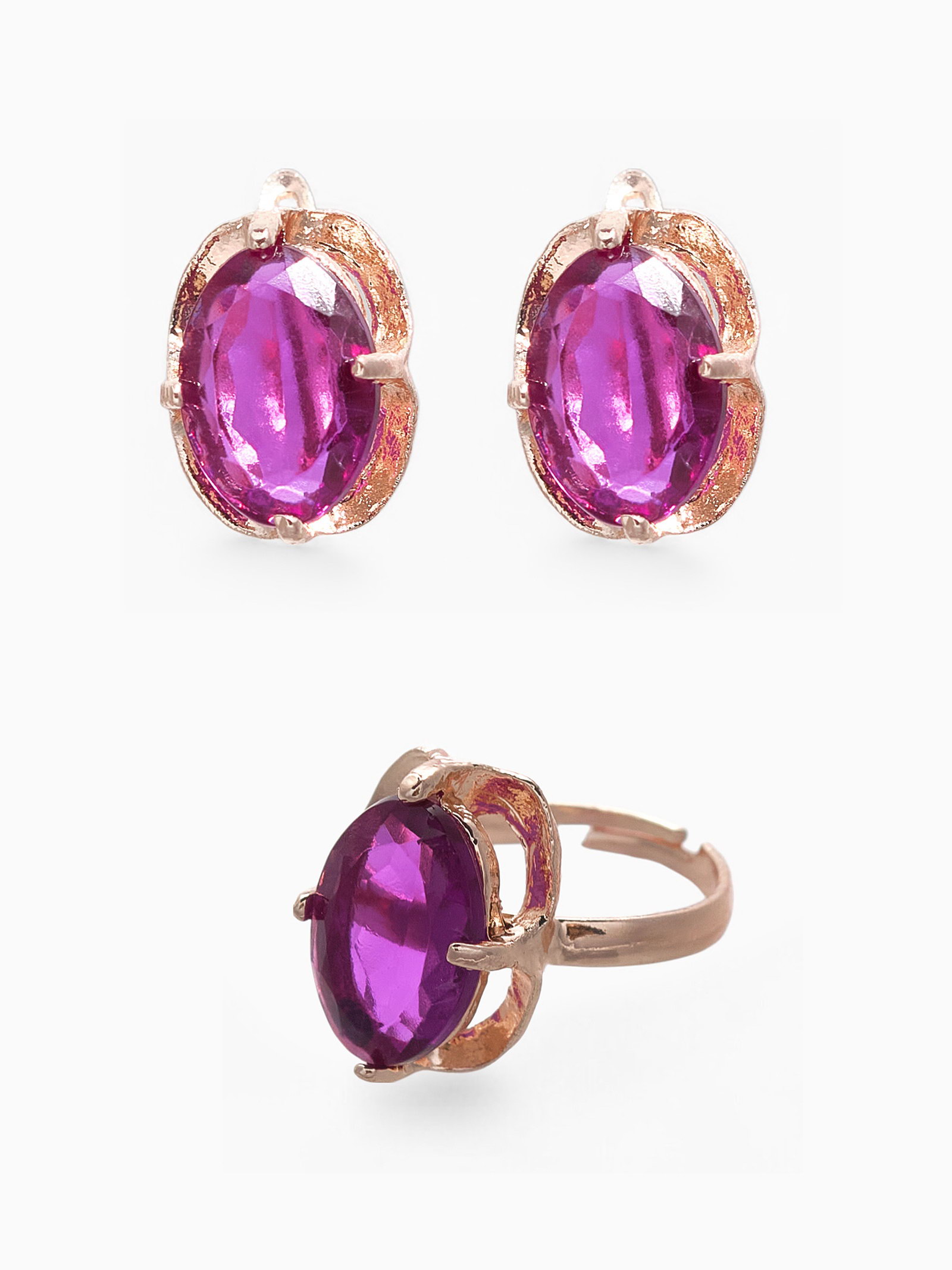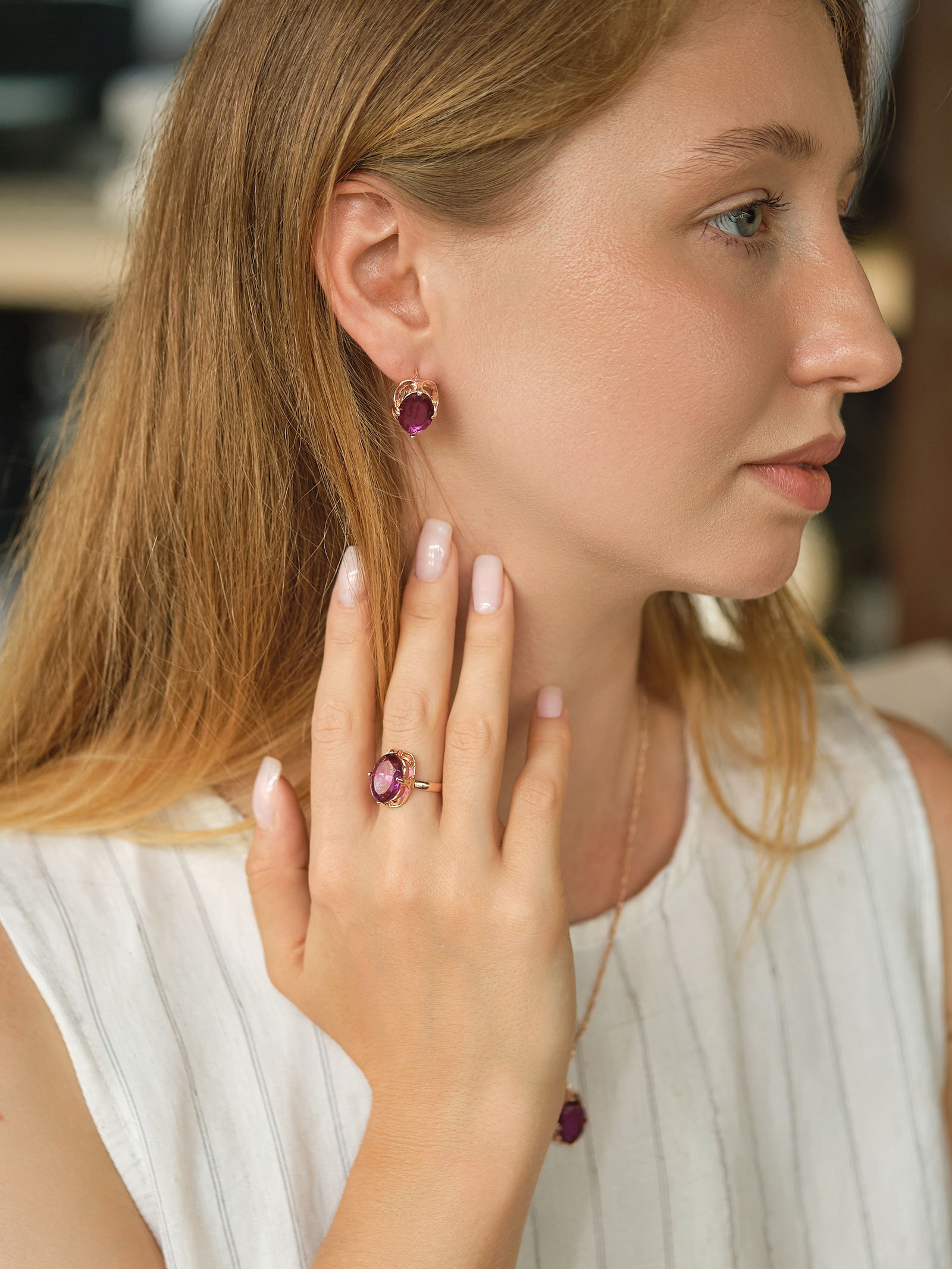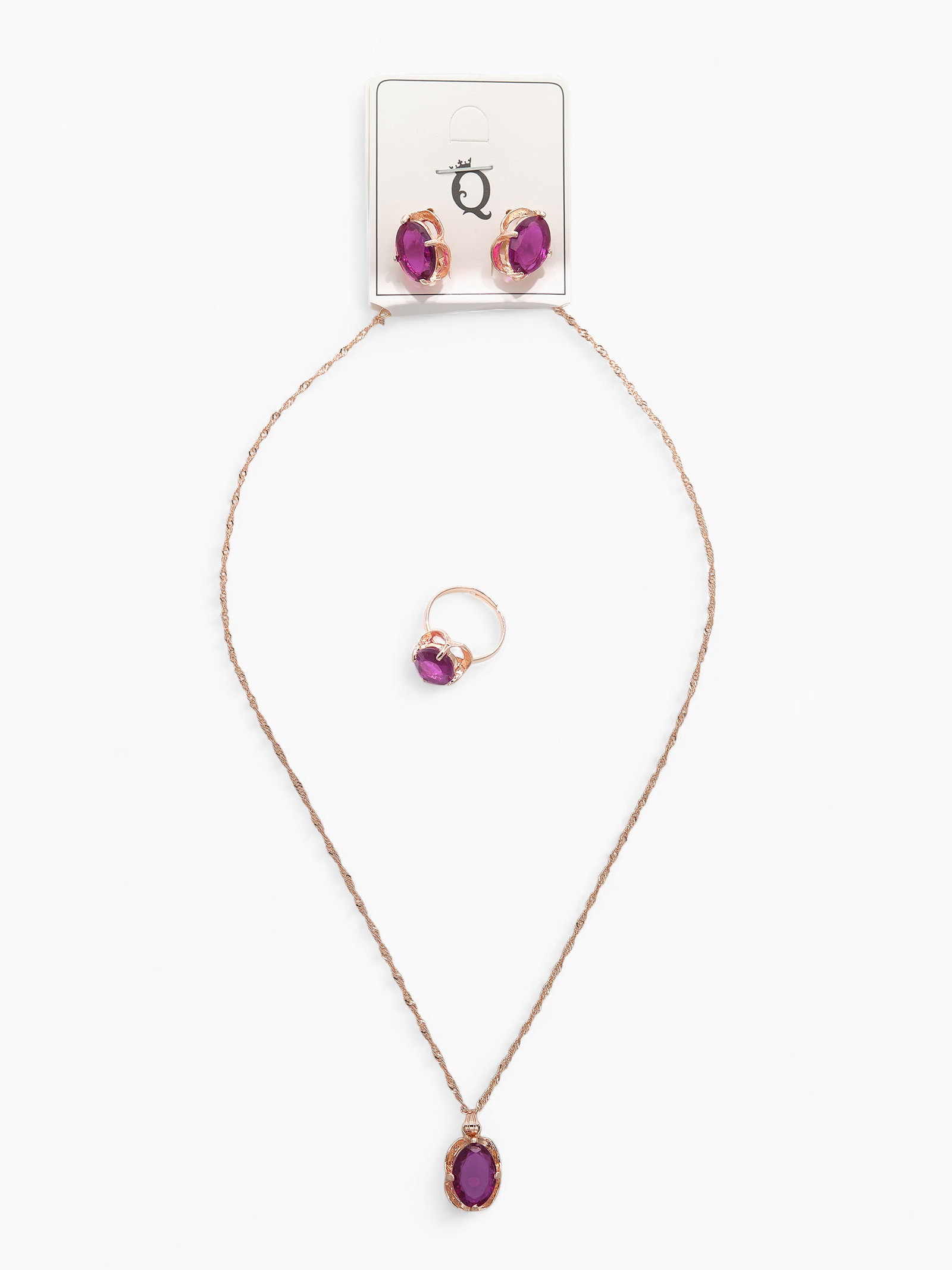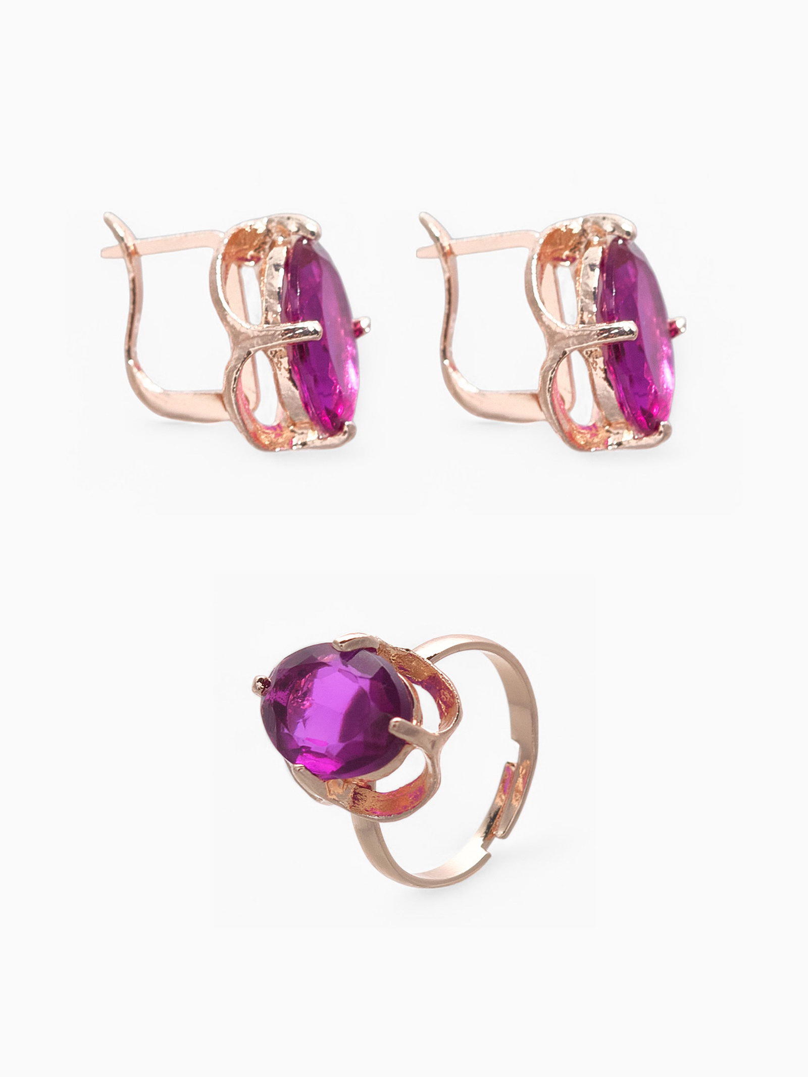 Гарнитур 3 предмета: серьги, кулон, кольцо безразмерное "Эдель" классик, цвет фиол в золоте, 45 см, 2x46x1.5 см., QF, Китай