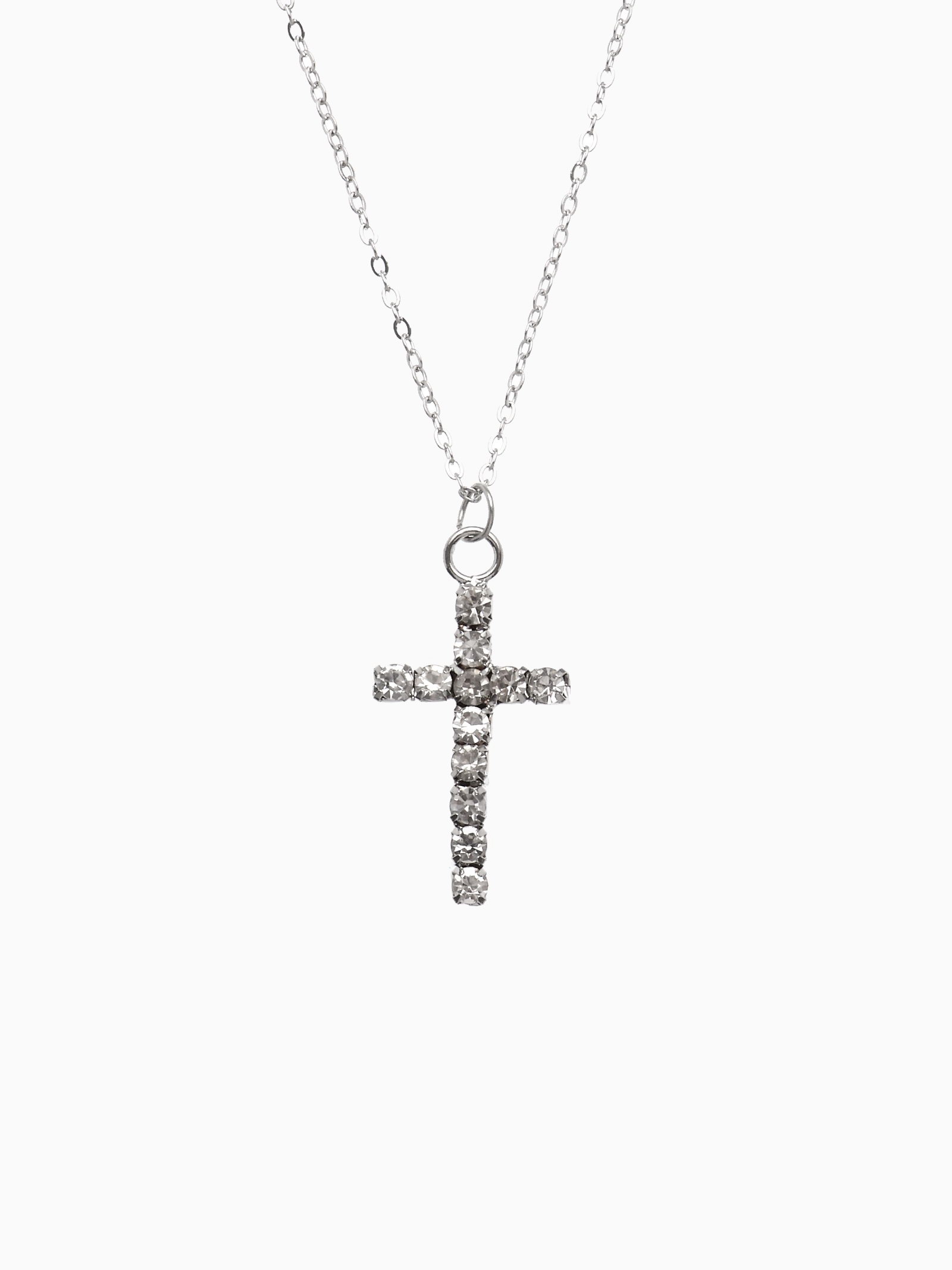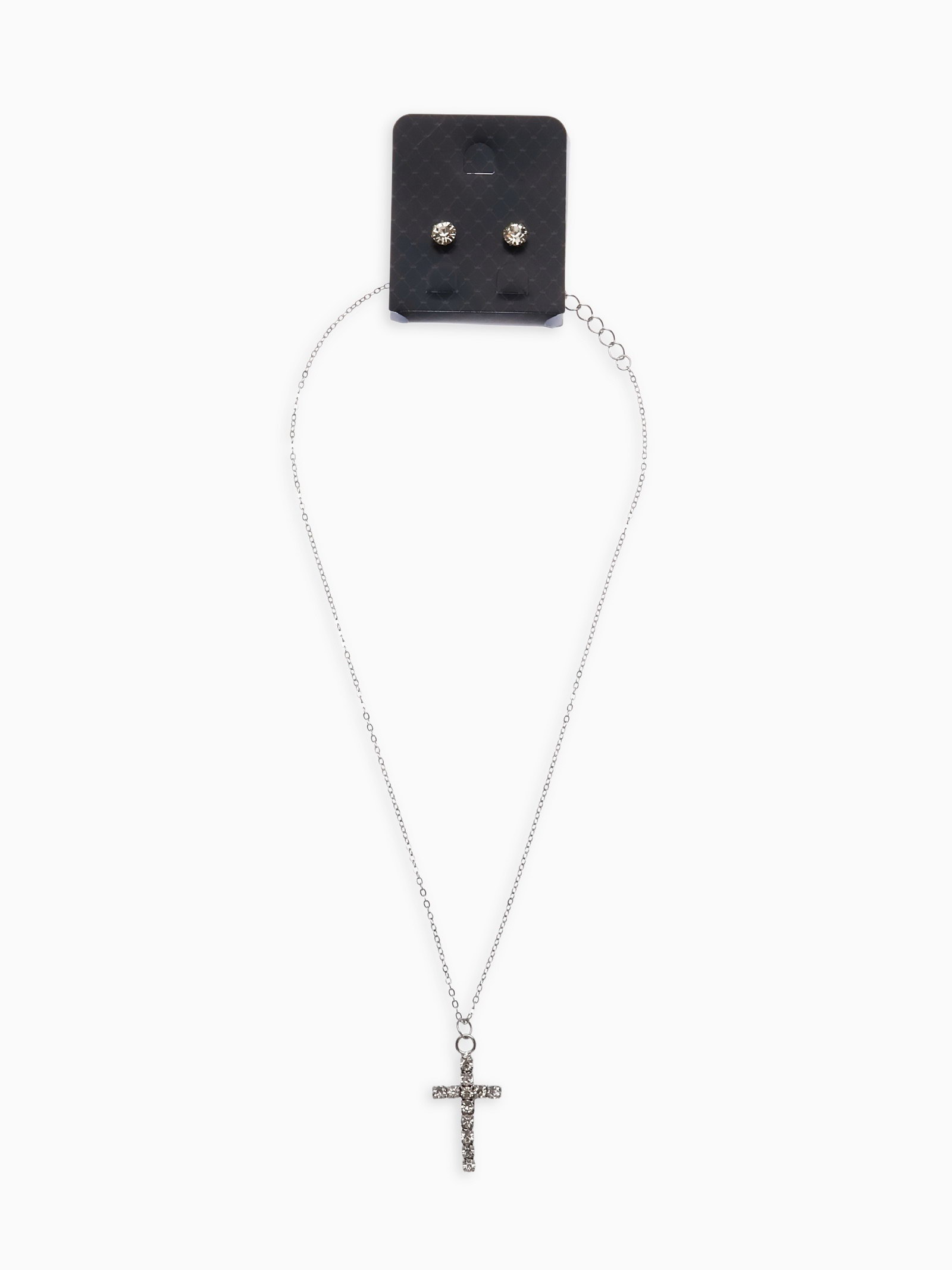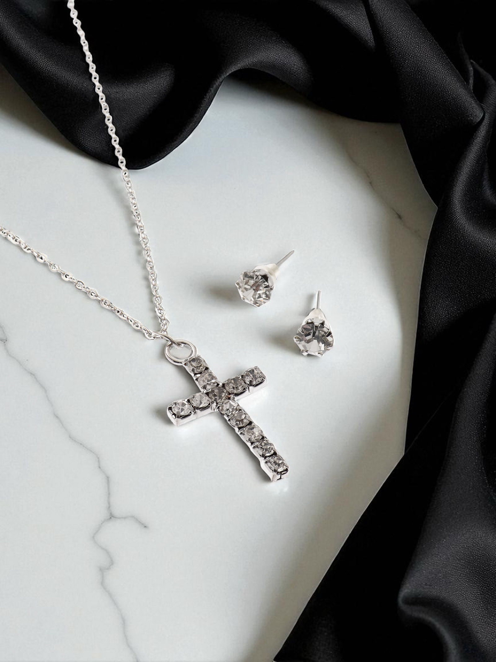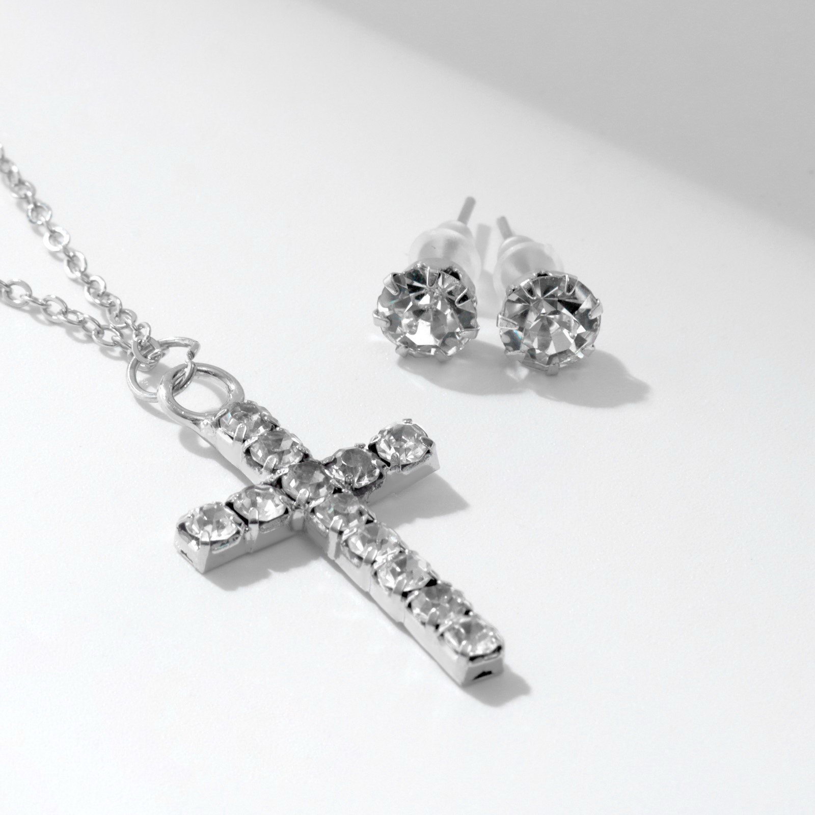 Гарнитур 2 предмета: кулон, серьги "Крестик", цвет белый в серебре, 43 см, 0.6x43x3 см., QF, Китай