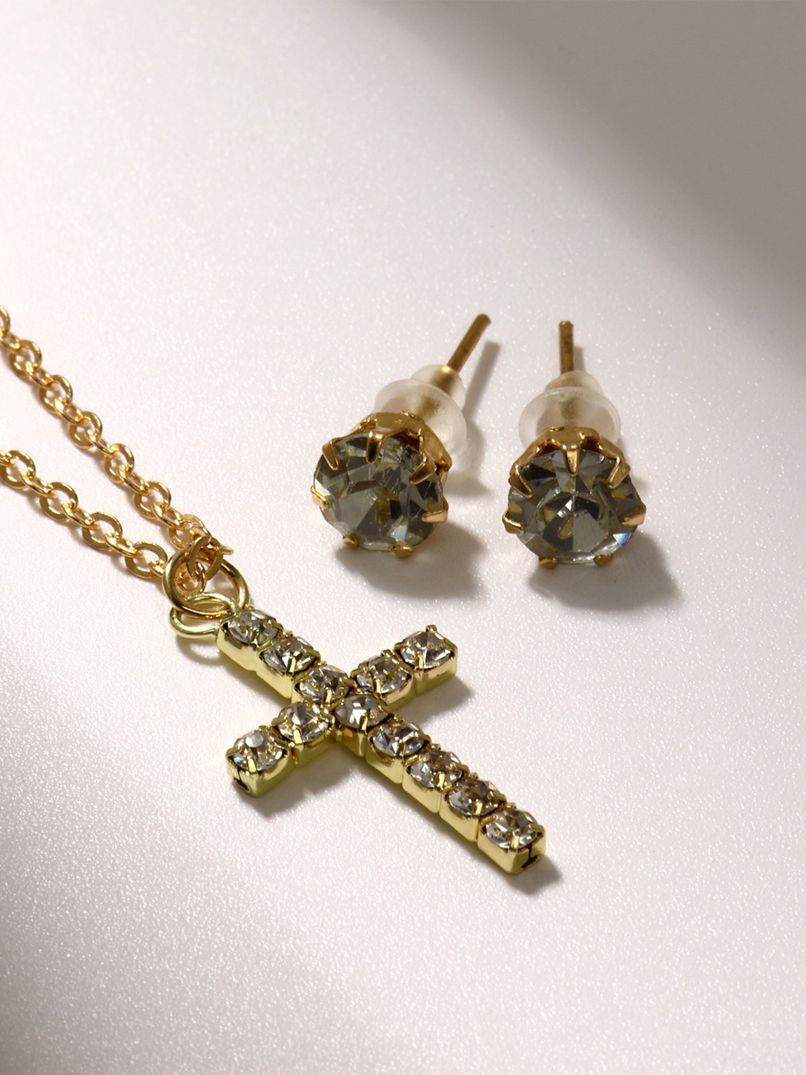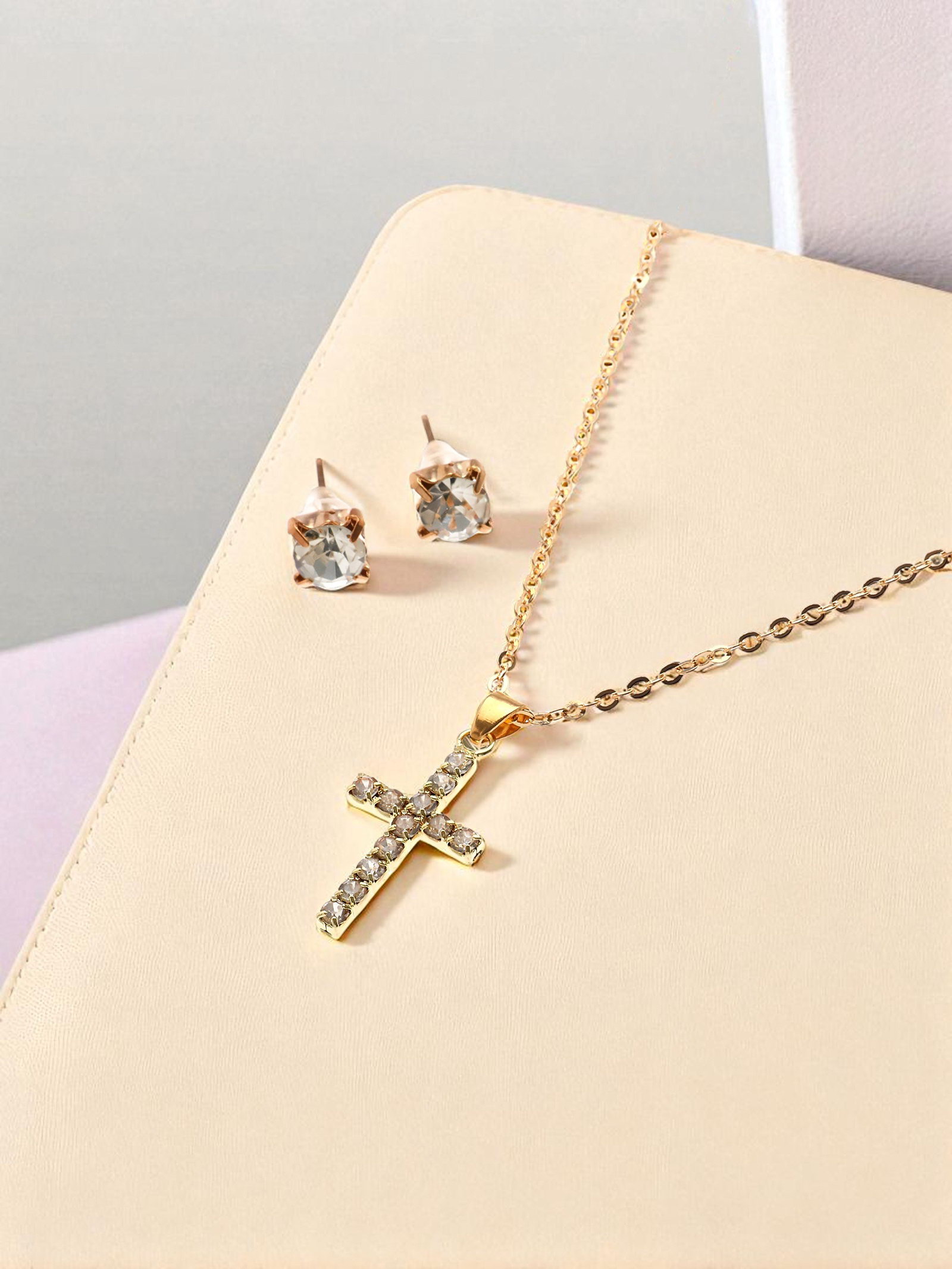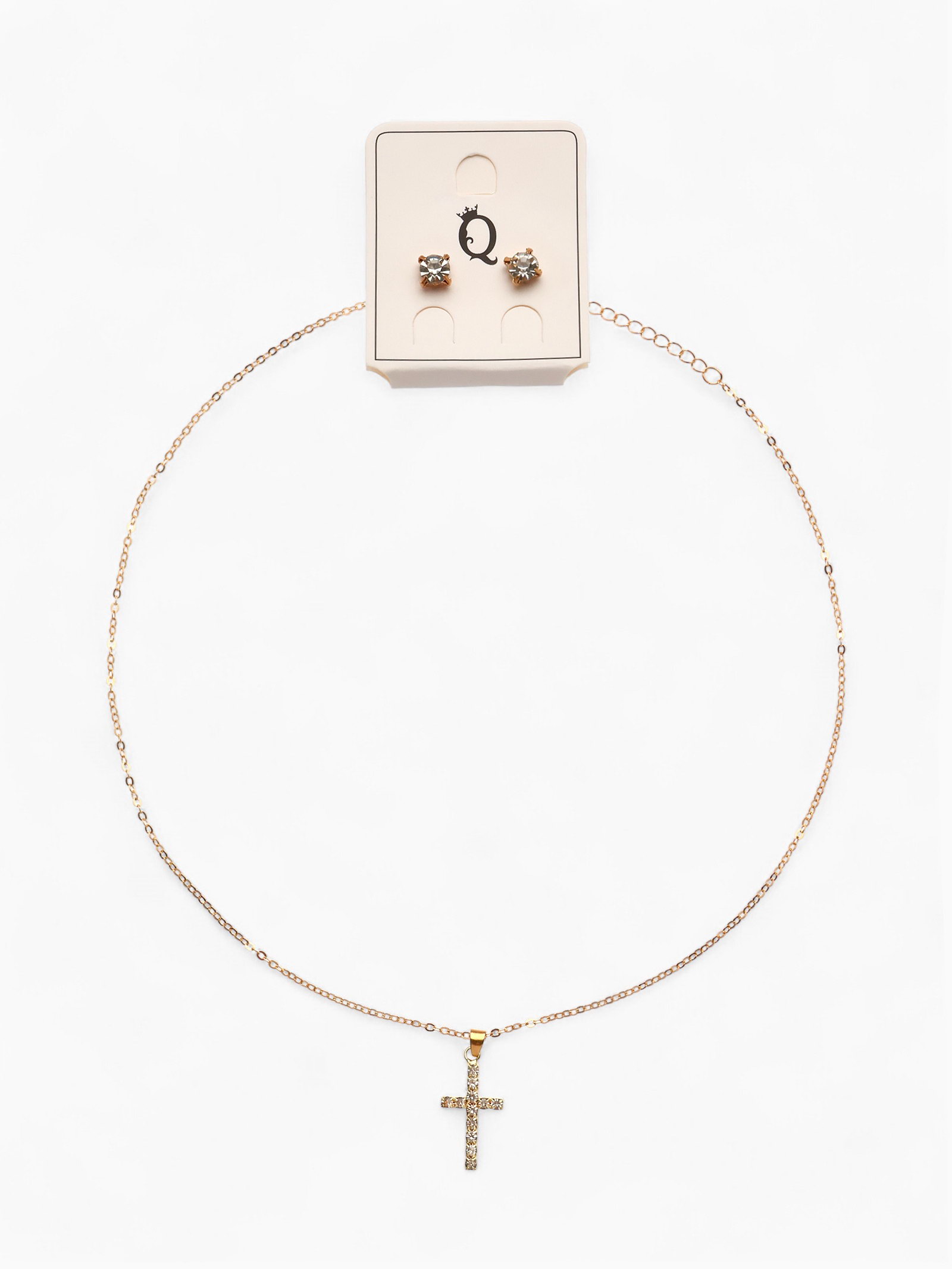 Гарнитур 2 предмета: кулон, серьги "Крестик", цвет белый в золоте, 43 см, 1.3x43x0.4 см., QF, Китай