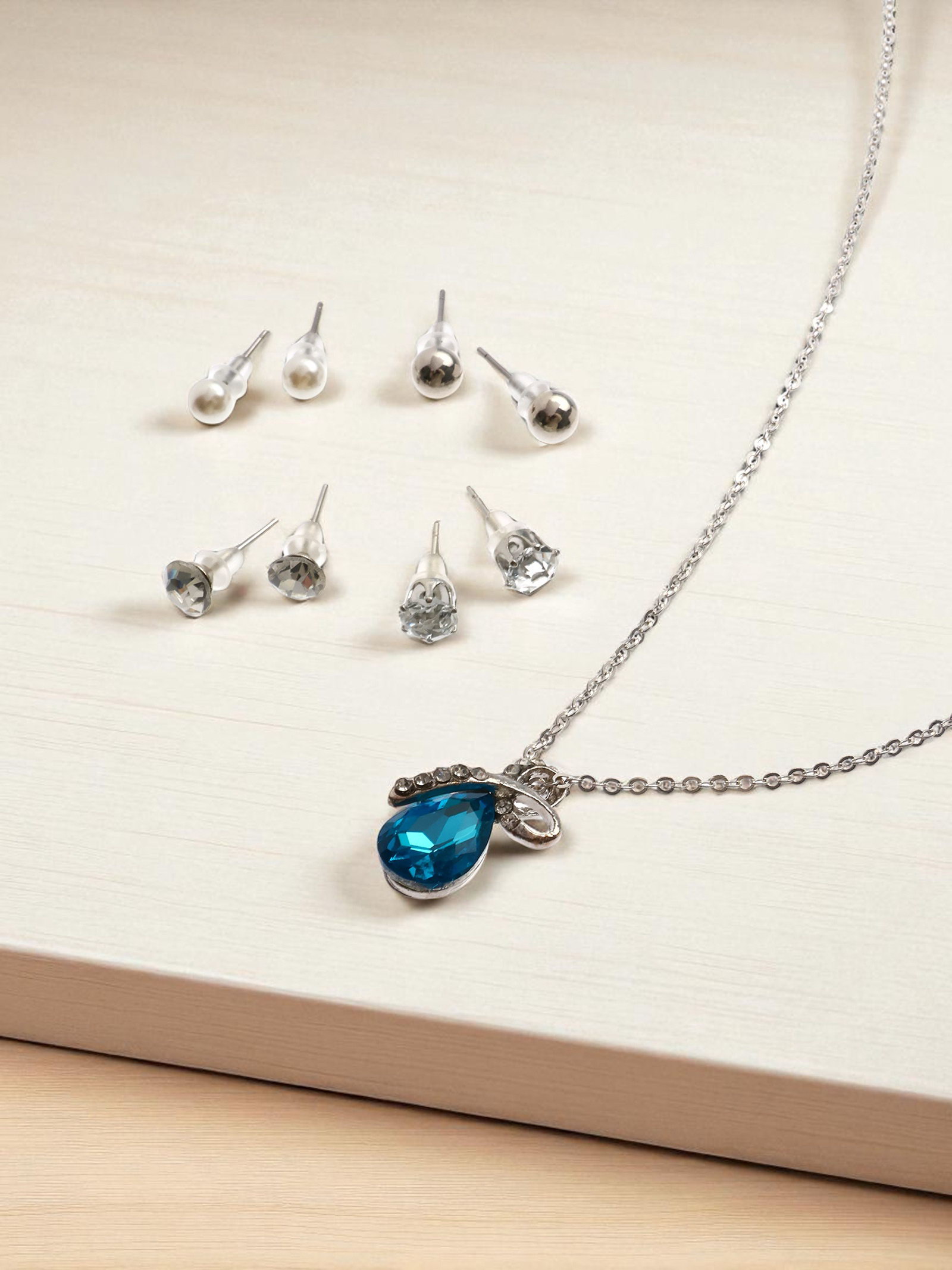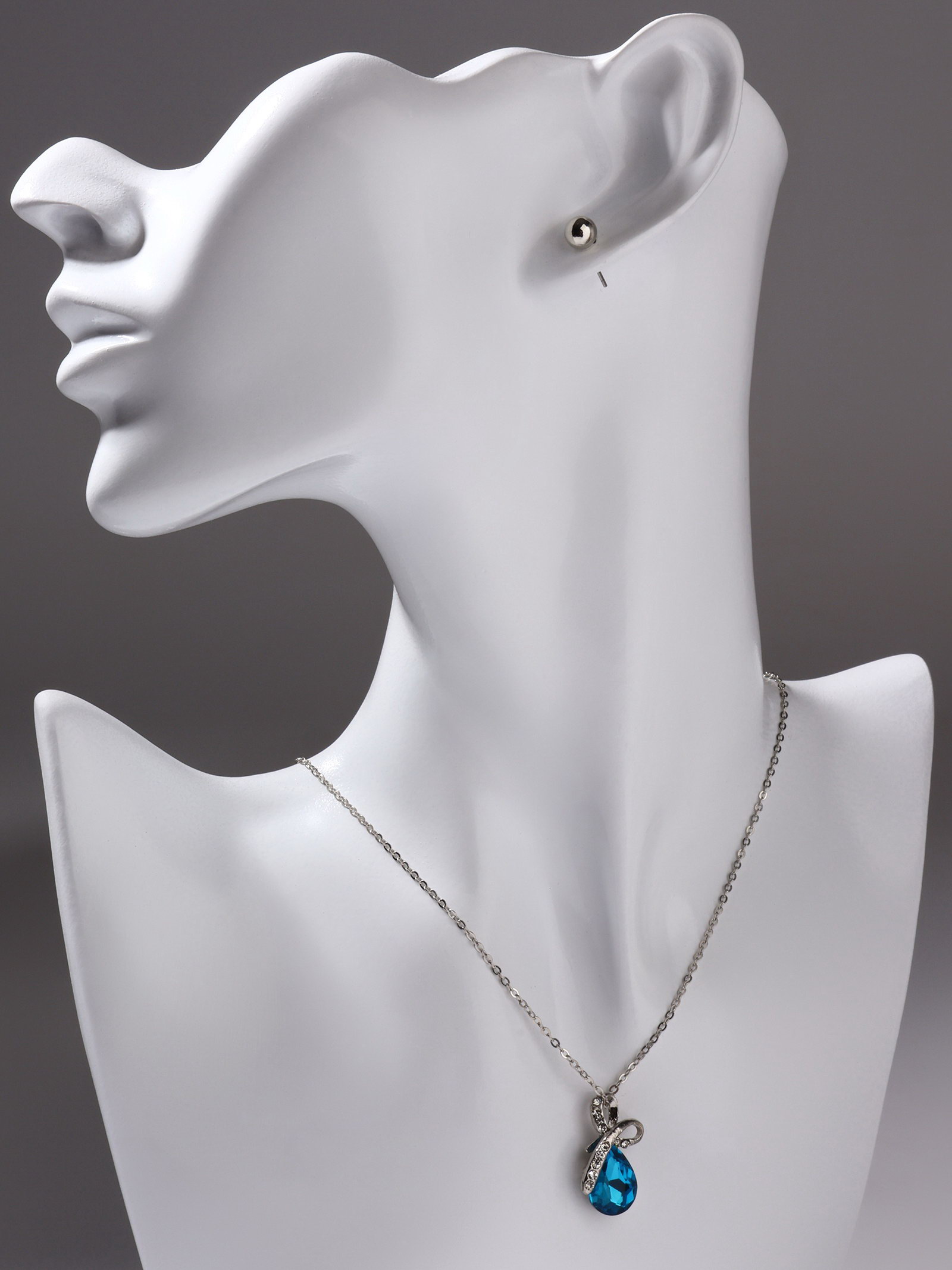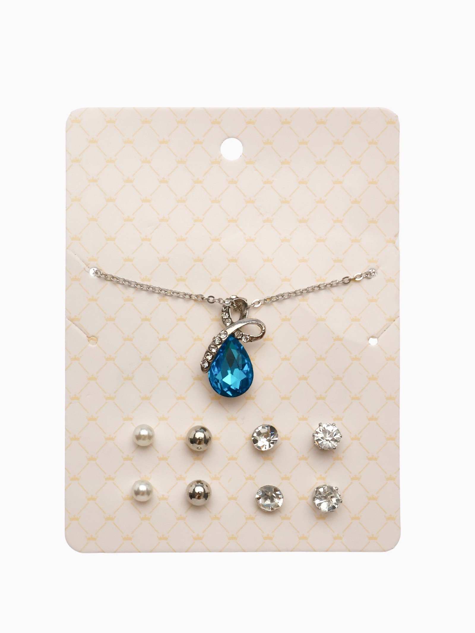 Гарнитур 5 предметов: 4 пары пусет, кулон "Капелька", цвет бело-голубой в серебре 40 см, 3x40x0.8 см., QF, Китай