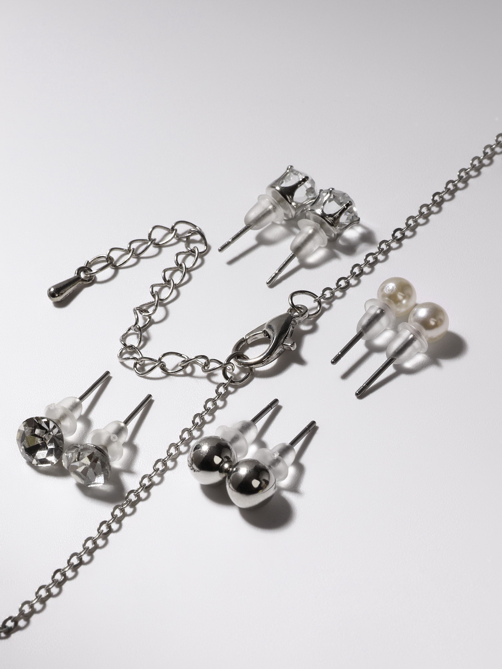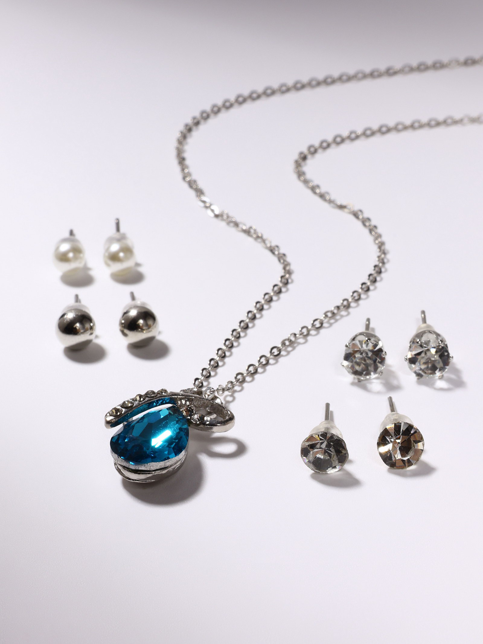 Цвет: Белый, Голубой Вставка/Подвеска: Жемчуг, Пластик, Стекло, Стразы Вид: Кулон, Серьги Размер упаковки: 7.5 x 1 x 10 см. В наборе, шт.: 5 Состав набора: Серьги + Кулон Цвет фурнитуры: Серебряный Материал основы: Металл Бижутерия с открыткой: Нет Для кого: Для женщины Тематика праздника: Универсальная тематика Набор: Да tnved: 7117190000 Тематика: Винтаж Основа для кулона: На цепочке Длина, см: 45 Коллекция: Жемчуг Количество ярусов: 1 Количество нитей: 1 Гарнитур из 5 предметов: 4 пары стильных пусет и изящный кулон это идеальное решение для тех, кто ценит разнообразие и универсальность. Этот комплект можно носить как вместе, так и по отдельности, создавая множество комбинаций. Чередуйте серьги, создавайте индивидуальные образы на каждый день или для особых случаев. Гарнитур станет отличным дополнением к любому стилю, подчеркнет ваш уникальный вкус и позволит каждый раз выглядеть по-новому. Советы по уходу за бижутерией | ||