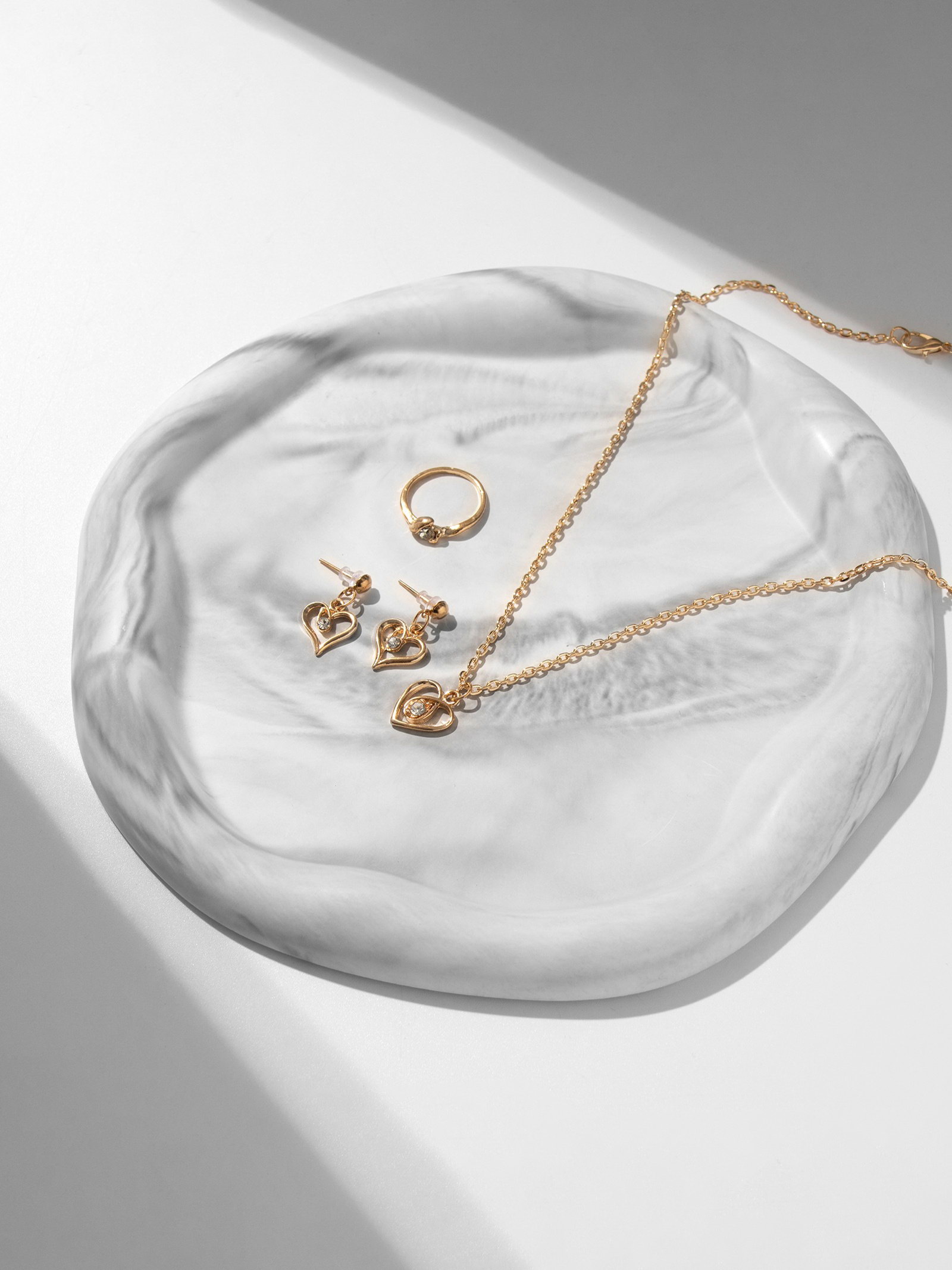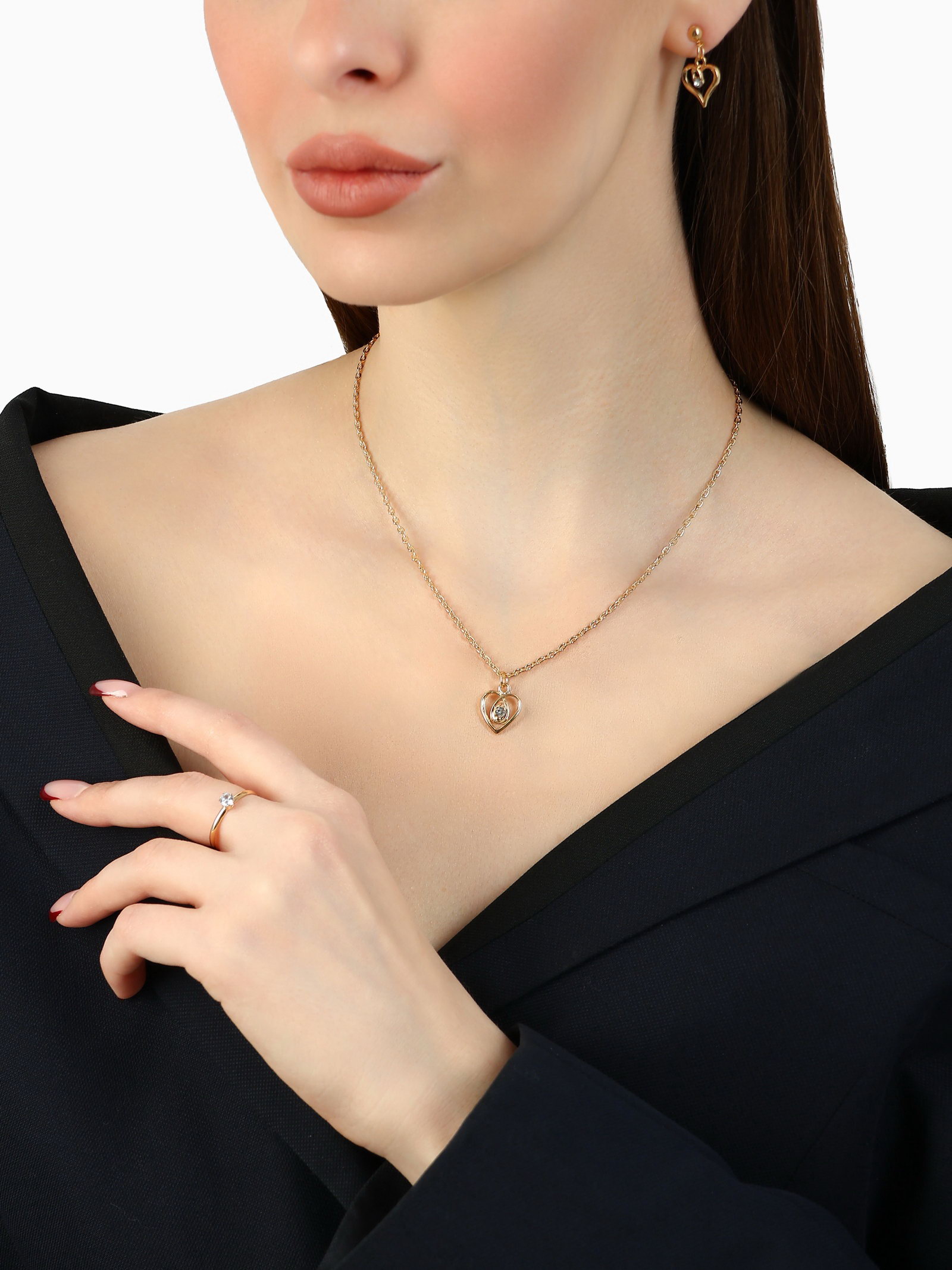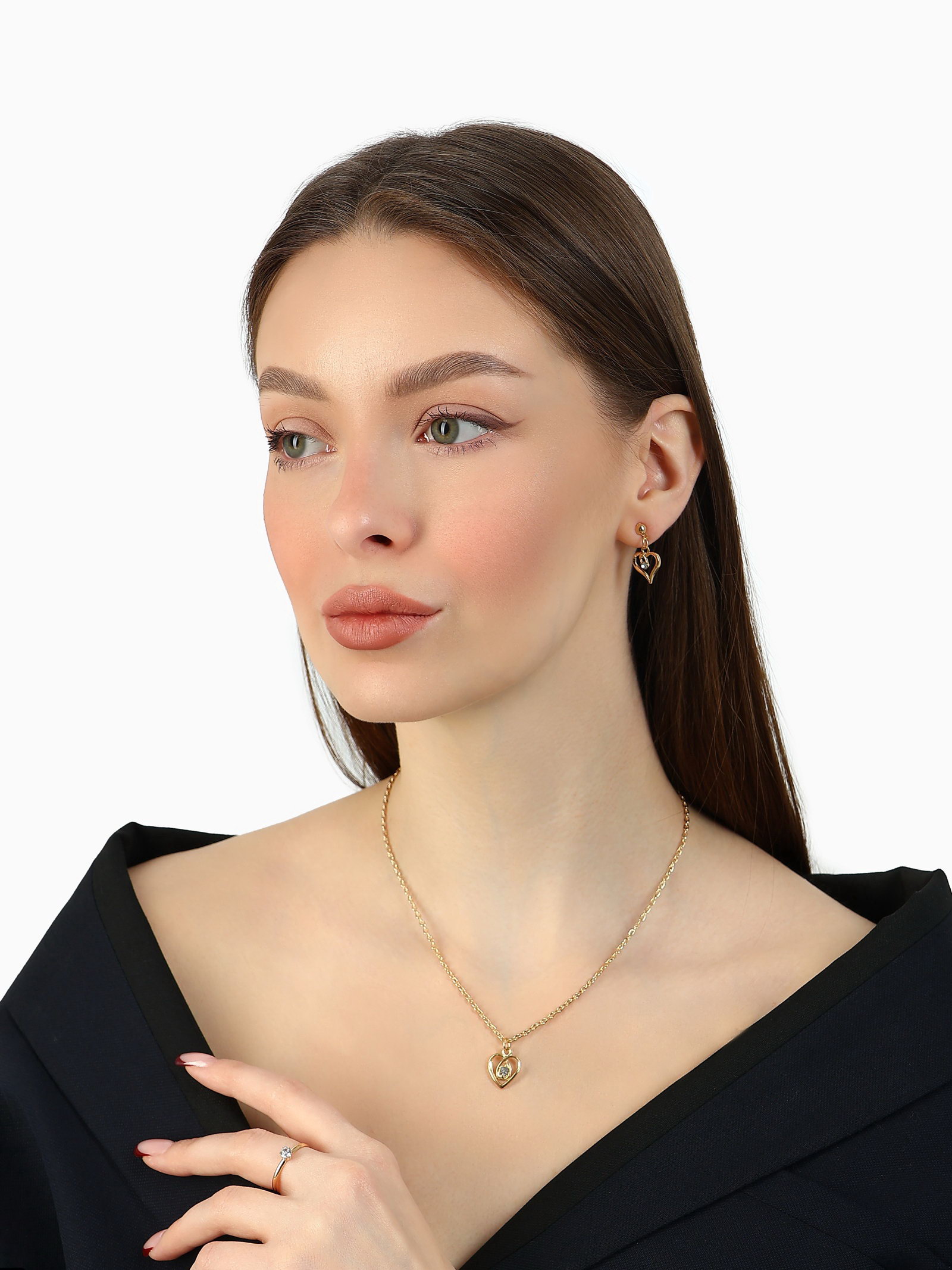 Вид: Кулон, Серьги Размер упаковки: 5.8 x 1.5 x 7 см. В наборе, шт.: 3 Состав набора: Серьги + Кулон + Кольцо Вставка/Подвеска: Стразы Цвет: Белый Цвет фурнитуры: Золотой Основа для кулона: На цепочке Материал основы: Металл Длина, см: 40 Размер: Безразмерное см Для кого: Для женщины Бижутерия с открыткой: Нет Тематика праздника: Универсальная тематика Набор: Да tnved: 7117190000 Тематика: Сердце Количество ярусов: 1 Количество нитей: 1 Гарнитур из трёх предметов: серьги, кулон и кольцо это уникальный набор, который можно носить как вместе, создавая гармоничный образ, так и по отдельности, добавляя акцент в каждую деталь. Кольцо выполнено в безразмерном формате, что делает его универсальным и подходящим для любого женского пальца. Этот комплект сочетает в себе элегантность и практичность, идеально дополняя как повседневный стиль, так и вечерние наряды. Советы по уходу за бижутерией