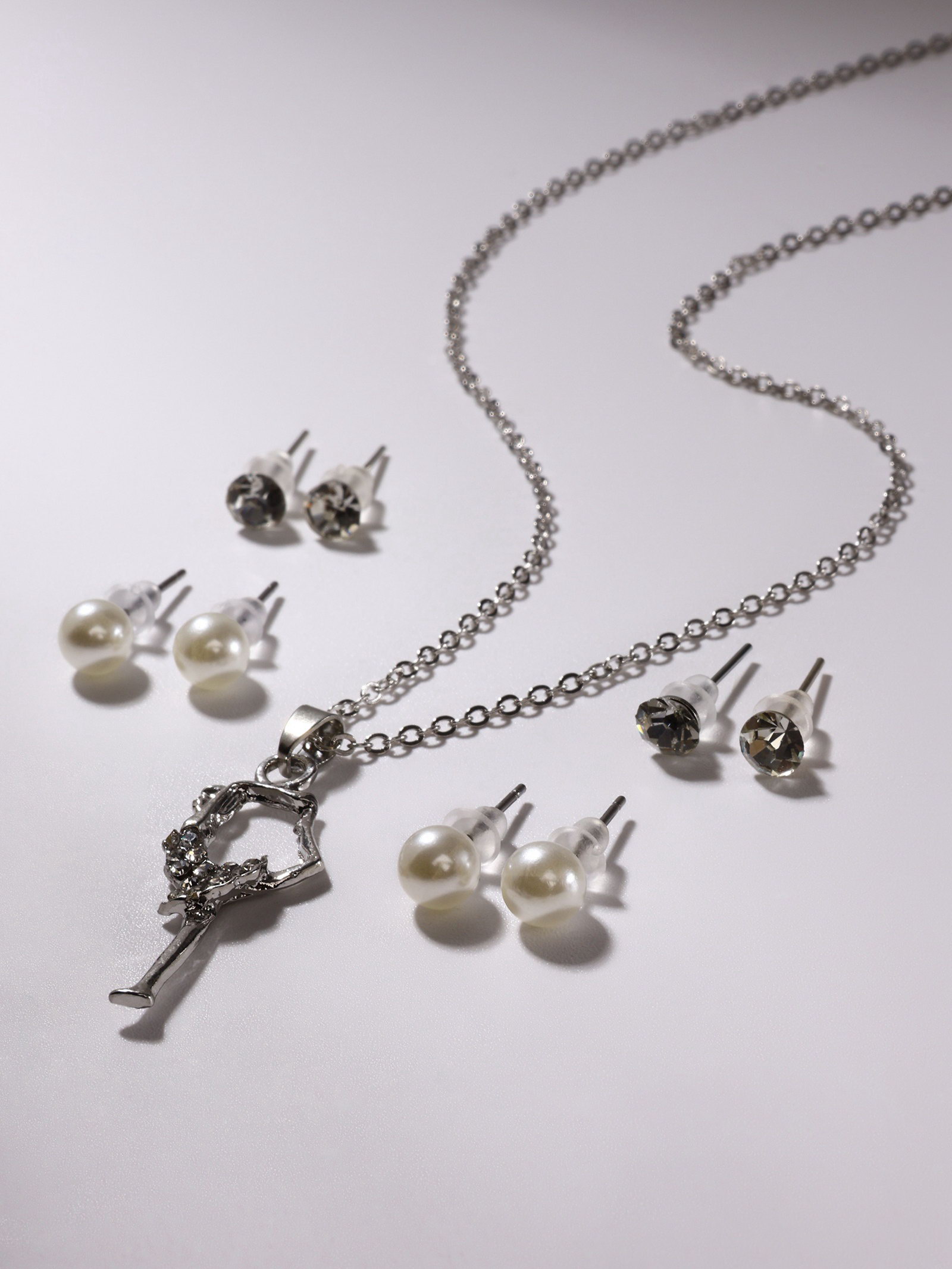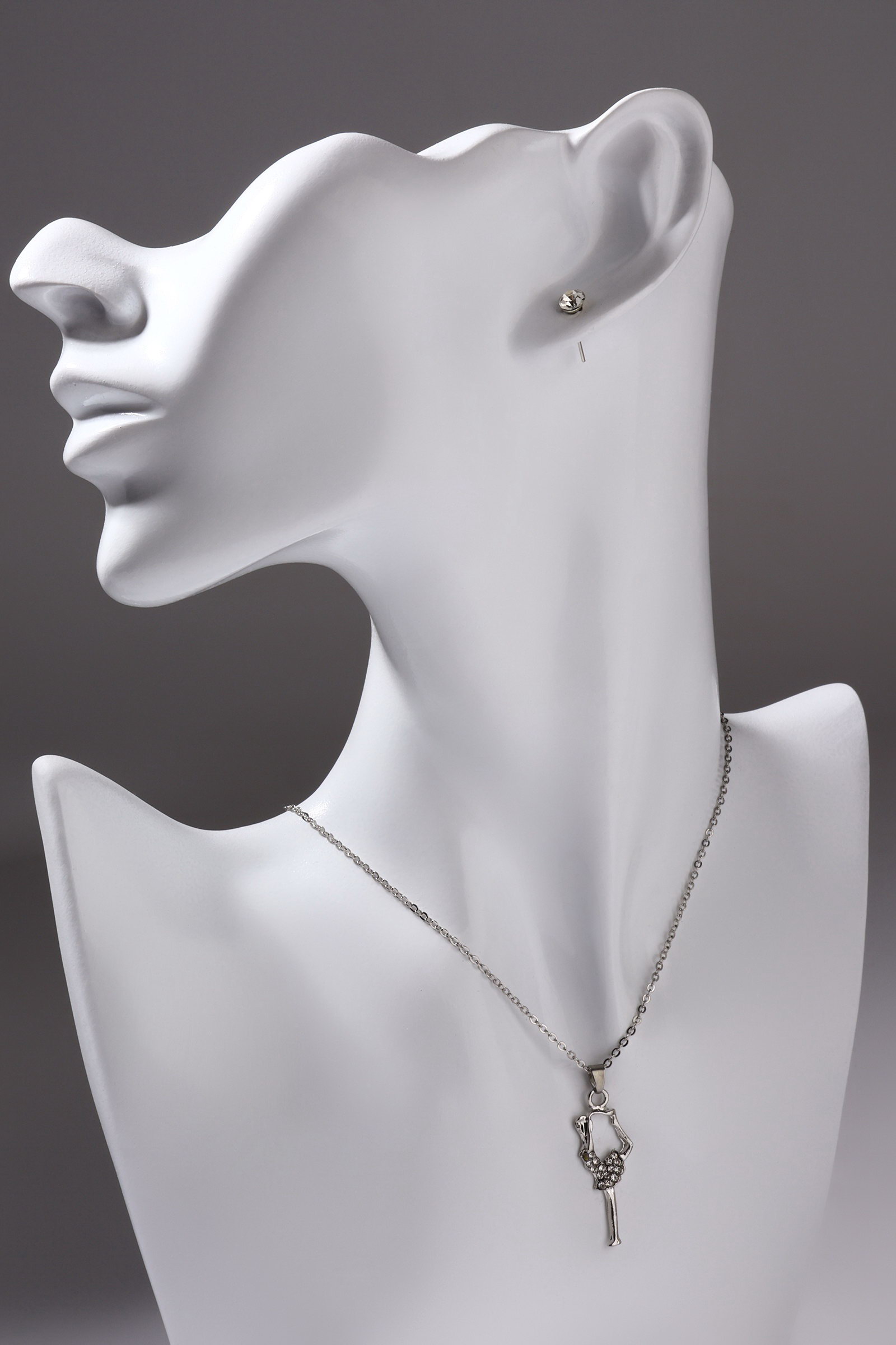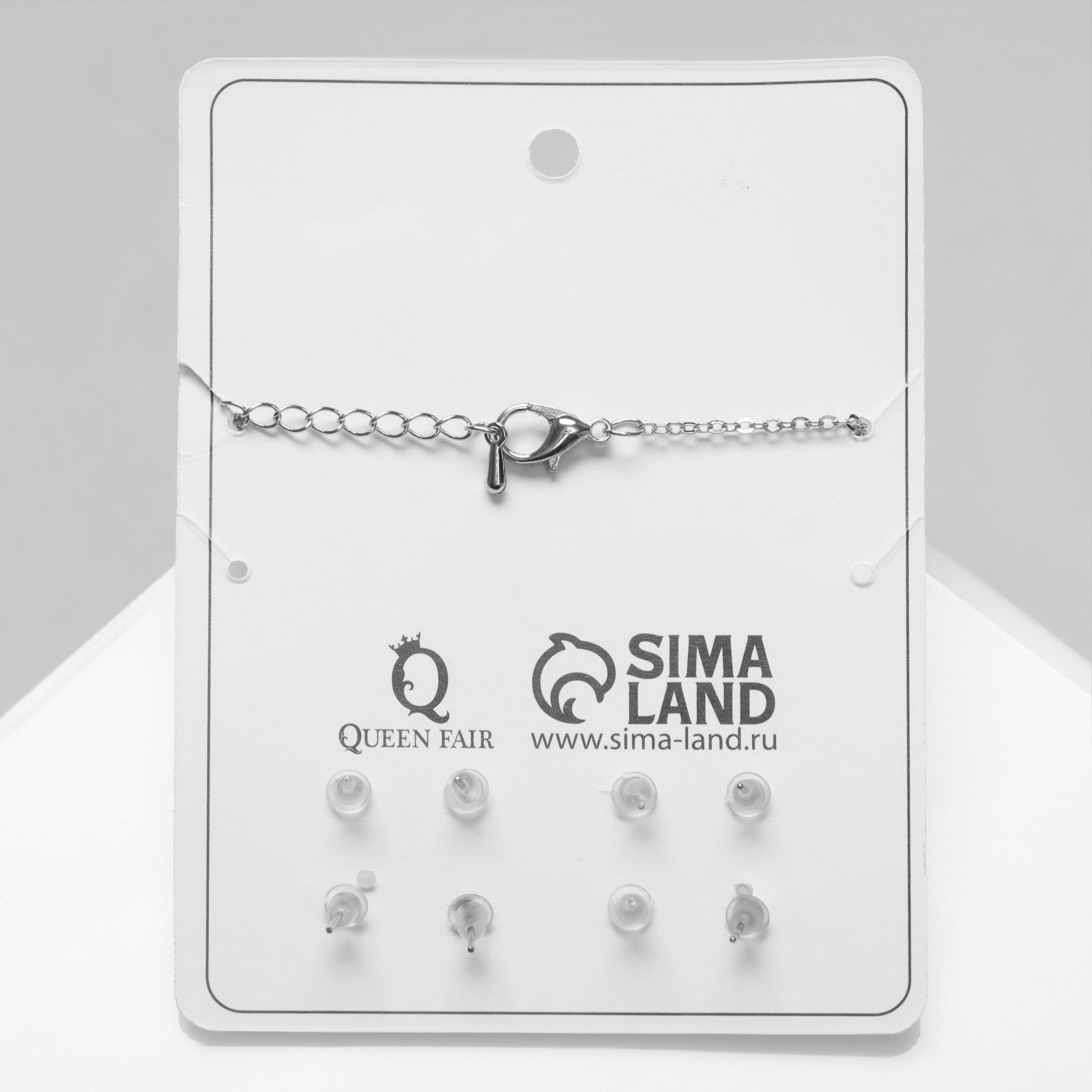 Гарнитур 5 предметов: 4 пары пусет, кулон "Гимнастка", цвет белый в серебре, 40 см, 2x40x0.8 см., QF, Китай