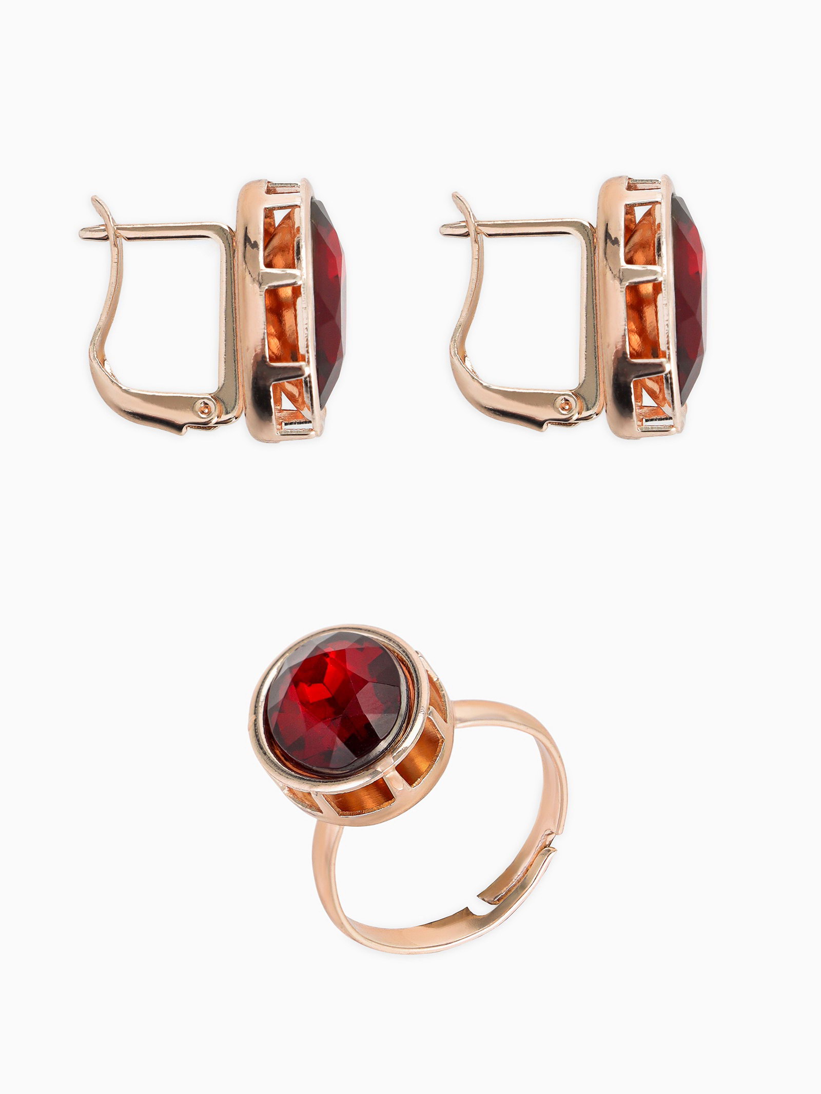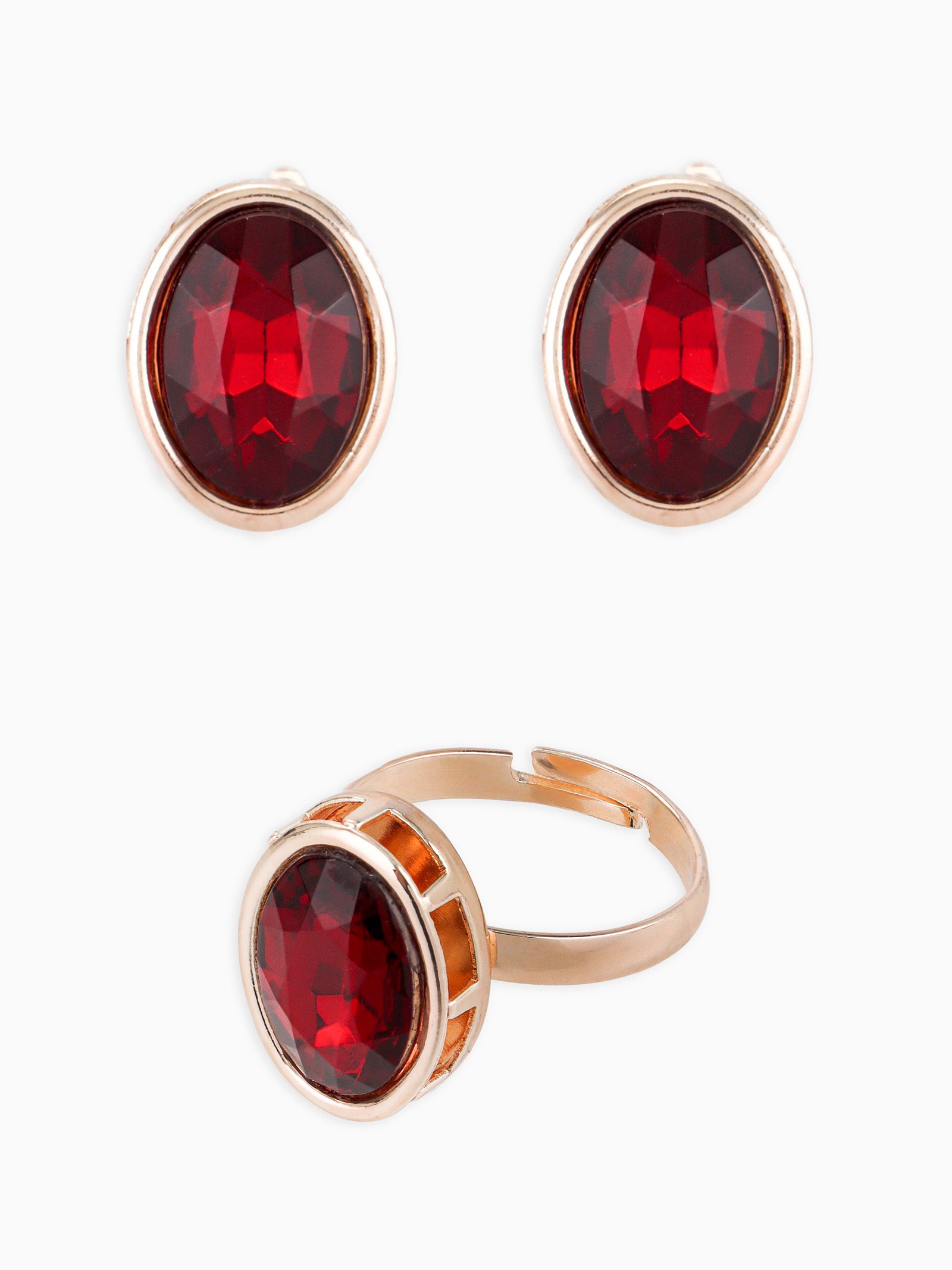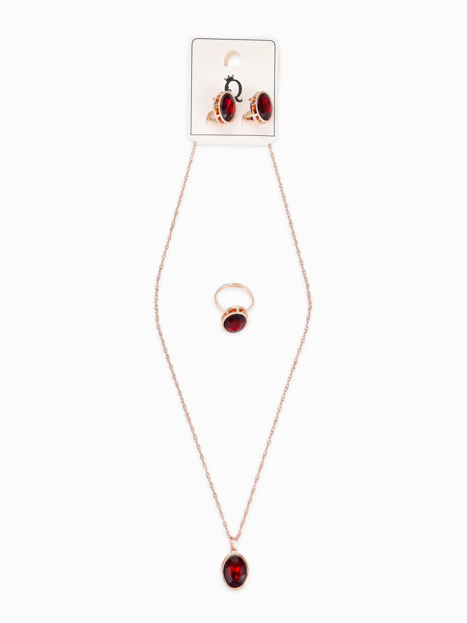 Гарнитур 3 предмета: серьги, кулон, кольцо безразмерное "Эдель" овал вытянутый, цвет красный в золоте, 45 см, 1.5x45x1 см., QF, Китай