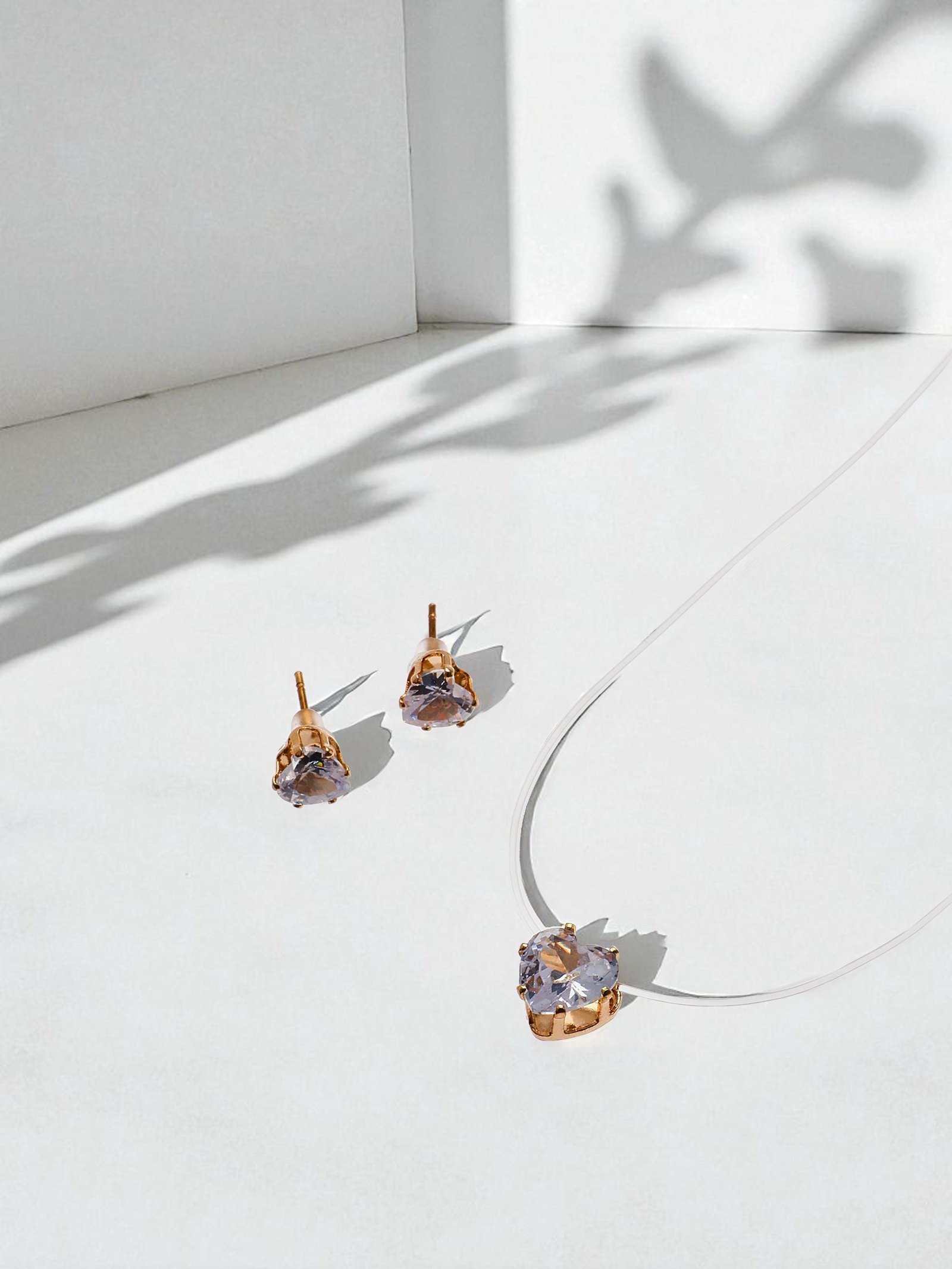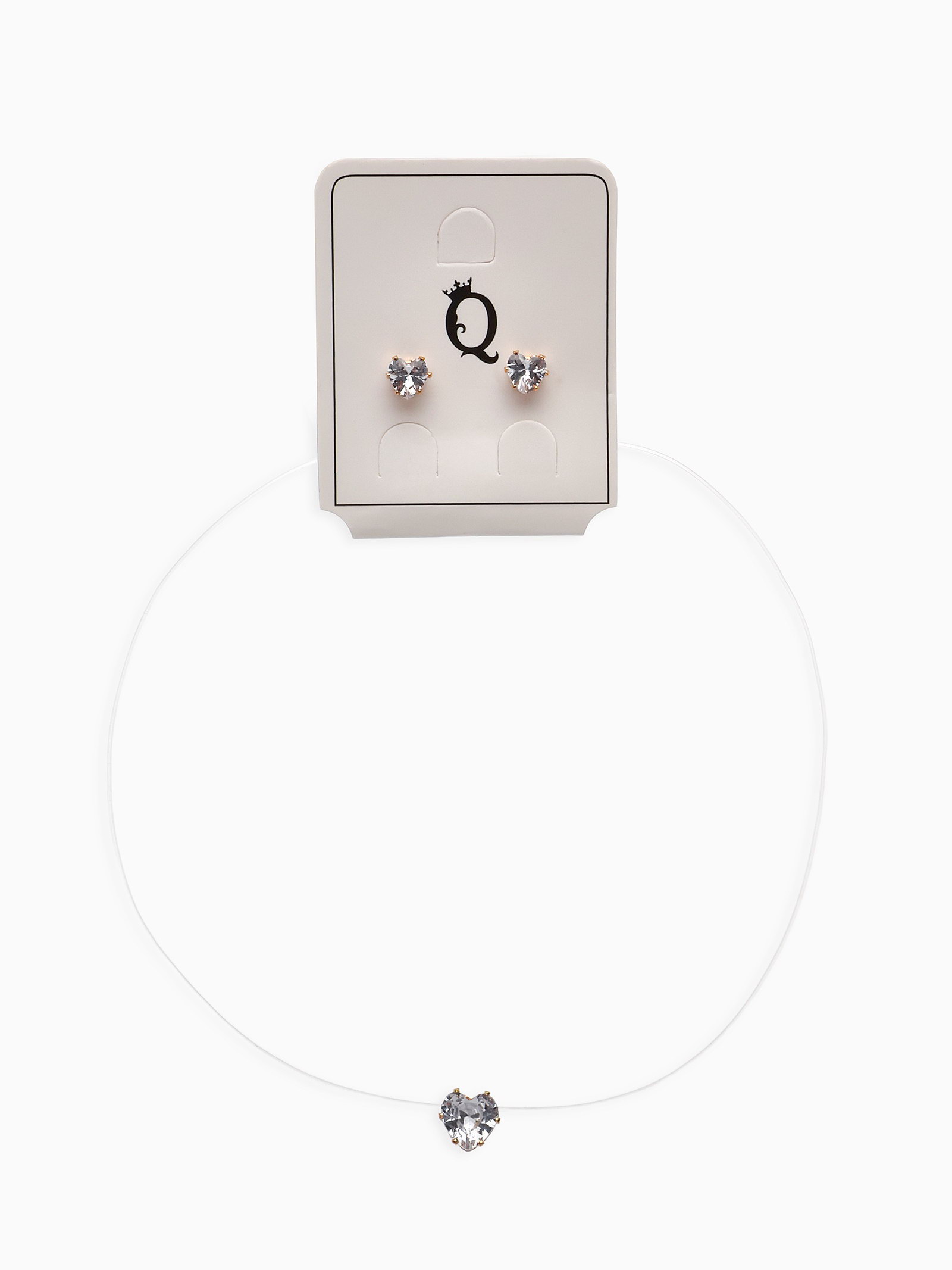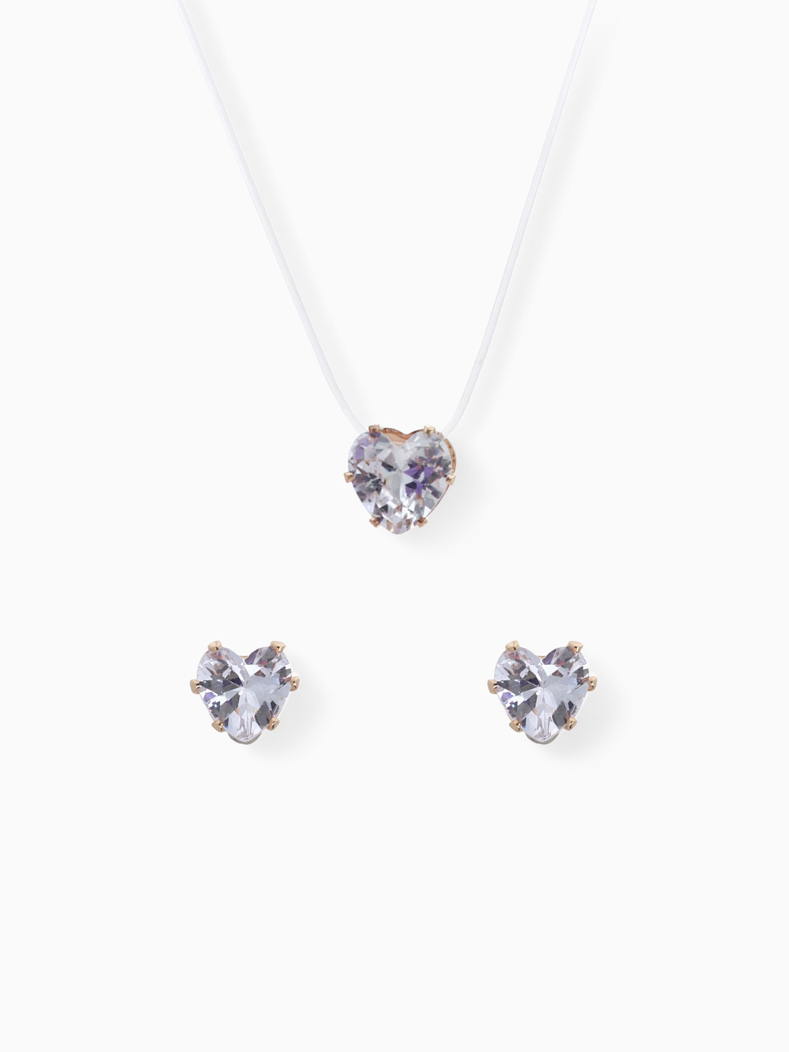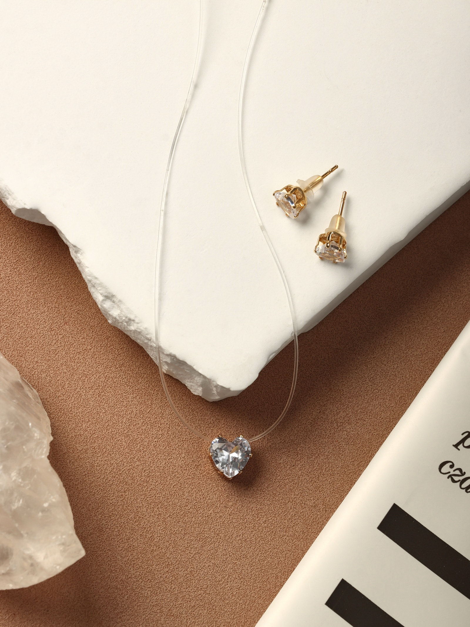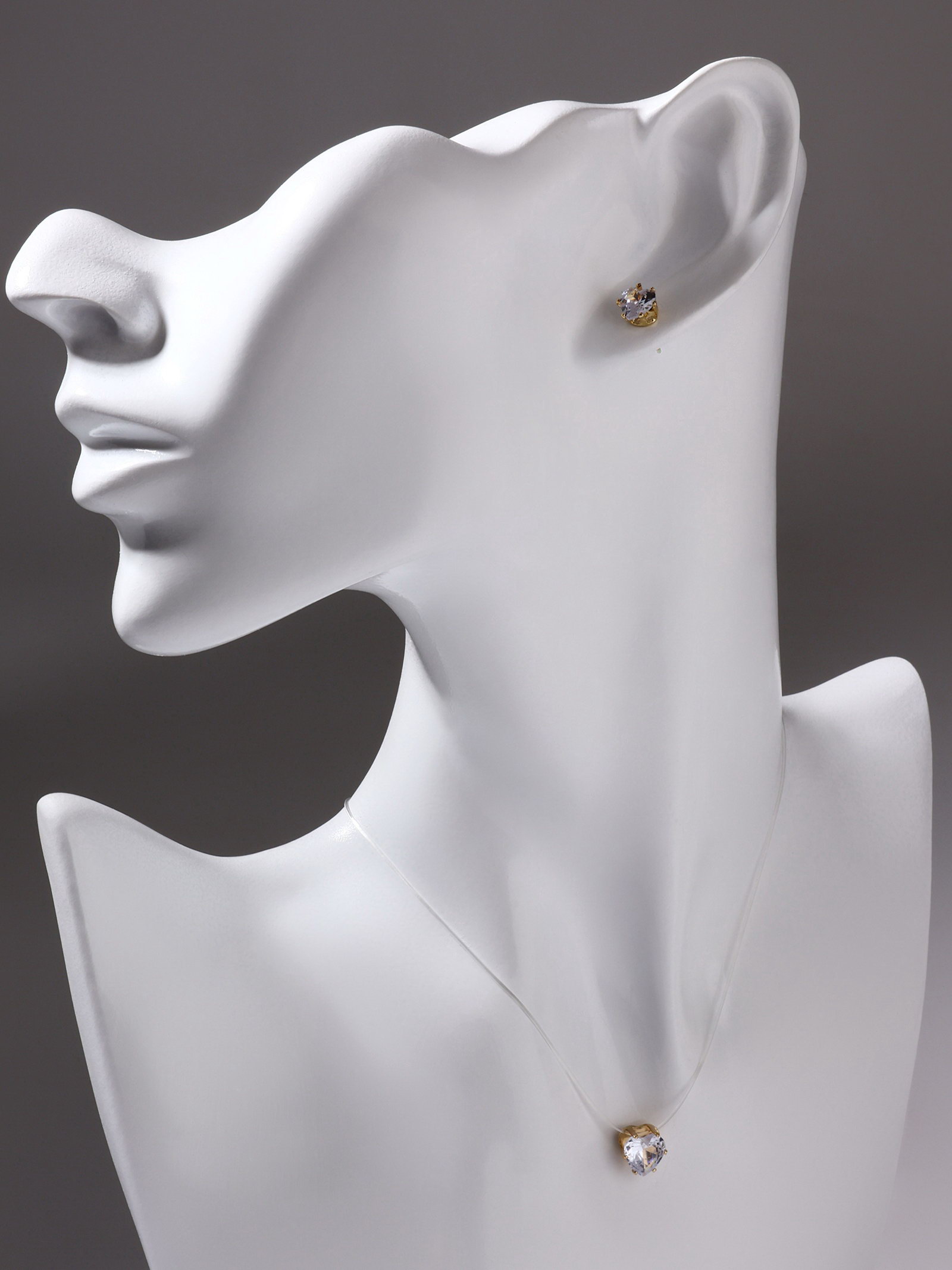 Гарнитур 2 предмета: кулон, серьги "На леске" сердечко, цвет белый в золоте, 30 см, 1x30x0.8 см., QF, Китай