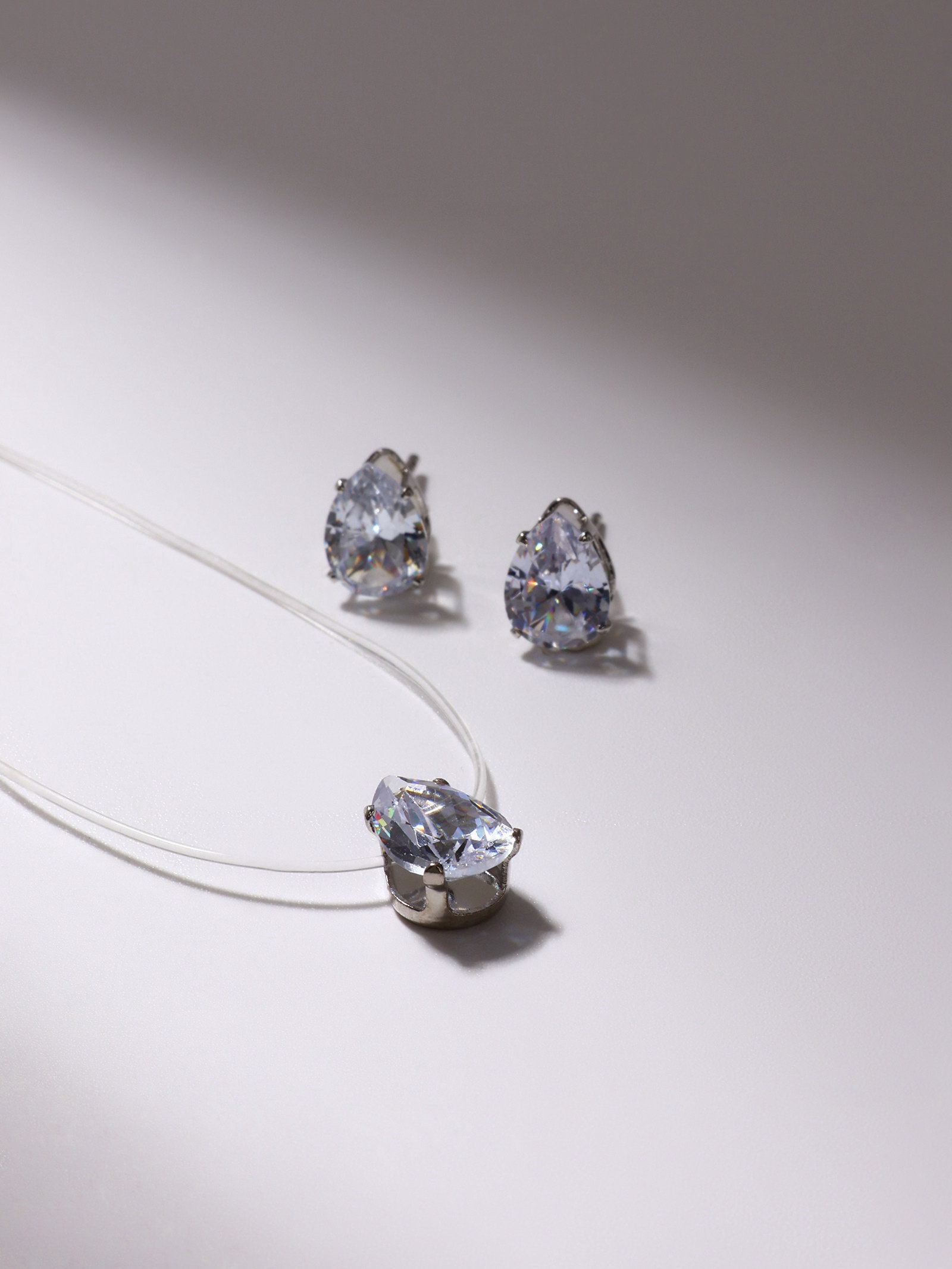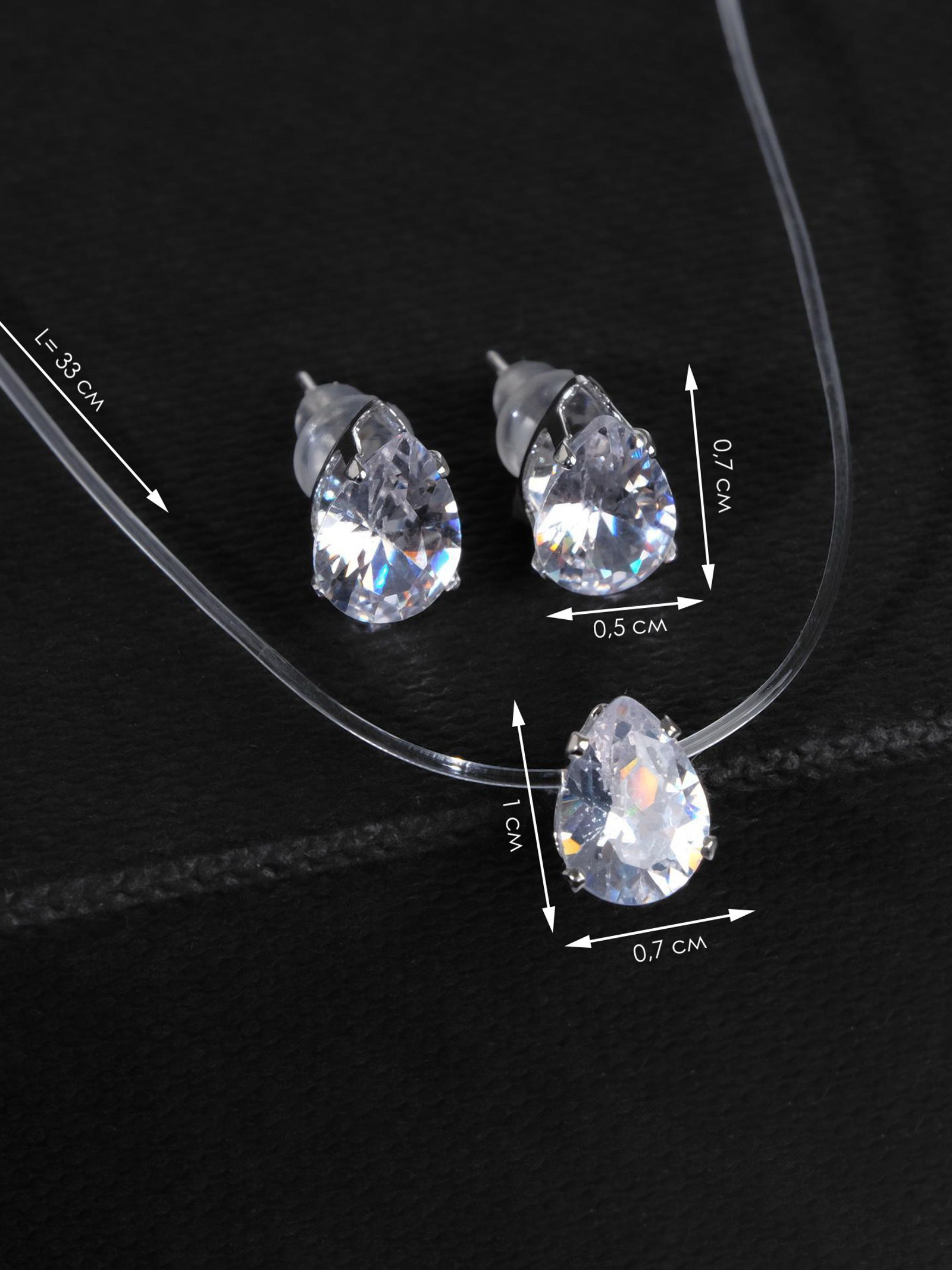 Гарнитур 2 предмета: кулон, серьги "На леске", капелька, белые в серебре, 30 см, 1x30x0.8 см., QF, Китай