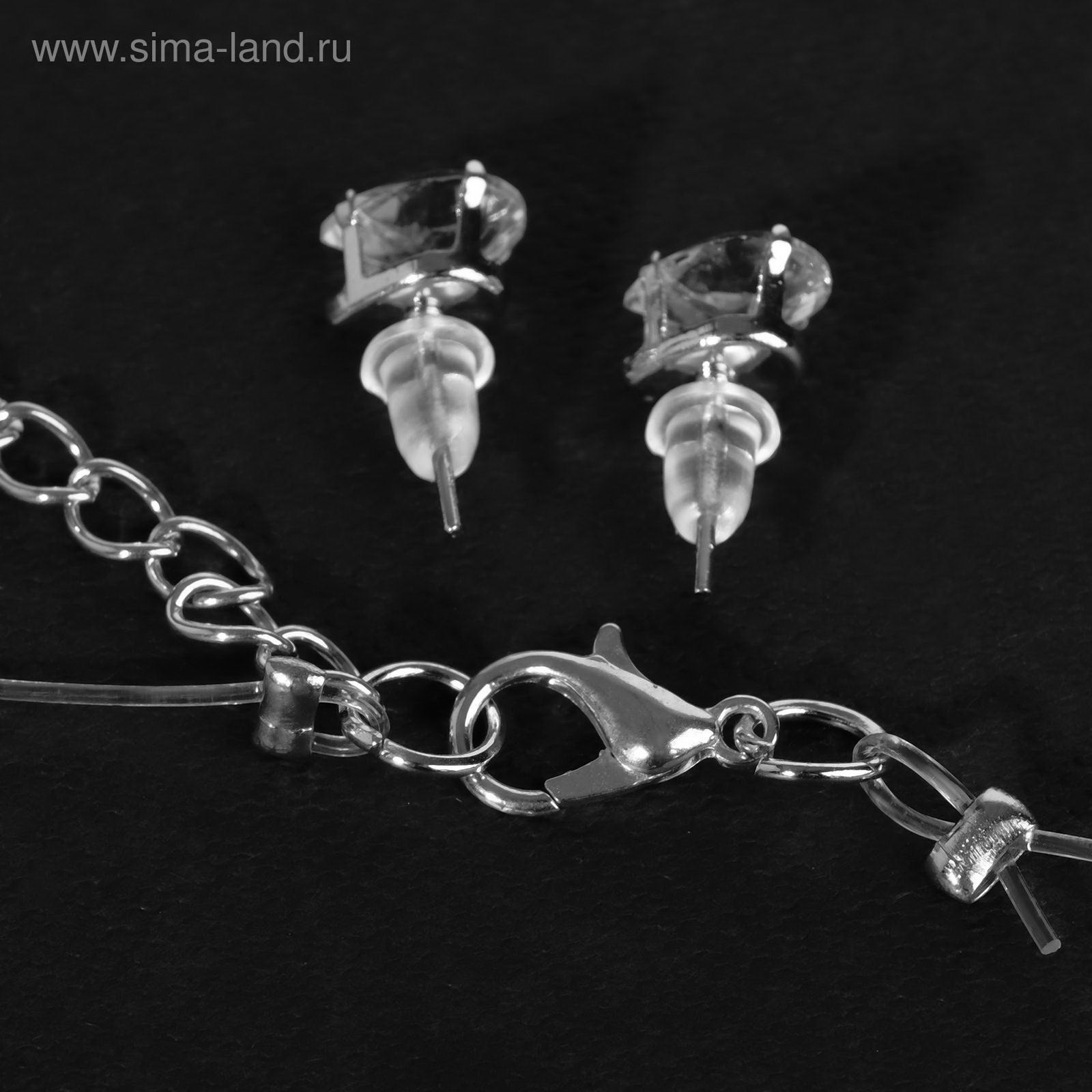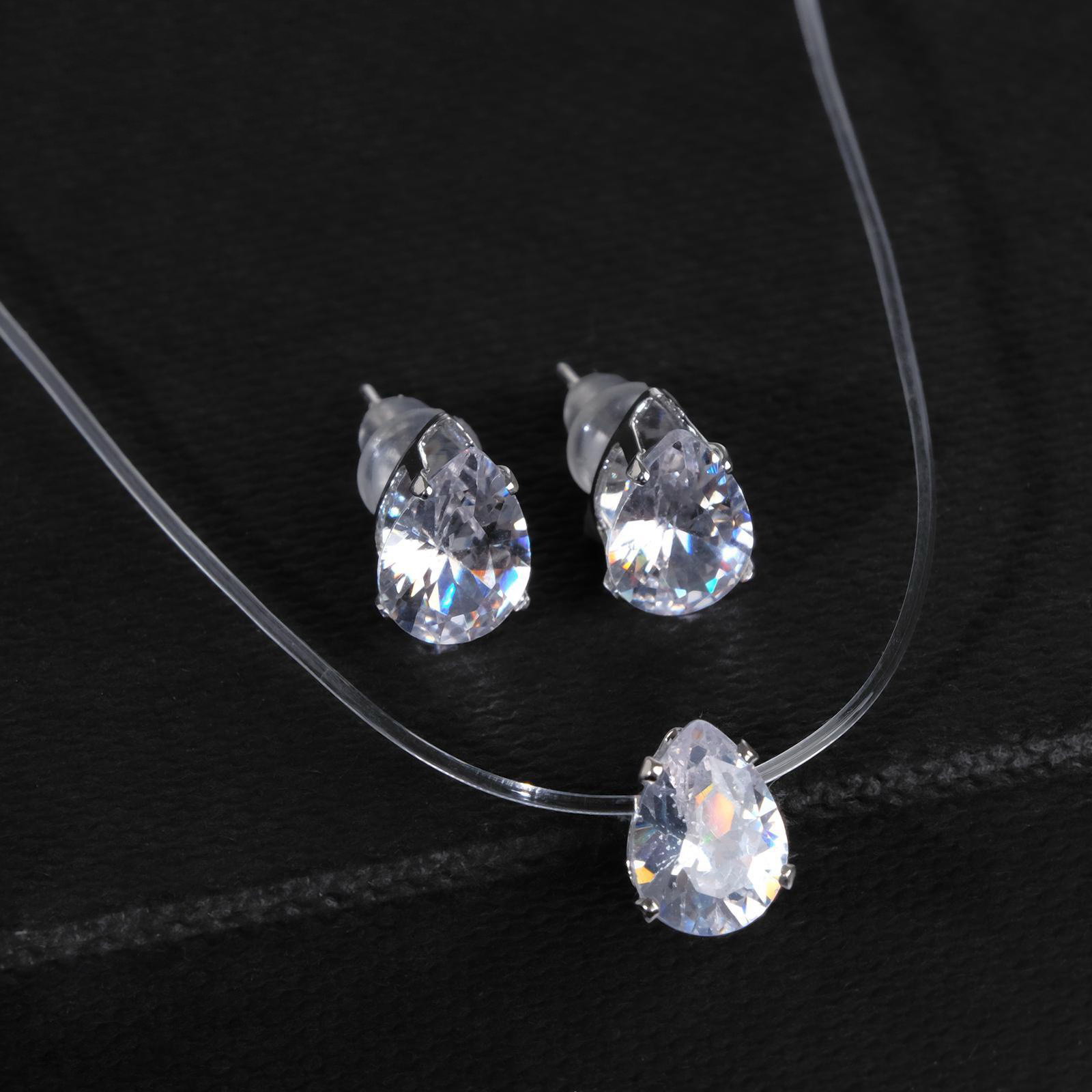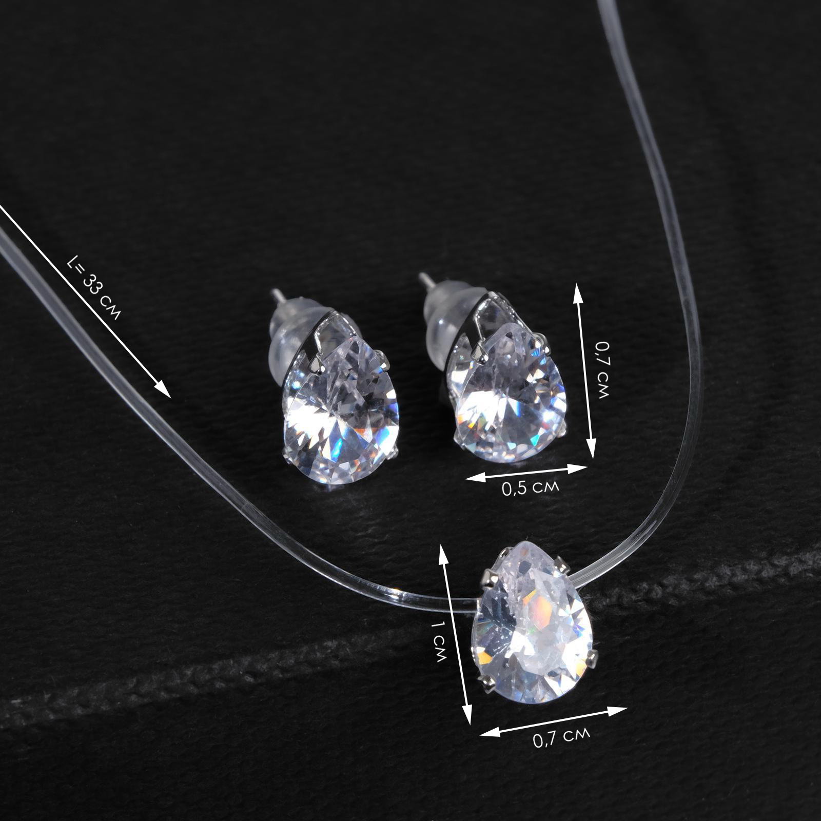 Гарнитур 2 предмета: кулон, серьги "На леске" капелька, цвет белый в серебре, 30 см, 1x30x0.8 см., QF, Китай