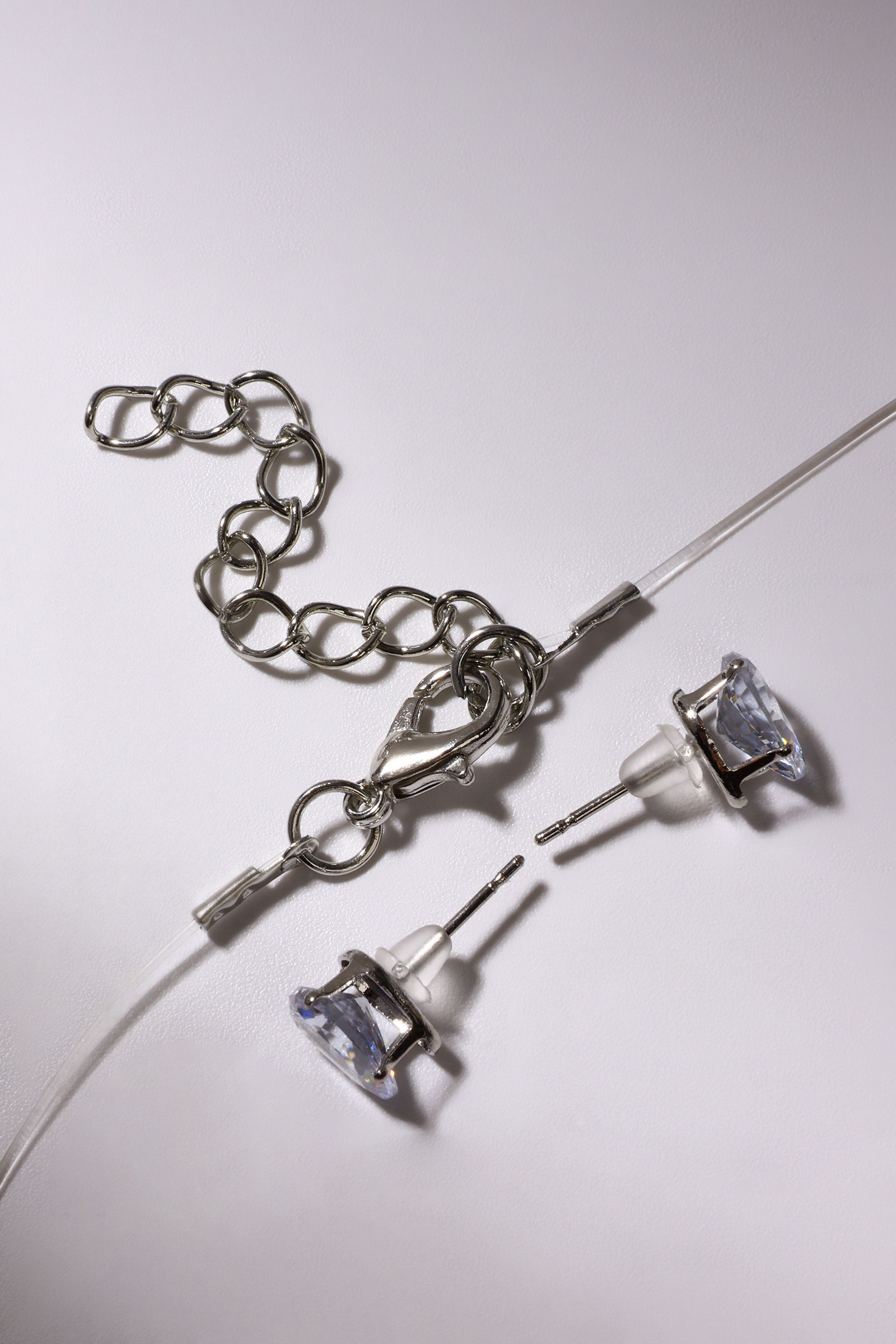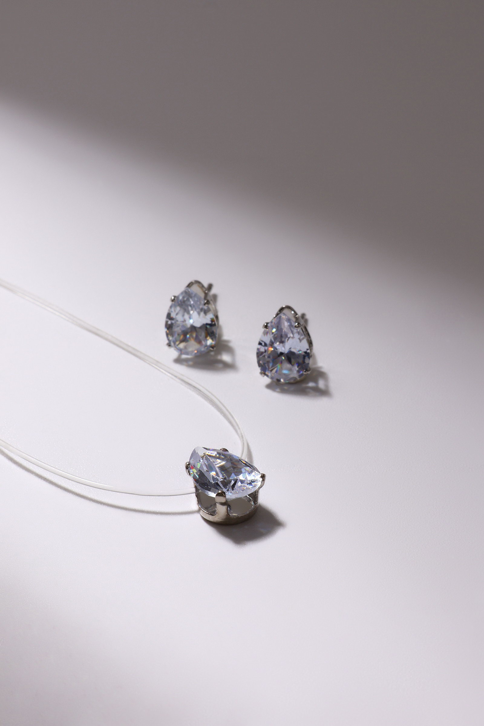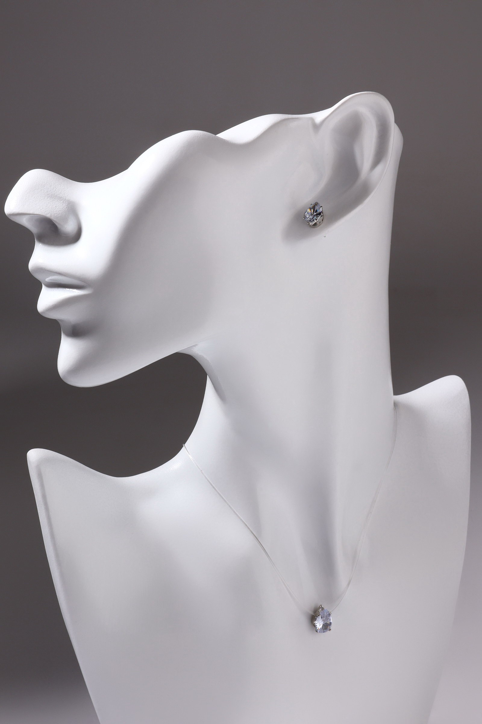Гарнитур 2 предмета: кулон, серьги "На леске" капелька, цвет белый в серебре, 30 см, 1x30x0.8 см., QF, Китай