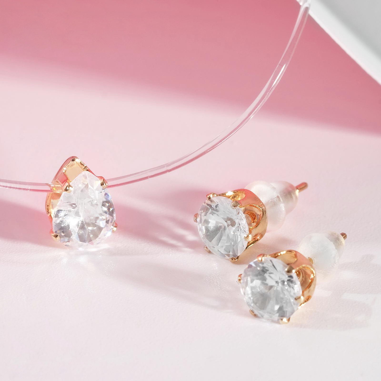 Гарнитур 2 предмета: кулон, серьги "На леске" капелька, цвет белый в золоте, 30 см, 1x33x0.8 см., QF, Китай