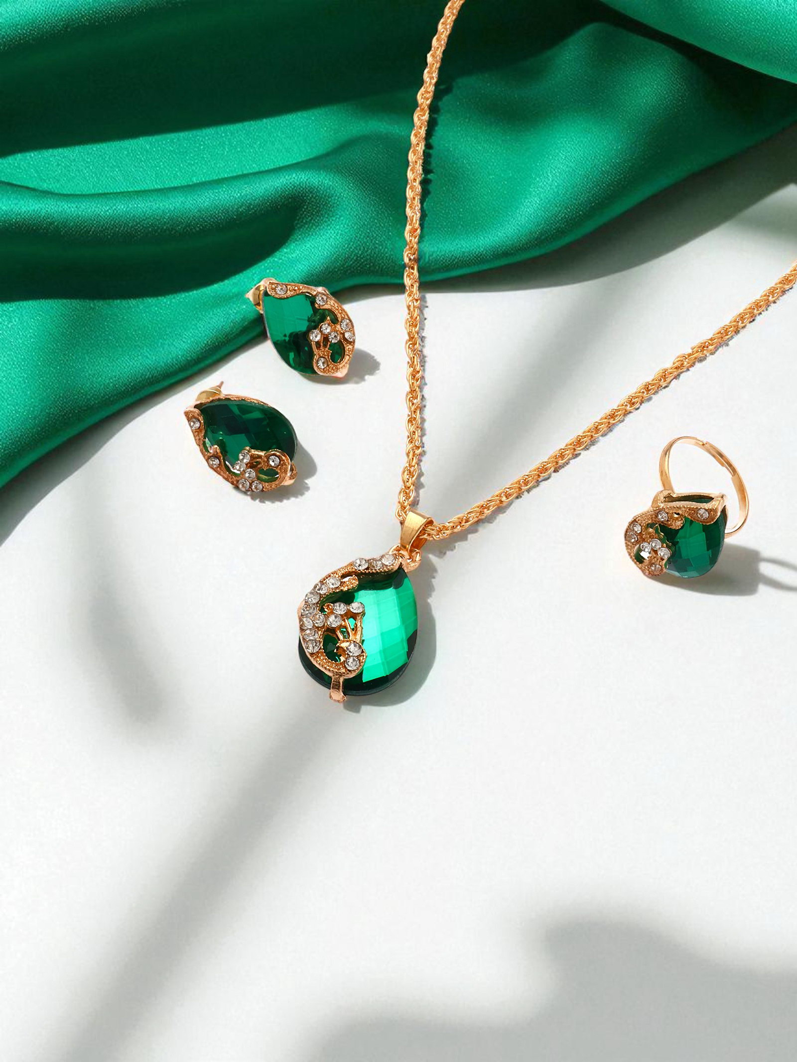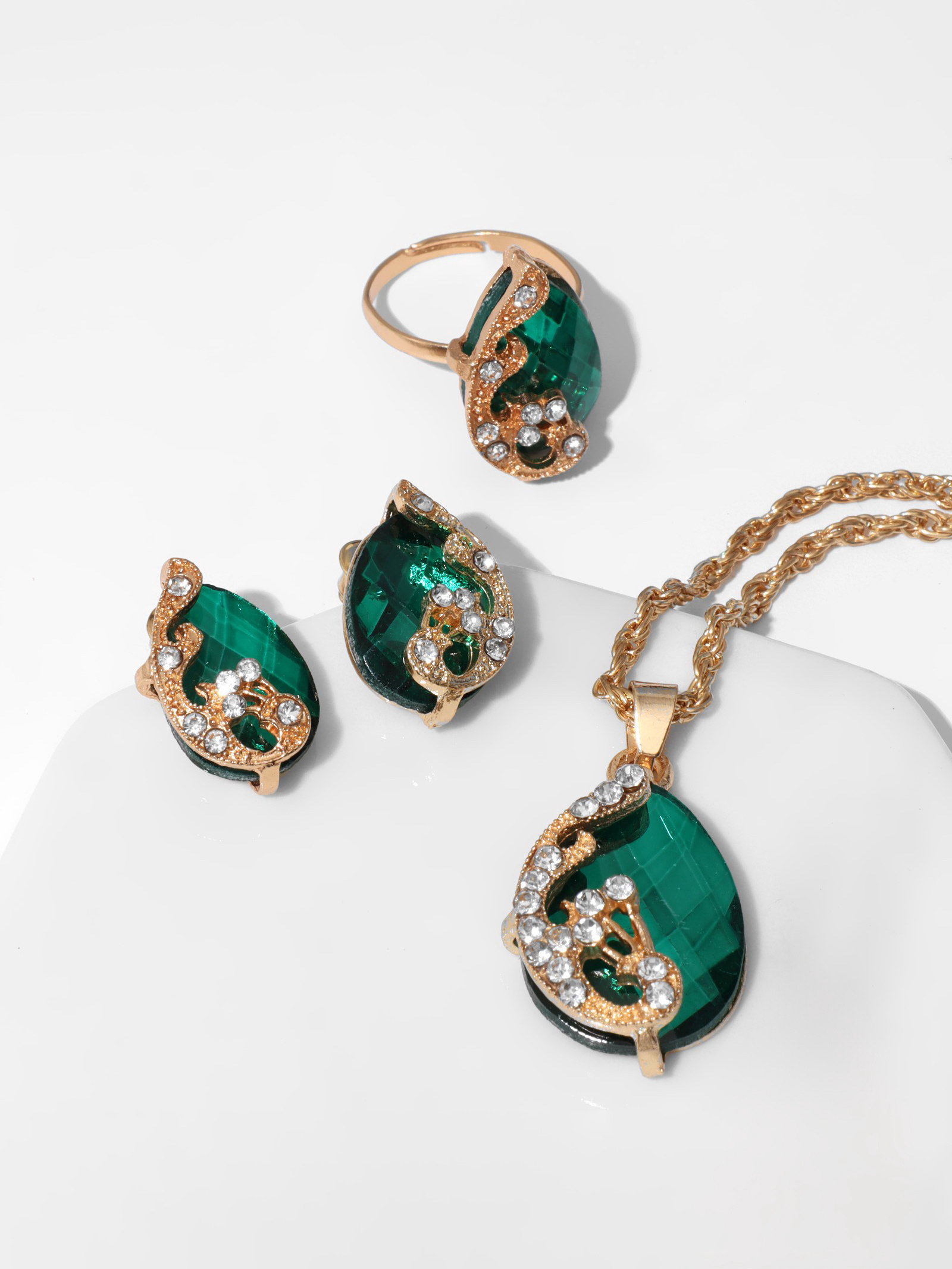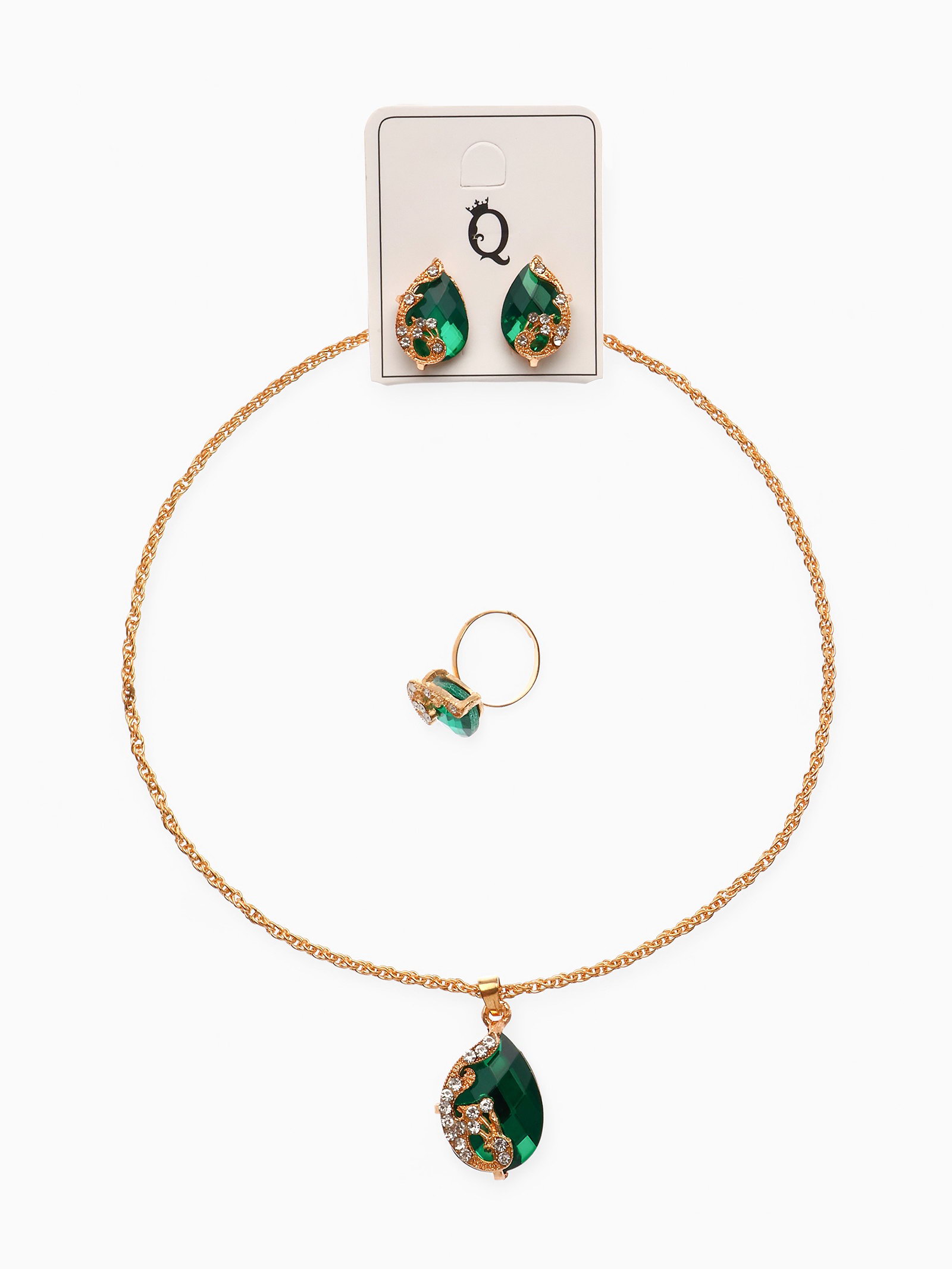 Вид: Кольцо, Кулон, Серьги Цвет: Белый, Зелёный Вставка/Подвеска: Стекло, Стразы Размер упаковки: 4.5 x 2.5 x 14.5 см. Тематика праздника: Универсальная тематика Материал основы: Металл Длина, см: 45 Количество нитей: 1 Основа для кулона: На цепочке Количество ярусов: 1 Вид застёжки: Застёжка пусет (гвоздик) Бижутерия с открыткой: Нет Для кого: Для женщины Набор: Да tnved: 7117190000 Тематика: Винтаж Состав набора: Серьги + Кулон + Кольцо В наборе, шт.: 3 Цвет фурнитуры: Золотой Размер: Безразмерное см Гарнитур из трёх предметов: серьги, кулон и кольцо это уникальный набор, который можно носить как вместе, создавая гармоничный образ, так и по отдельности, добавляя акцент в каждую деталь. Кольцо выполнено в безразмерном формате, что делает его универсальным и подходящим для любого женского пальца. Этот комплект сочетает в себе элегантность и практичность, идеально дополняя как повседневный стиль, так и вечерние наряды. Советы по уходу за бижутерией