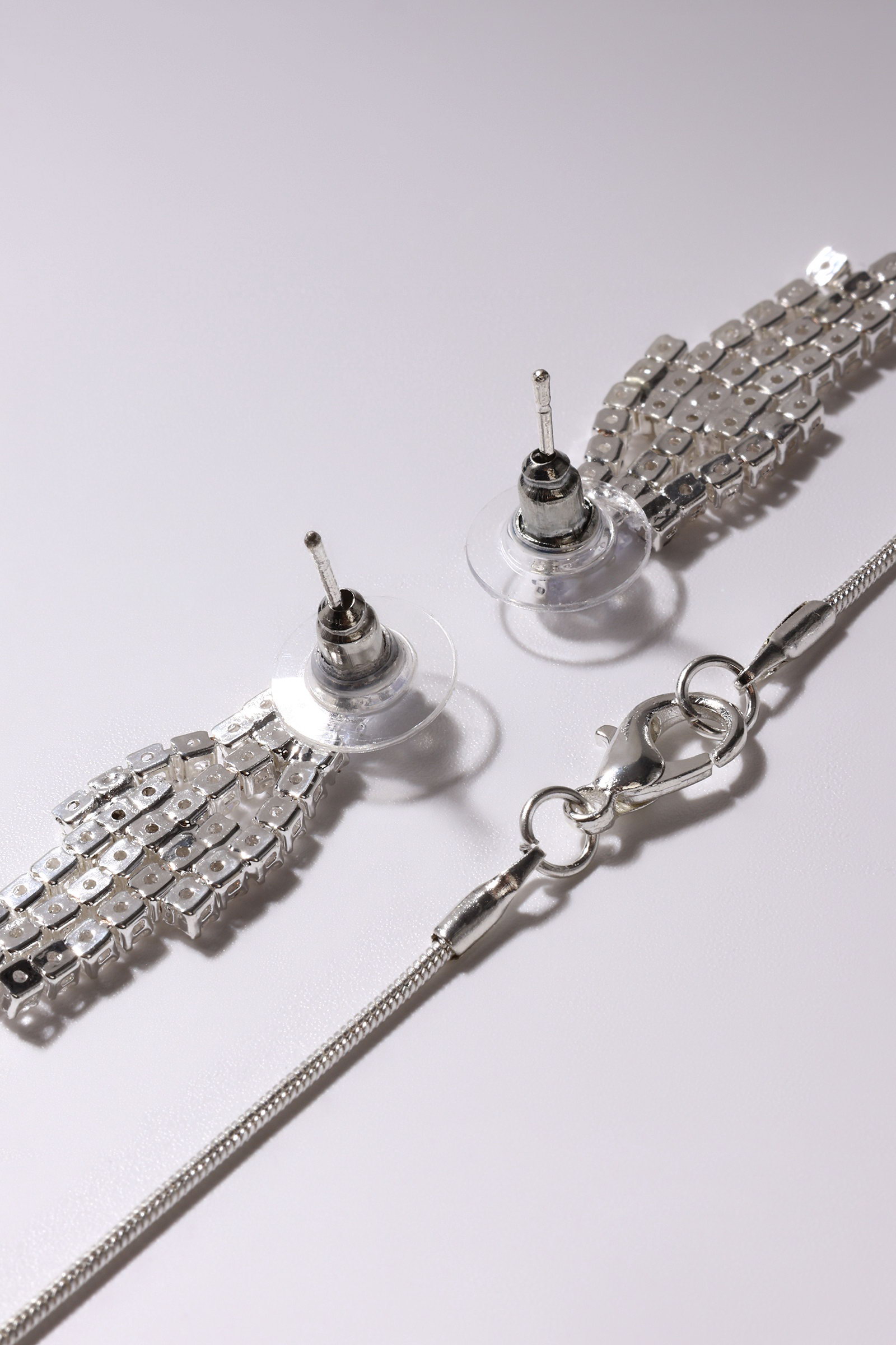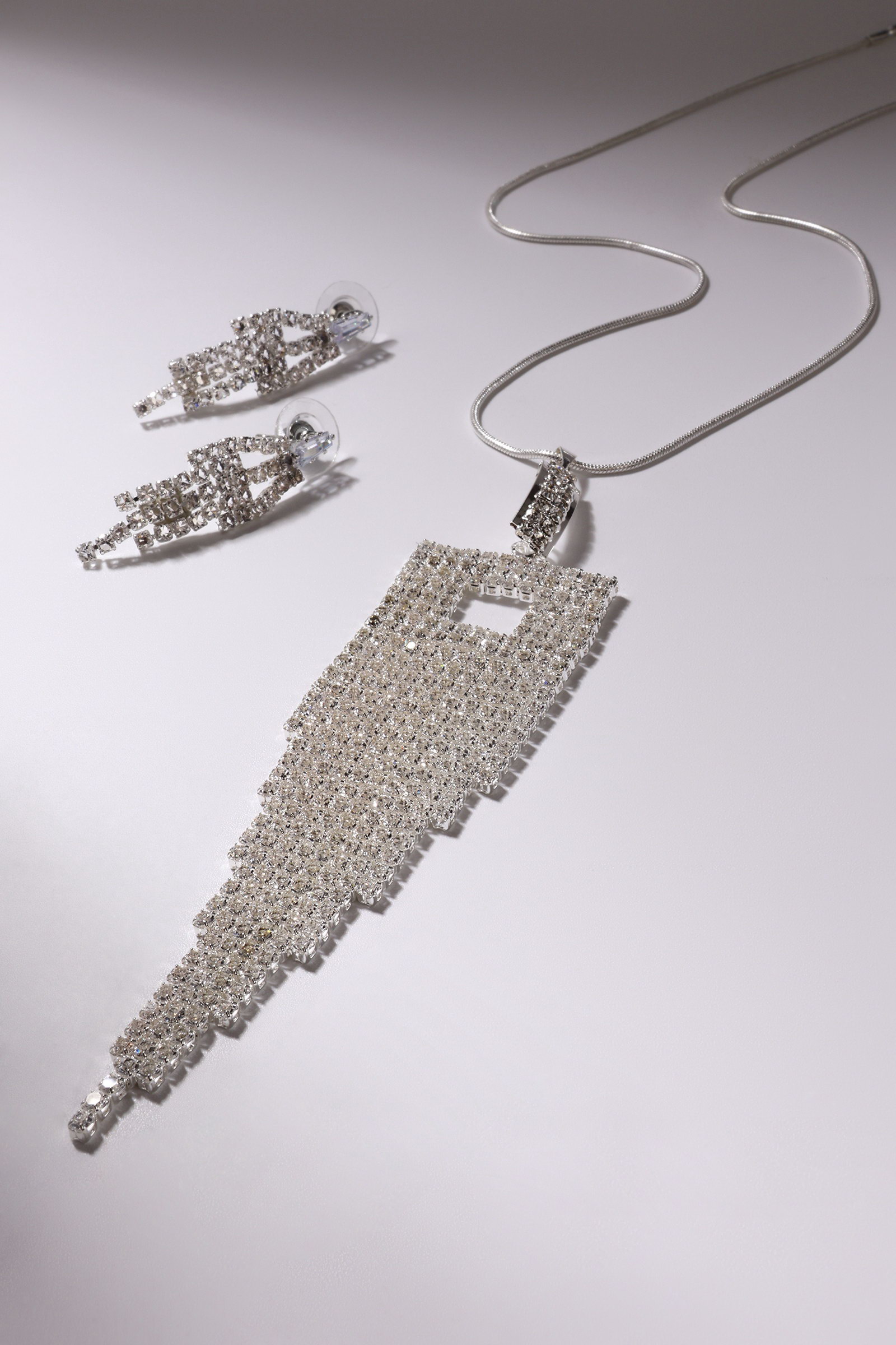 Гарнитур 2 предмета: кулон, серьги "Водопад", квадрат, белые в серебре, 11x40x4 см., QF, Китай