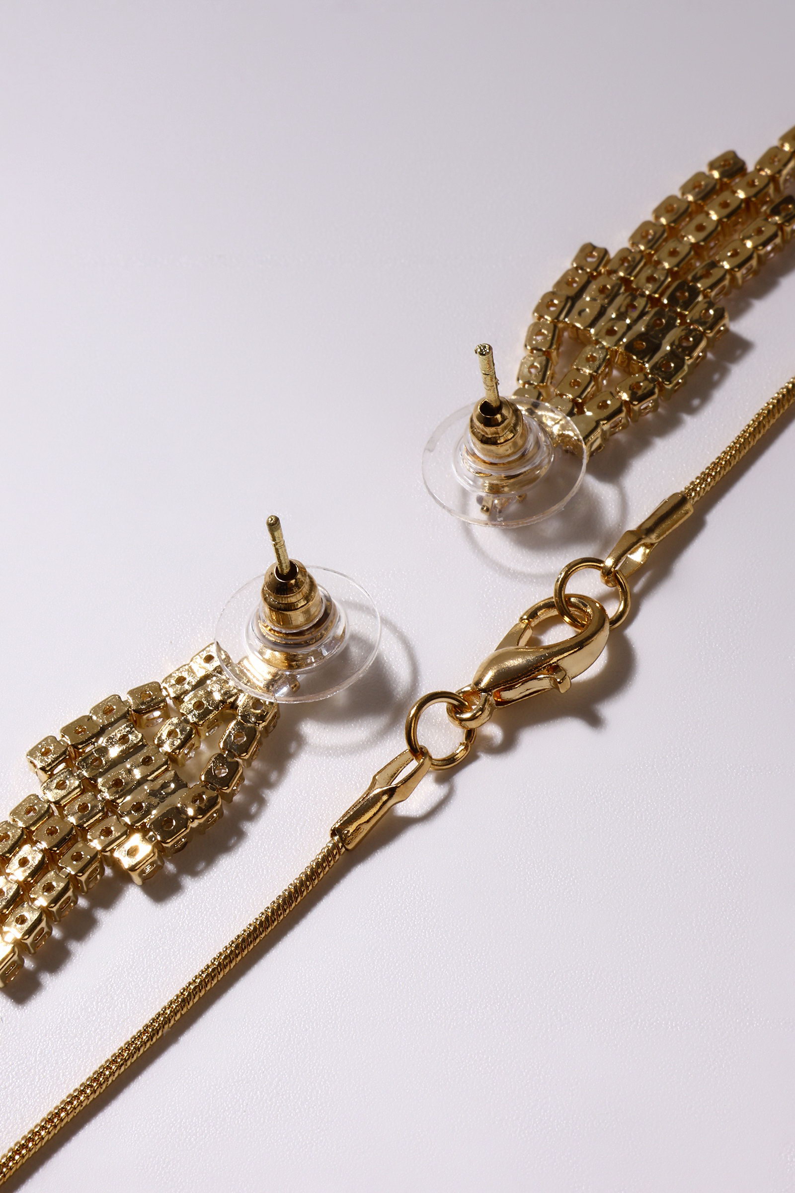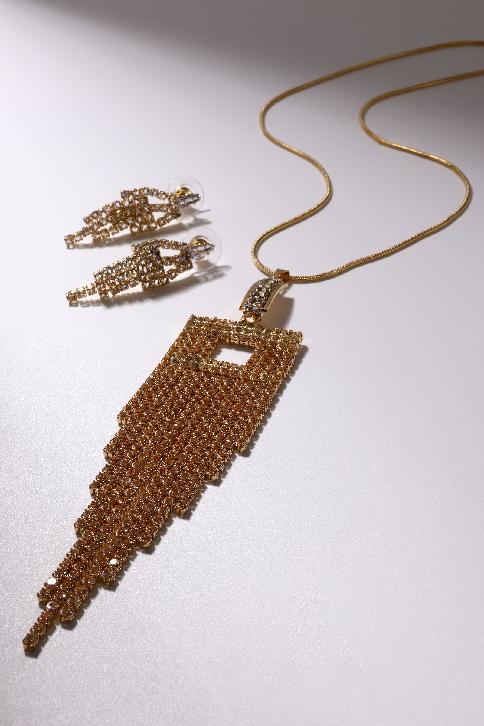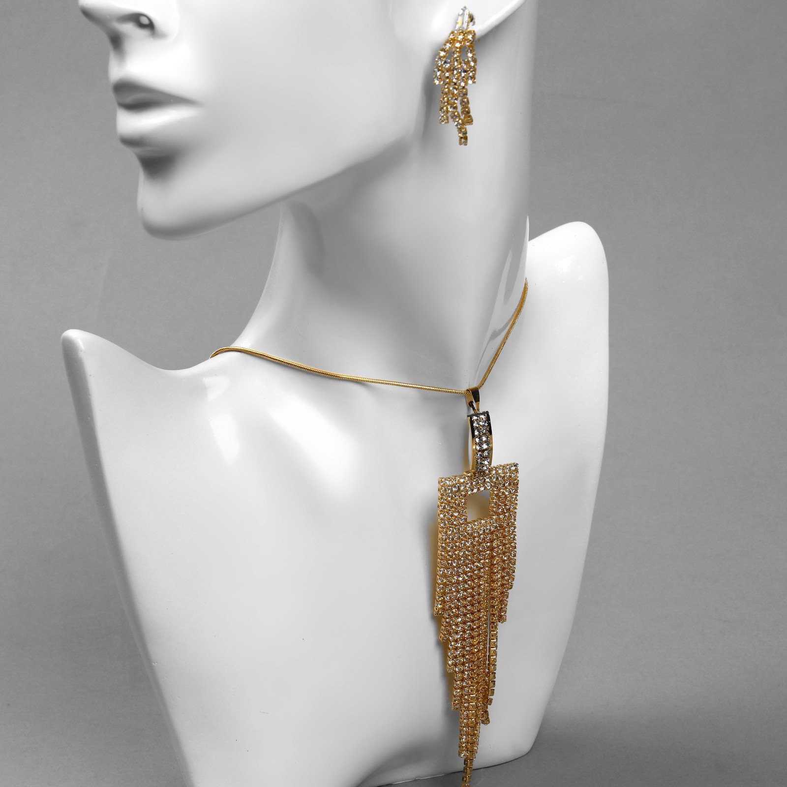Гарнитур 2 предмета: кулон, серьги "Водопад" квадрат, цвет белый в золоте, 11x40x4 см., QF, Китай