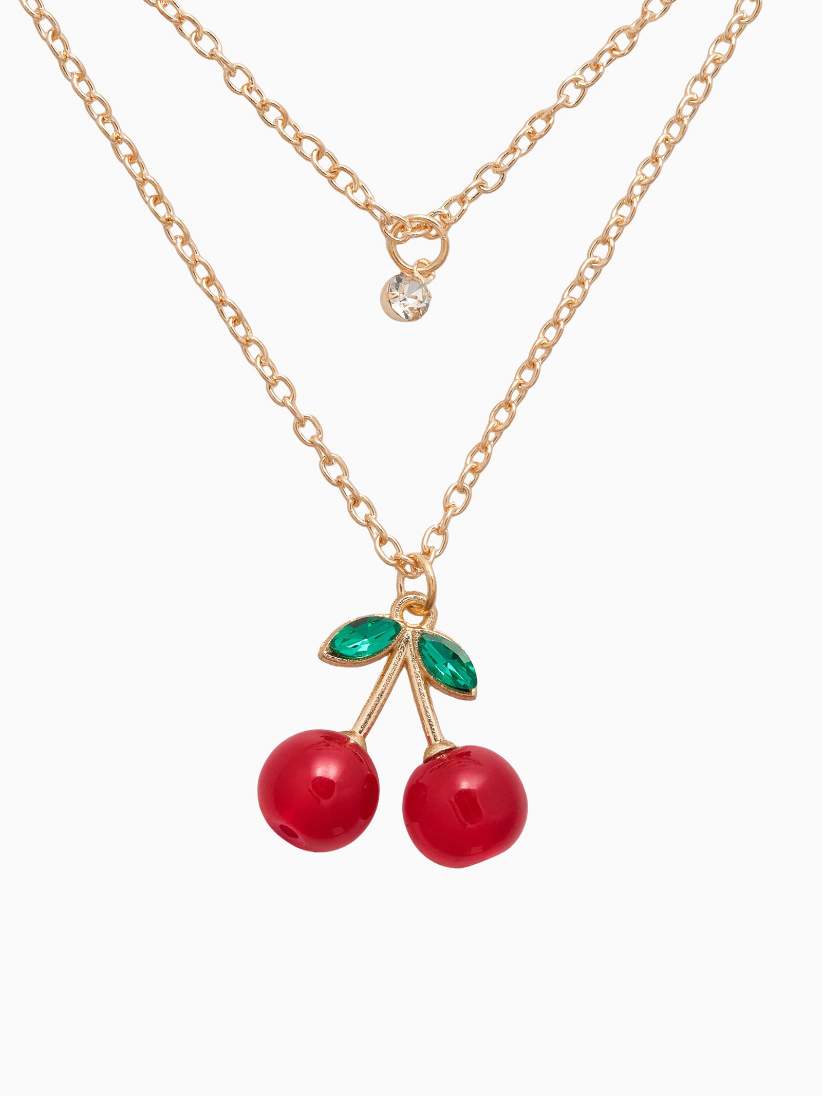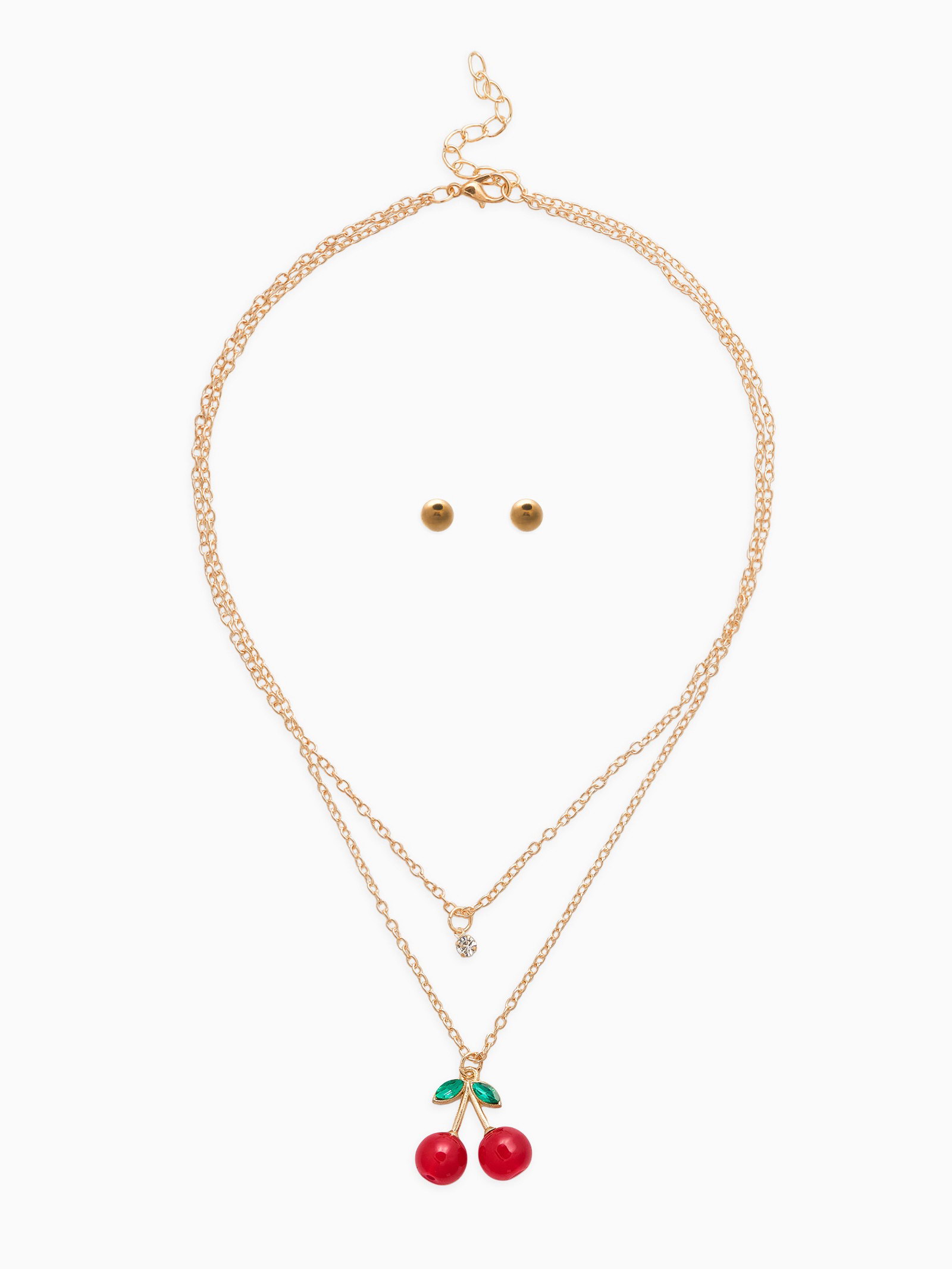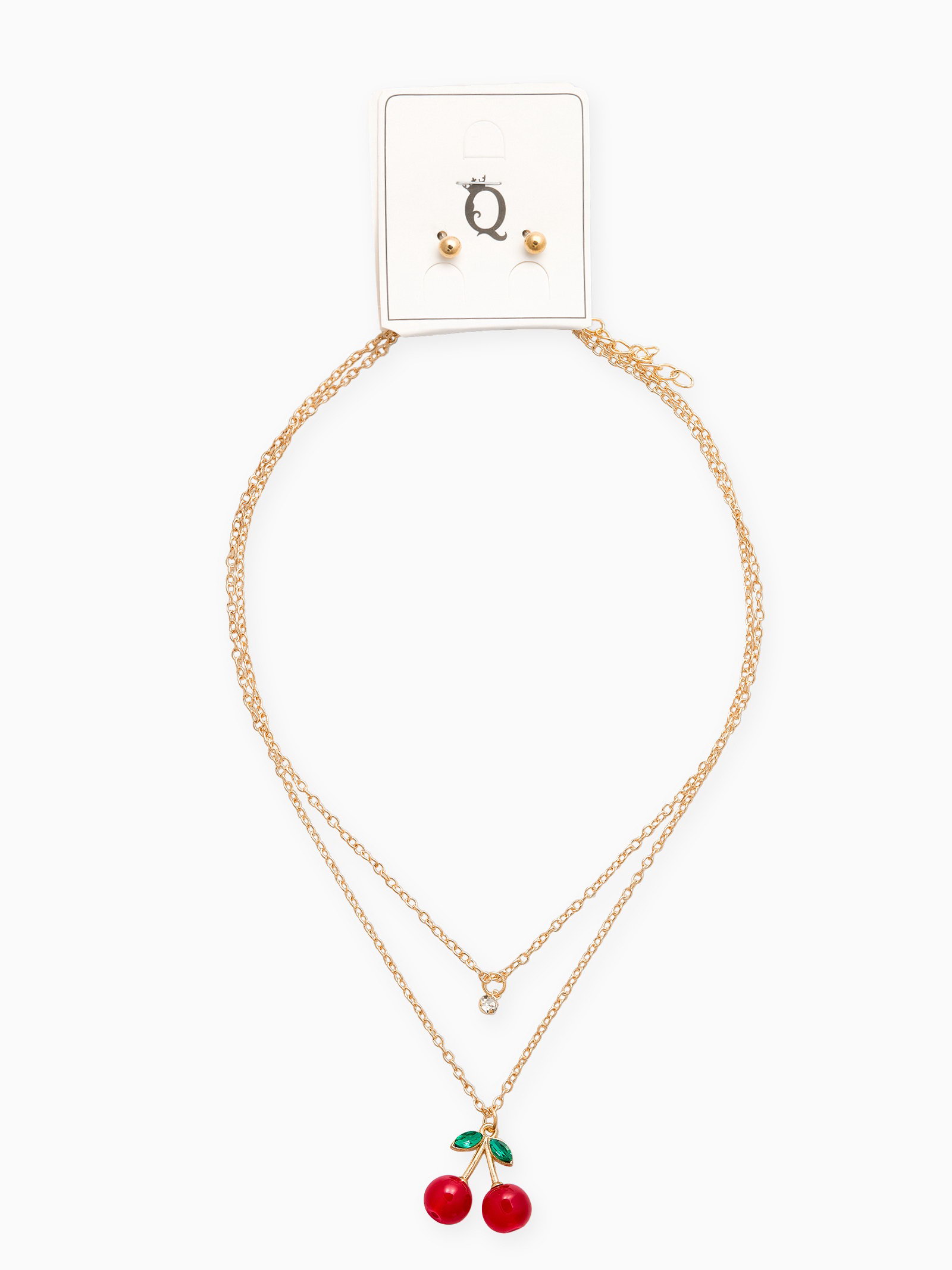 Набор 2 предмета: пуссеты, кулон "Вишенка со стразинкой", 50+40 см, d=4, красный в золоте, 2x45x0.8 см., QF, Китай