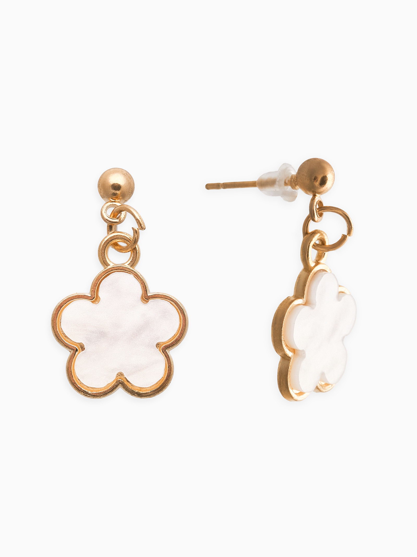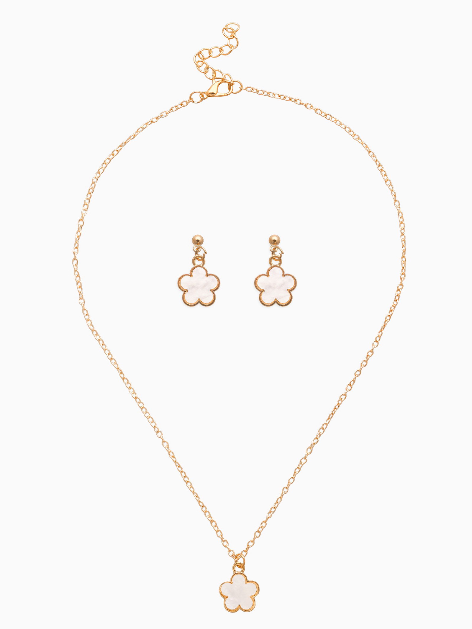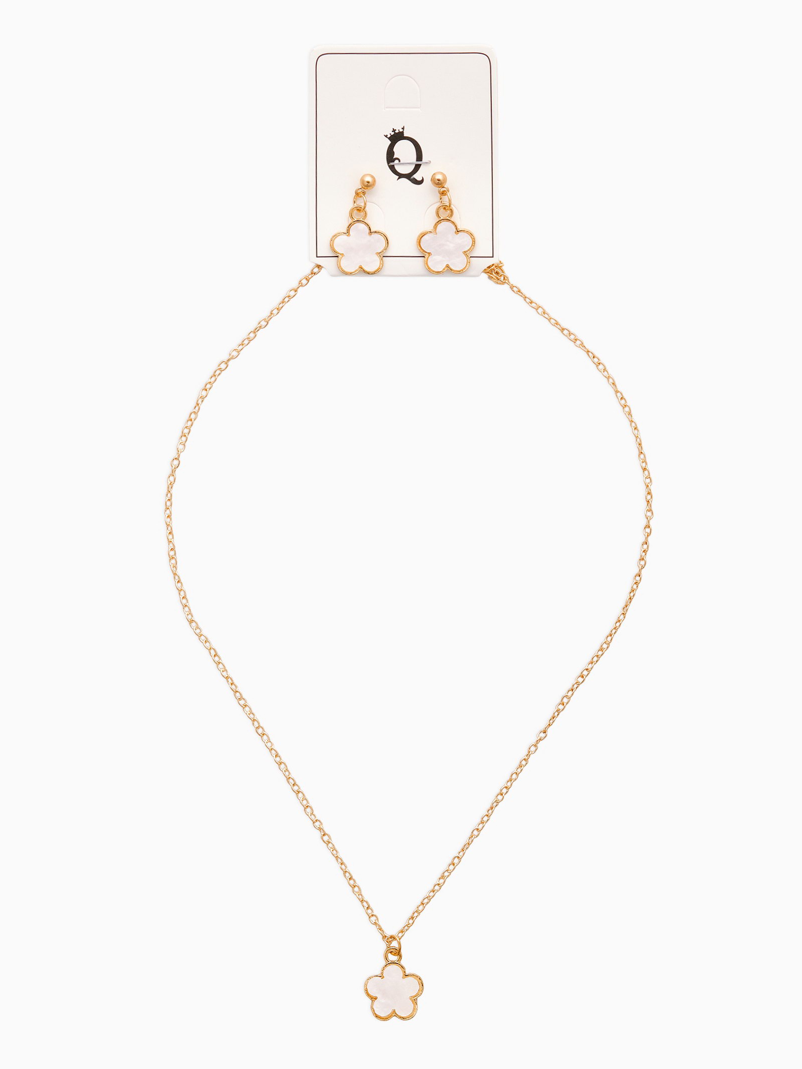 Набор 2 предмета: серьги, кулон "Цветочки", белый в золоте 44+удл., 1.5x44x0.4 см., QF, Китай