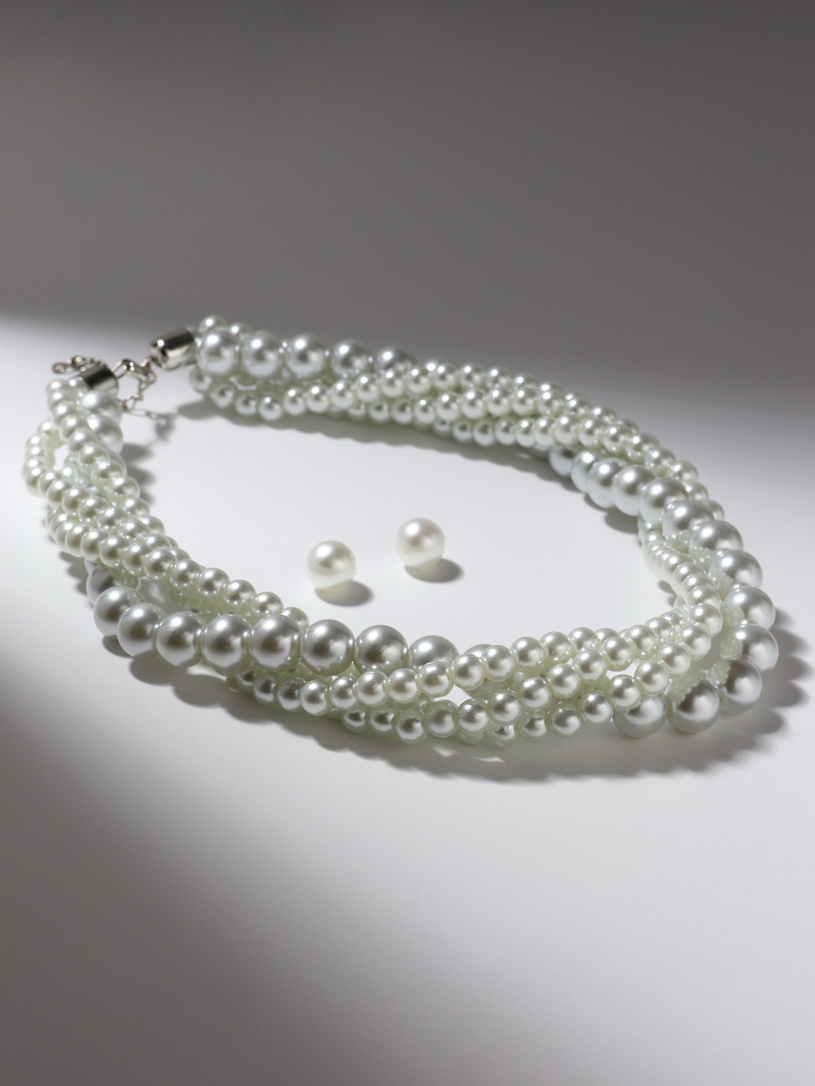 Набор 2 предмета: серьги, шар d=1, бусы "Жемчужный жгут", цвет белый, 45 см, 1.5x45x1 см., QF, Китай