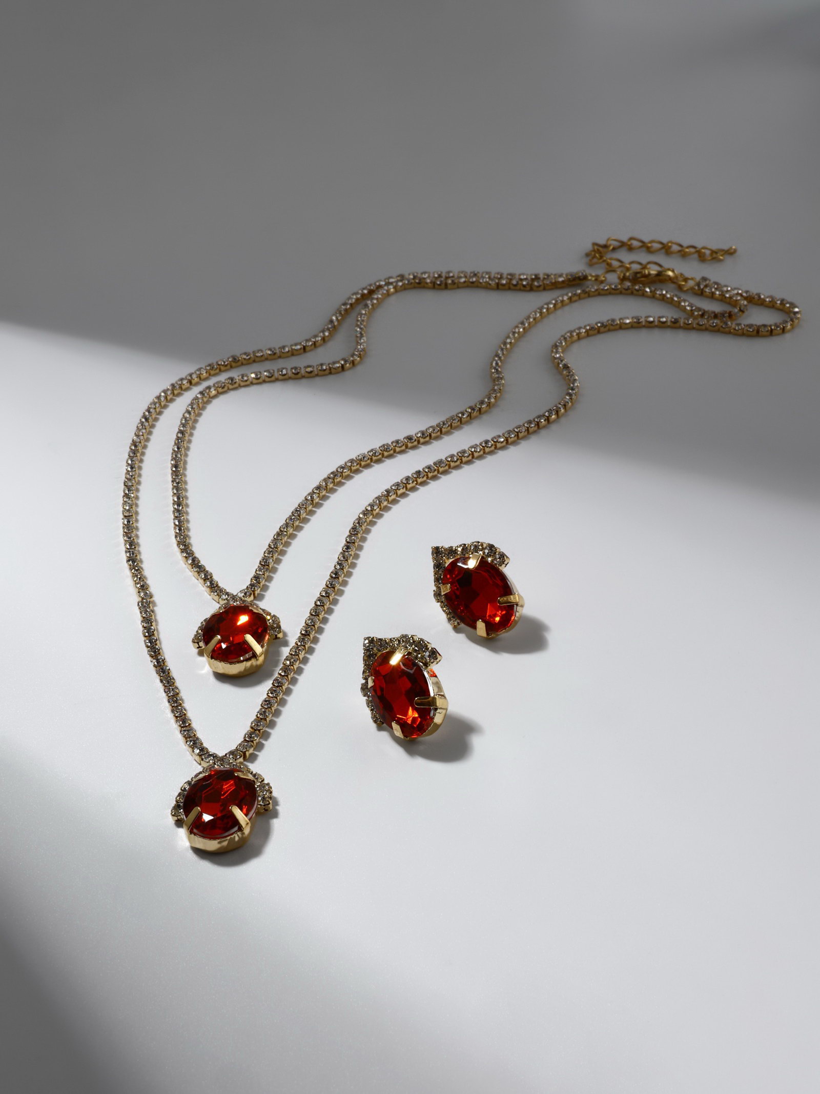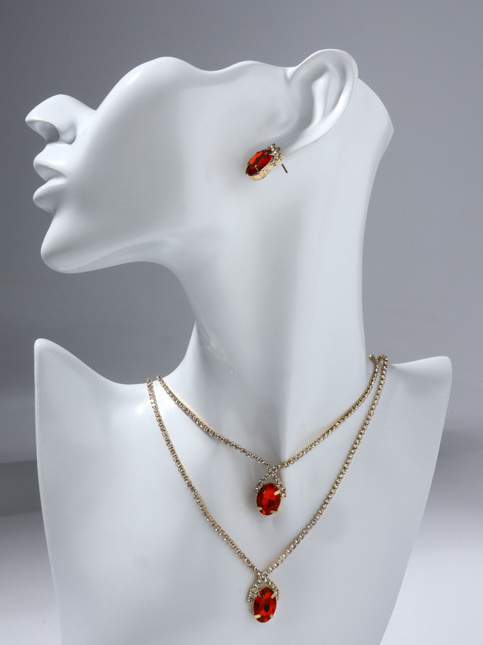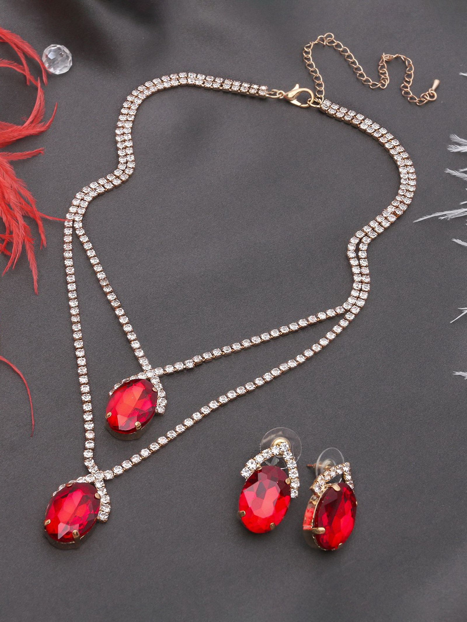Набор 2 предмета: серьги, колье "Жаклин" дуэт, овал, цвет бело-красный в золоте, 45 см, 5.5x45x2.5 см., QF, Китай