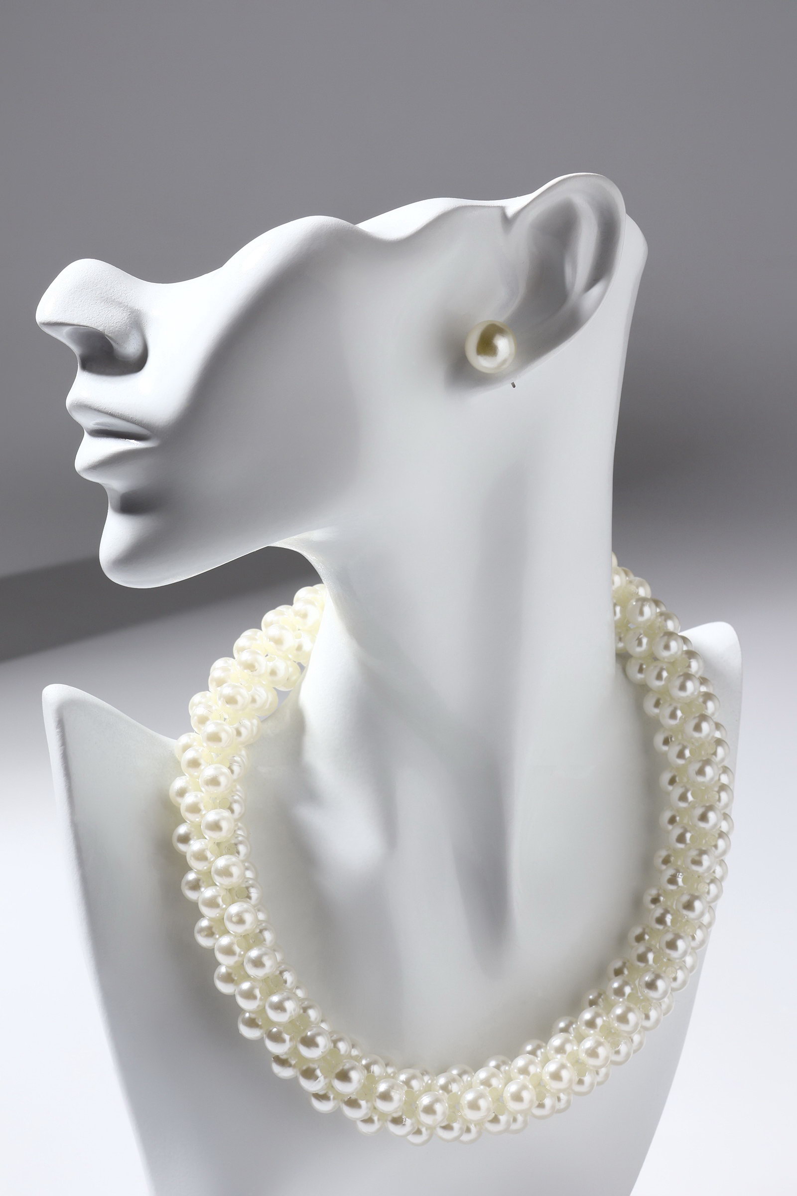 Набор 2 предмета: серьги, колье "Жизель" сплошная нить, цвет белый, 42 см, 2x42x2 см., QF, Китай