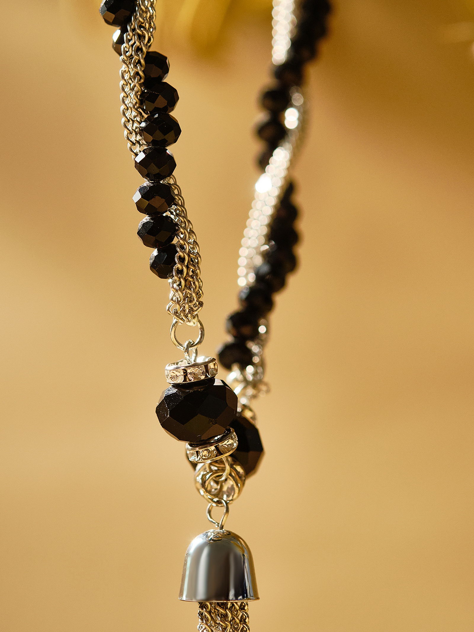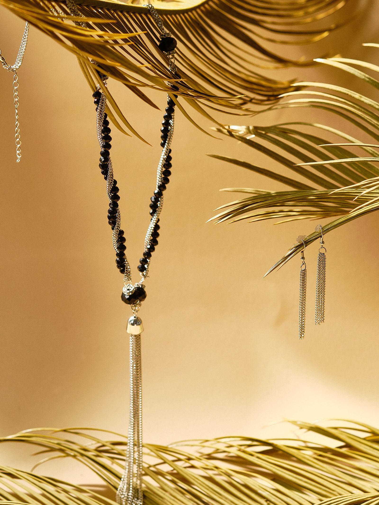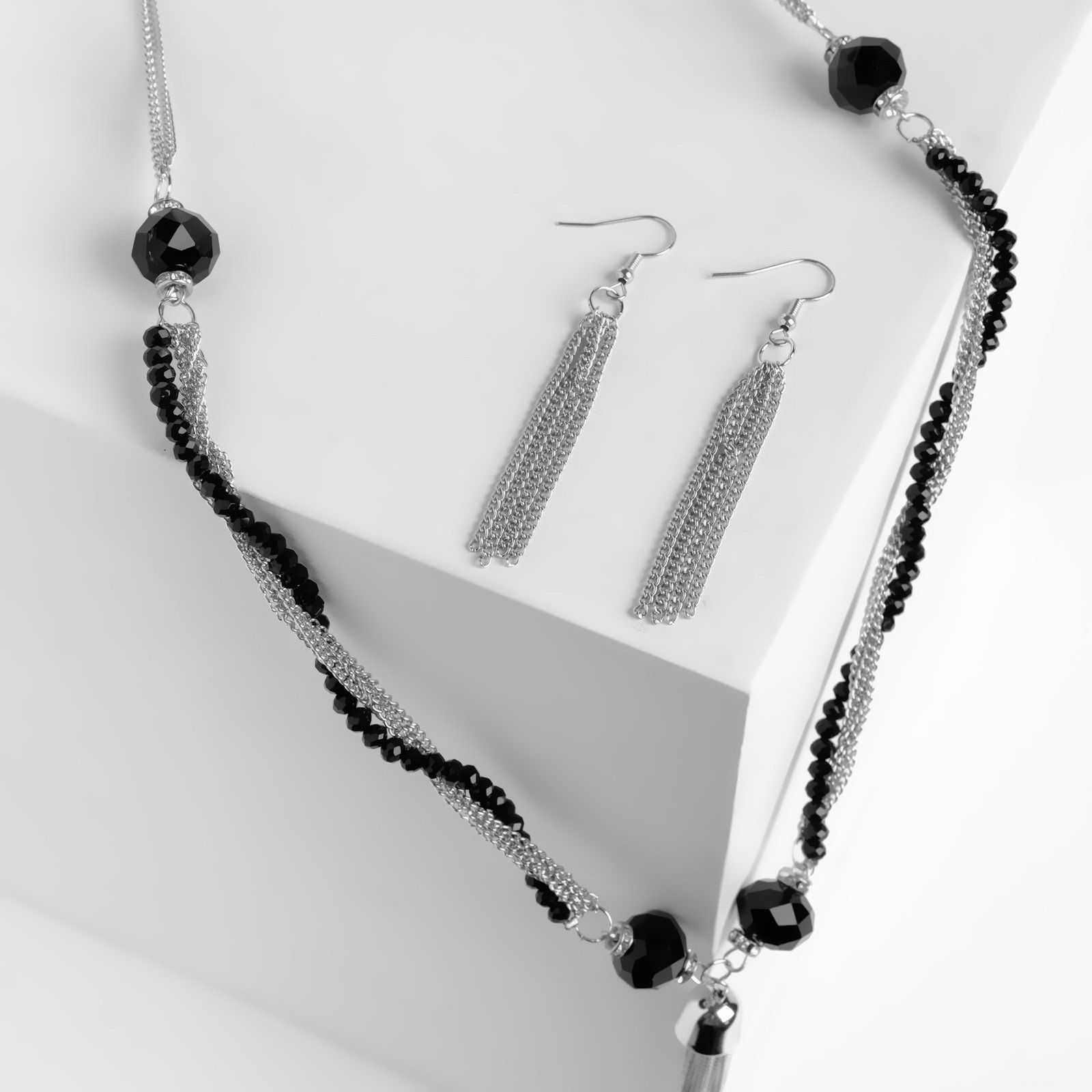 Набор 2 предмета: серьги, бусы "Унисон" накрученность, чёрный в серебре, 60 см, 17x60x7 см., QF, Китай