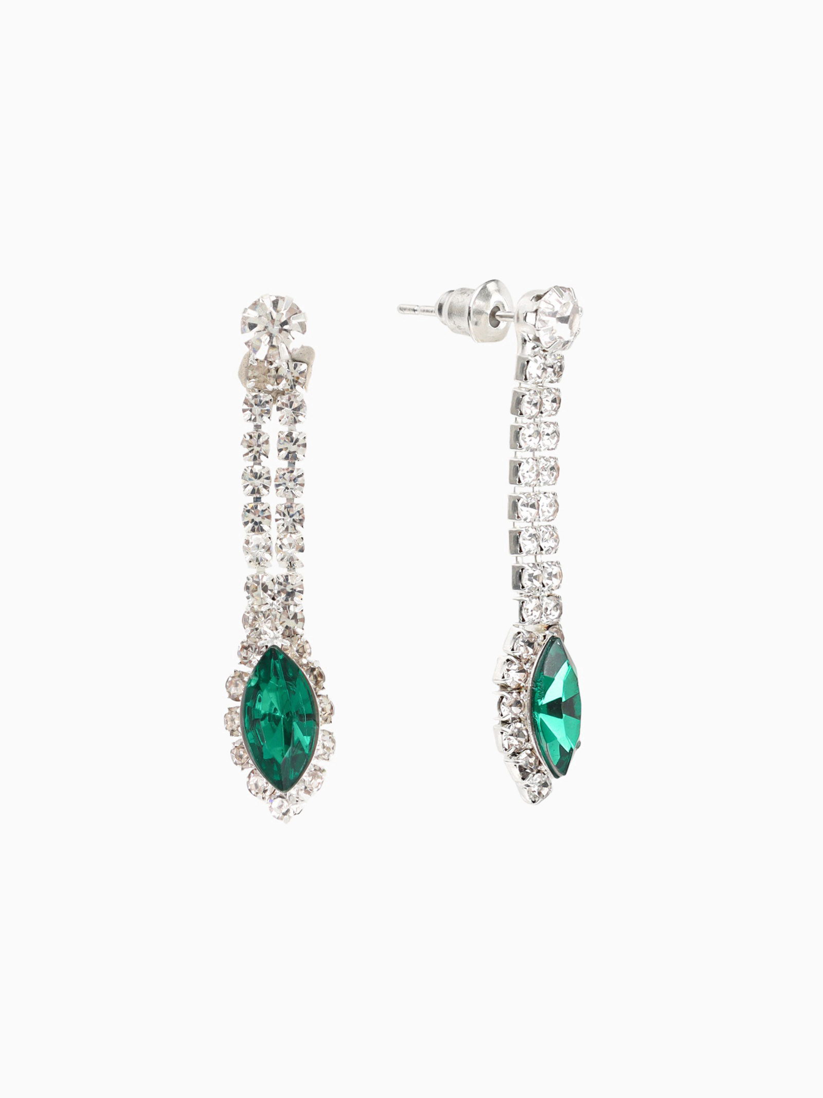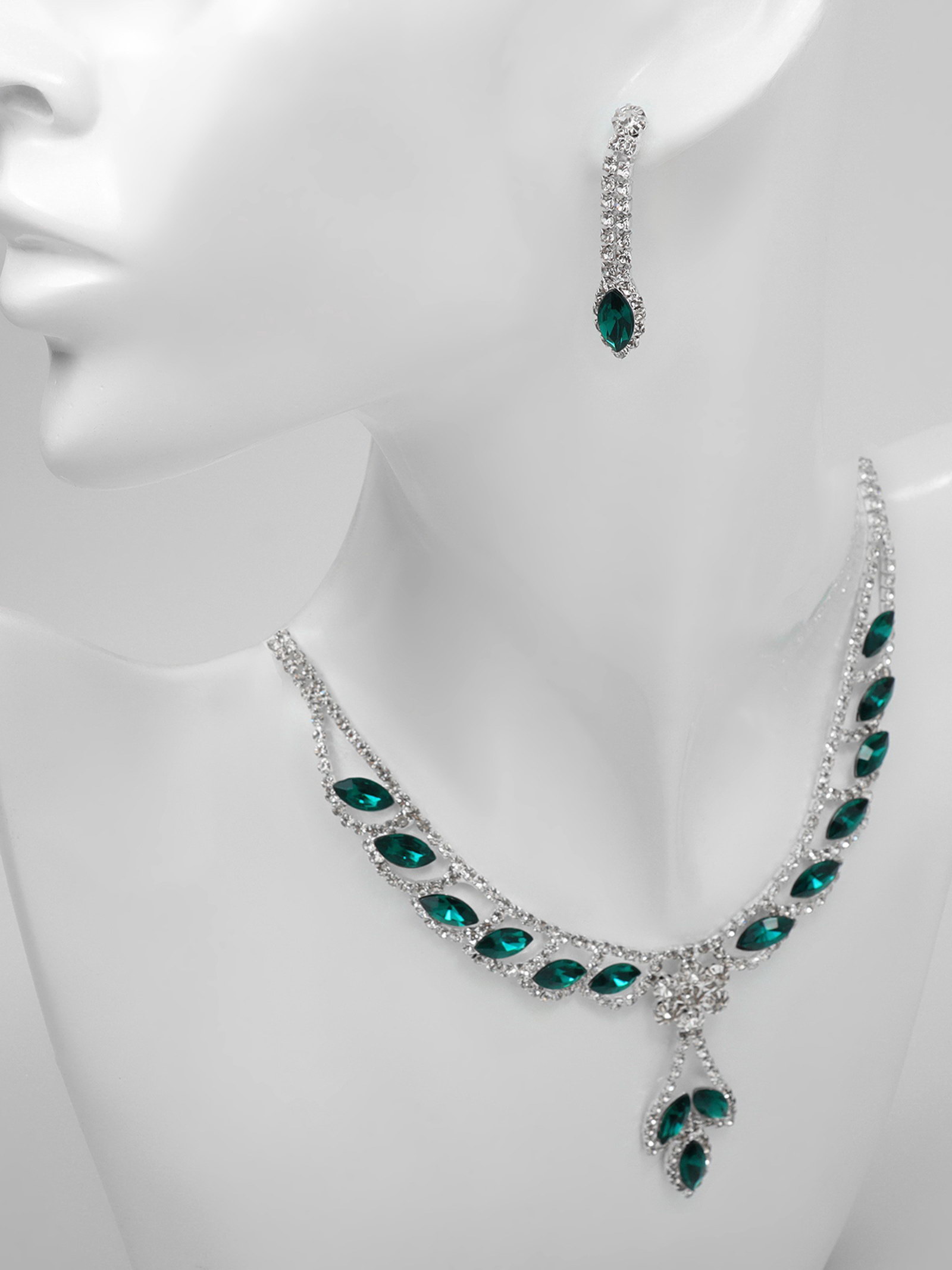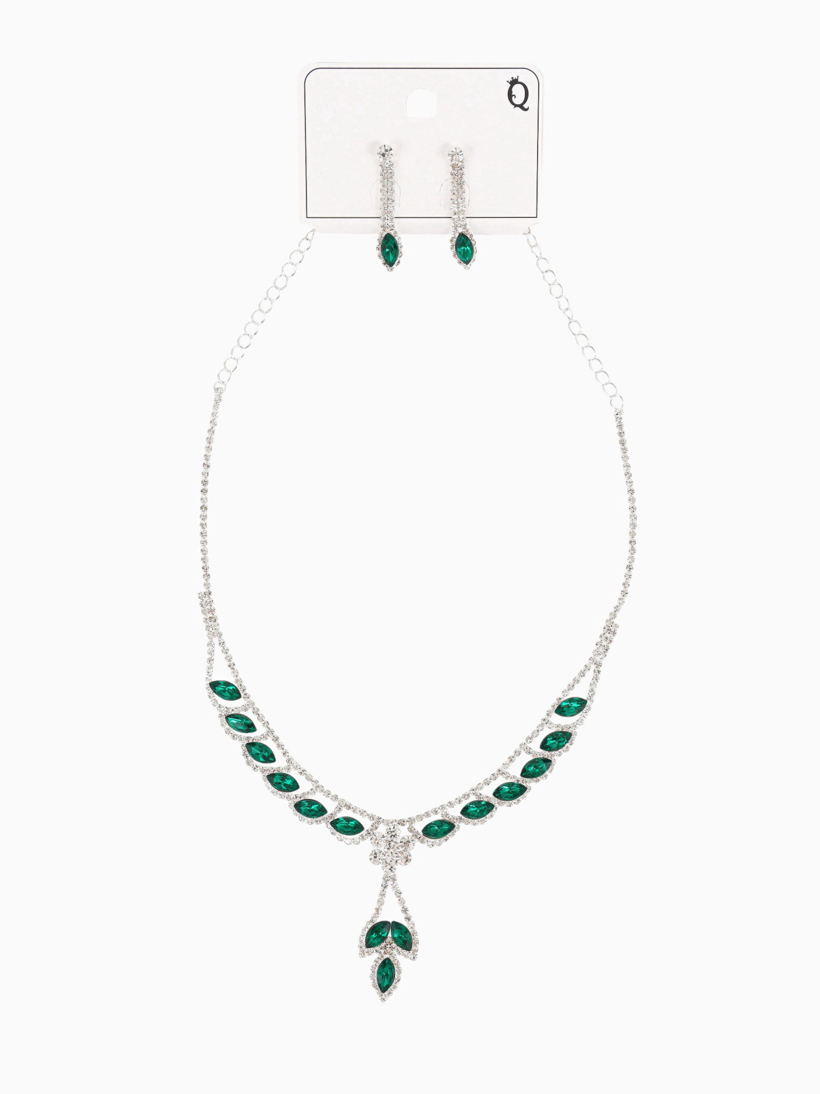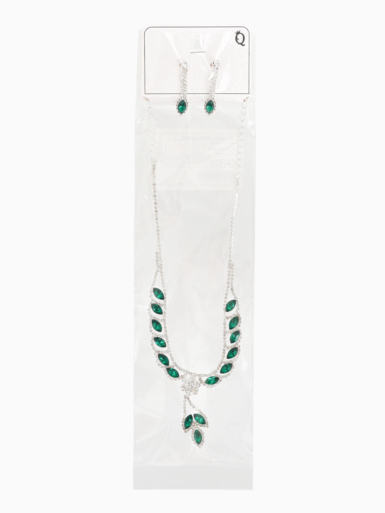 Набор 2 предмета: серьги, колье "Листопад" ромб, цвет изумрудно-белый в серебре, 45 см, 4.3x45x3.6 см., QF, Китай
