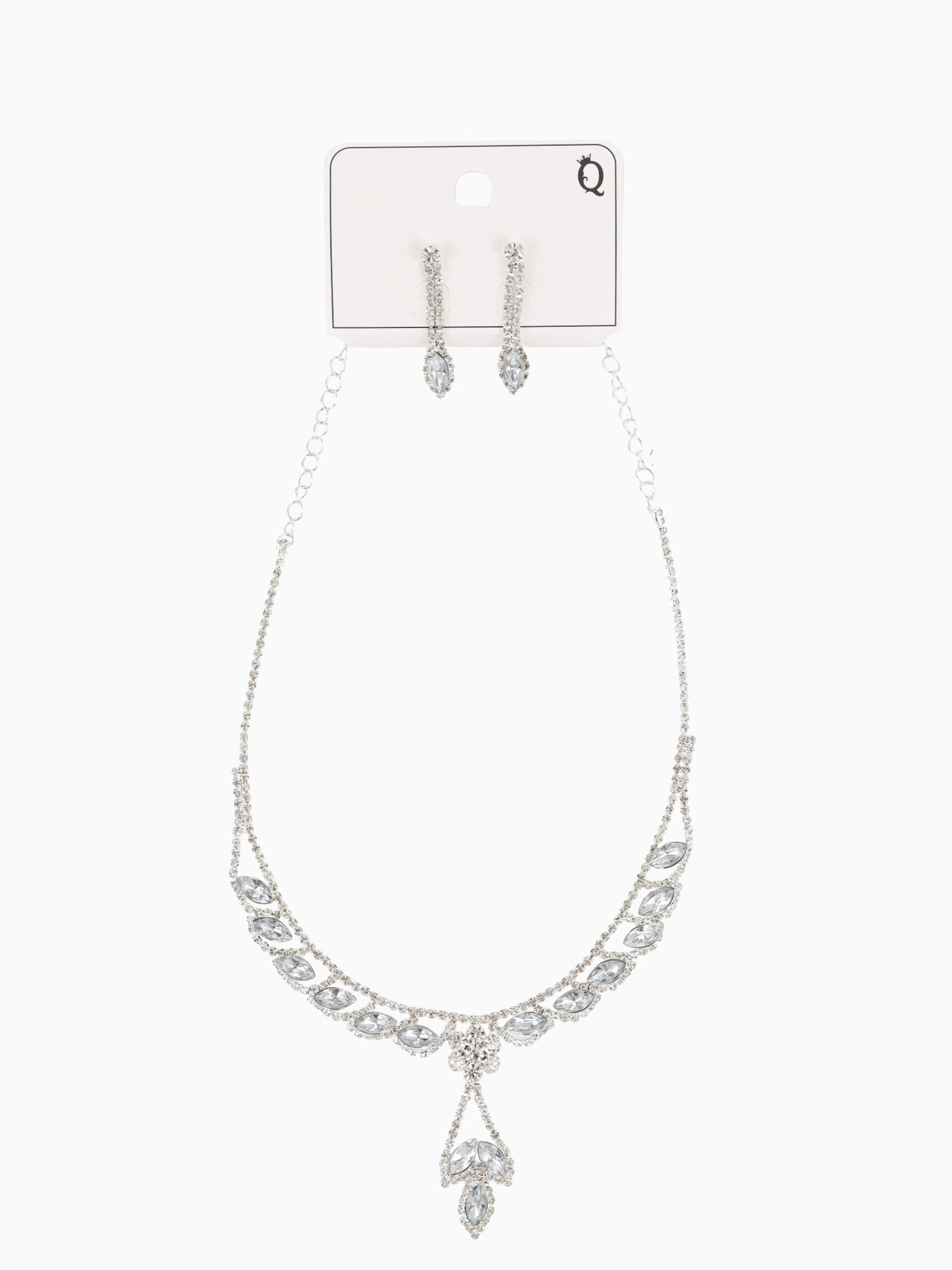 Набор 2 предмета: серьги, колье "Листопад" ромб, цвет белый в серебре, 45 см, 4.3x45x3.6 см., QF, Китай