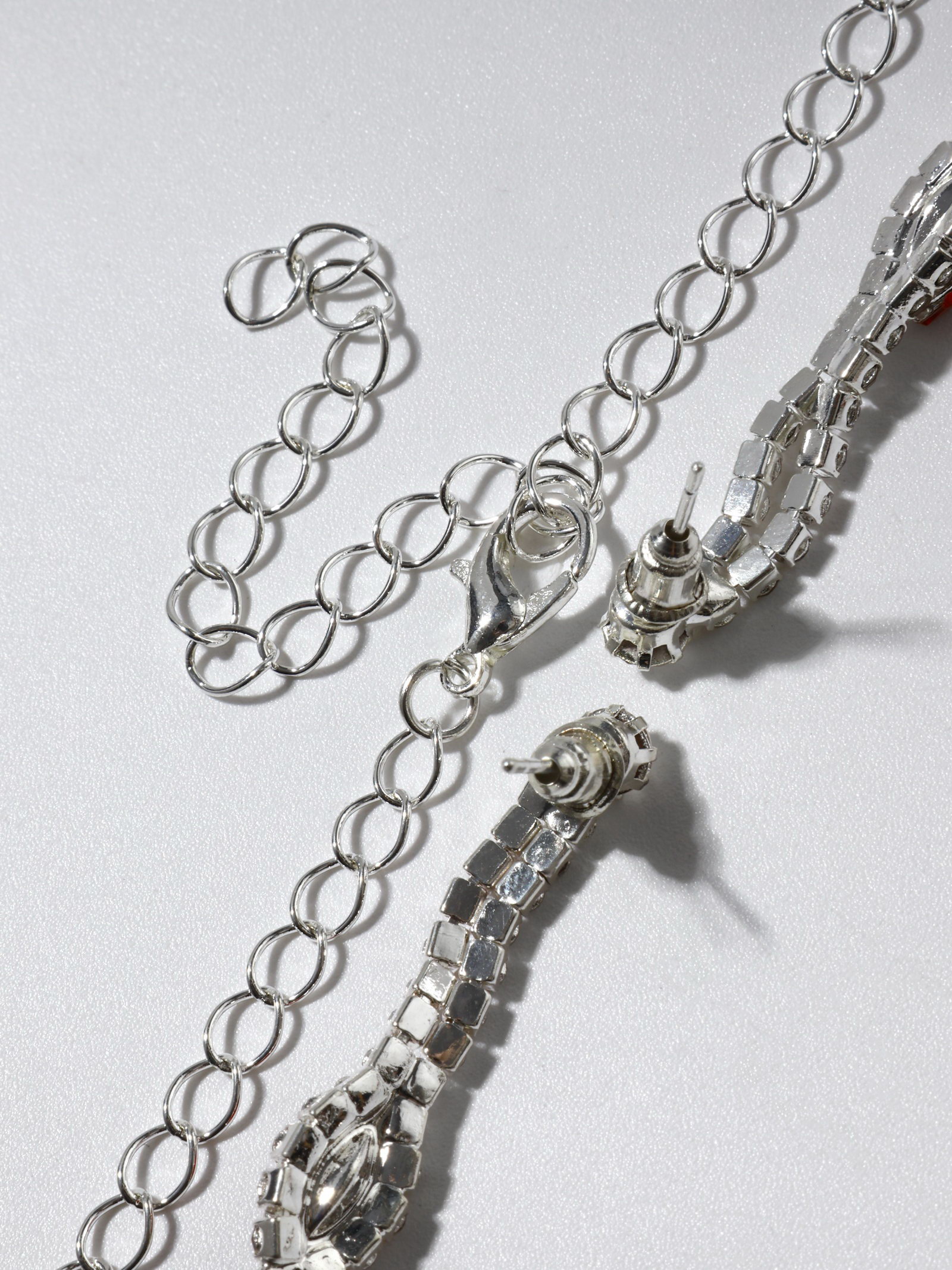 Вид: Колье, Серьги Вставка/Подвеска: Стекло, Стразы Размер упаковки: 9 x 0.5 x 18 см. Длина, см: 45 Тематика праздника: Универсальная тематика Вид застёжки: Застёжка пусет (гвоздик) Для кого: Для женщины tnved: 7117190000 Тематика: Винтаж Состав набора: Серьги + Колье В наборе, шт.: 2 Цвет фурнитуры: Серебряный Цвет: Красный Температурное ограничение: Нет Материал основы: Металл Набор: Да Набор из двух предметов: серьги и колье со стразами это элегантный аксессуар с уникальным дизайном, который добавит сияния вашему образу. Этот комплект идеально подойдет для любого мероприятия, подчеркивая утонченность и стиль. Серьги и колье можно носить вместе или раздельно, дополняя образы для любого случая. Советы по уходу за бижутерией