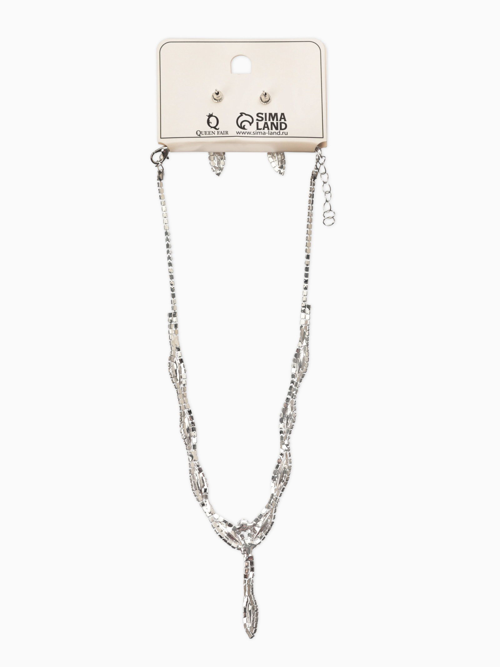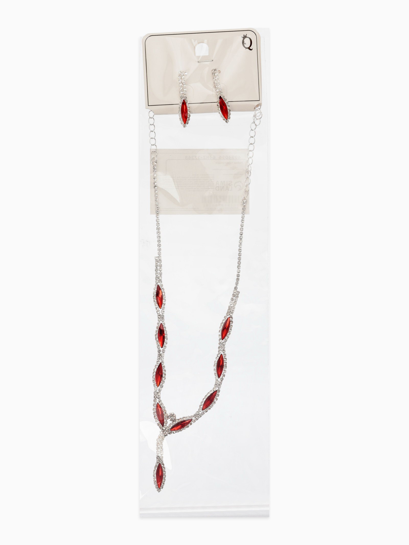 Набор 2 предмета: серьги, колье "Листопад" тонкий ромб, цвет красно-белый в серебре, 45 см, 4.5x45x3.9 см., QF, Китай