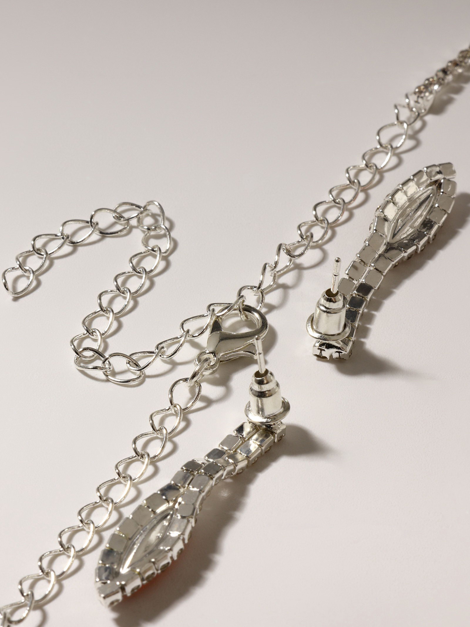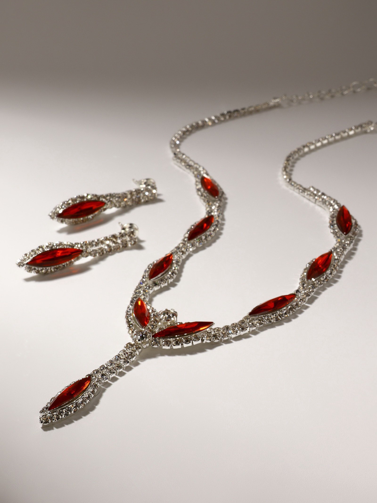 Вид: Колье, Серьги Тематика: Кристаллы, Яркая Вставка/Подвеска: Стекло, Стразы Размер упаковки: 7 x 0.5 x 27 см. Длина, см: 45 Тематика праздника: Универсальная тематика Вид застёжки: Застёжка пусет (гвоздик) Для кого: Для женщины tnved: 7117190000 Температурное ограничение: Нет Состав набора: Серьги + Колье В наборе, шт.: 2 Цвет фурнитуры: Серебряный Цвет: Красный Материал основы: Металл Набор: Да Набор из двух предметов: серьги и колье со стразами это элегантный аксессуар с уникальным дизайном, который добавит сияния вашему образу. Этот комплект идеально подойдет для любого мероприятия, подчеркивая утонченность и стиль. Серьги и колье можно носить вместе или раздельно, дополняя образы для любого случая. Советы по уходу за бижутерией