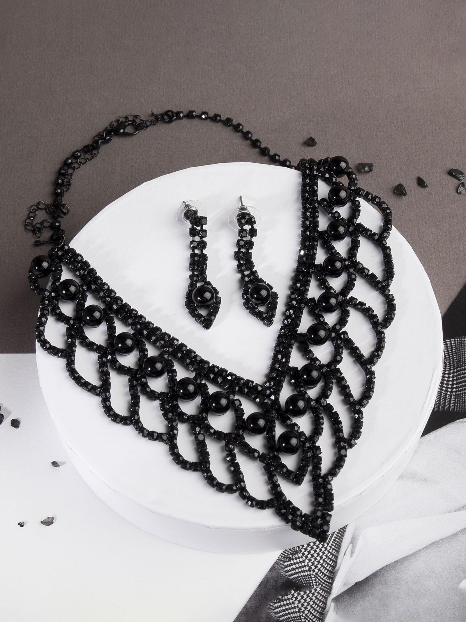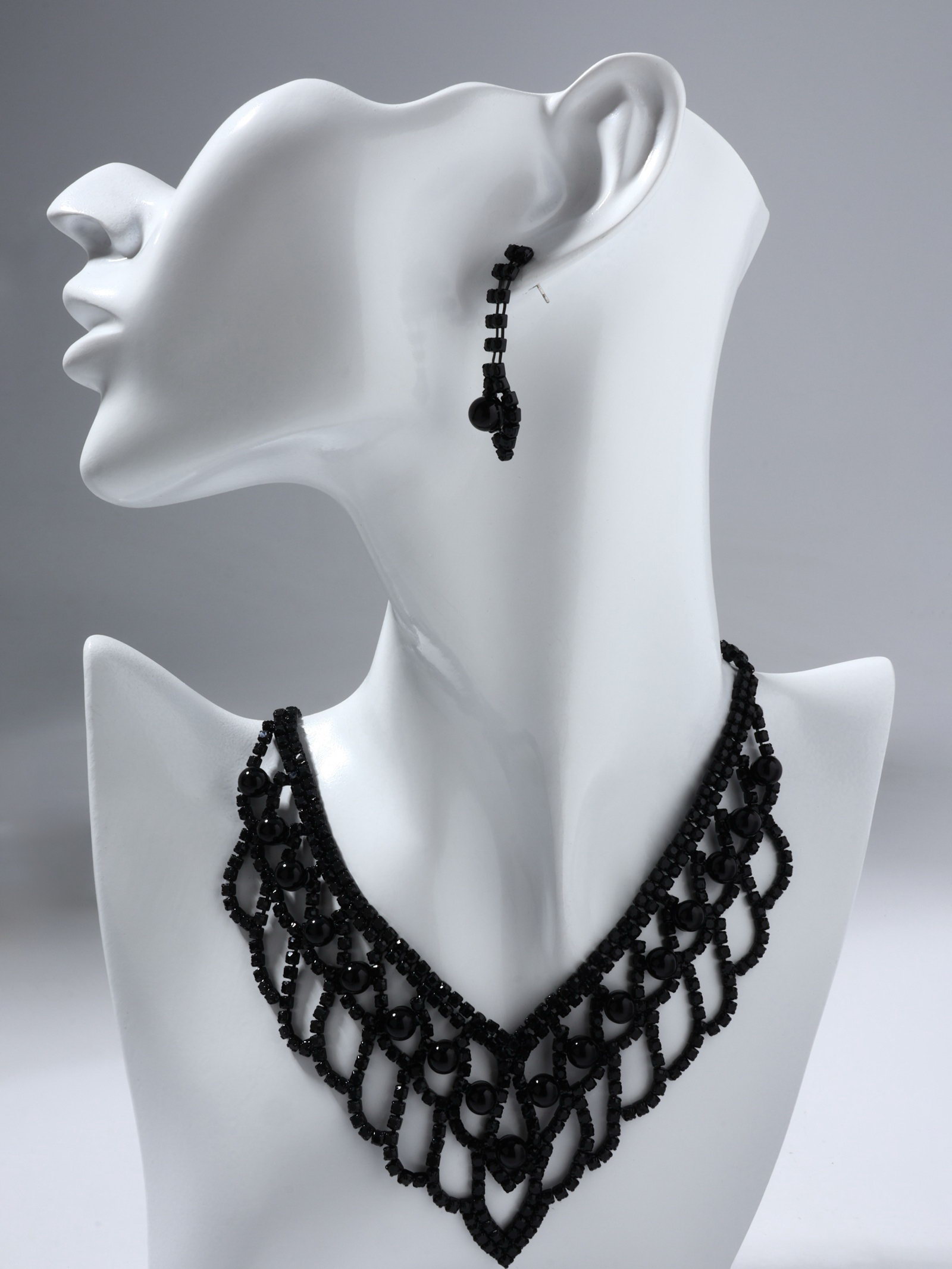 Вид: Колье, Серьги Вставка/Подвеска: Стекло, Стразы Размер упаковки: 7 x 1 x 23 см. Длина, см: 30 Тематика праздника: Универсальная тематика Вид застёжки: Застёжка пусет (гвоздик) tnved: 7117190000 Для кого: Для женщины Тематика: Винтаж Цвет: Чёрный В наборе, шт.: 2 Состав набора: Серьги + Колье Цвет фурнитуры: Чёрный Набор: Да Материал основы: Металл Набор из двух предметов: серьги и колье со стразами это элегантный аксессуар с уникальным дизайном, который добавит сияния вашему образу. Этот комплект идеально подойдет для любого мероприятия, подчеркивая утонченность и стиль. Серьги и колье можно носить вместе или раздельно, дополняя образы для любого случая. Советы по уходу за бижутерией