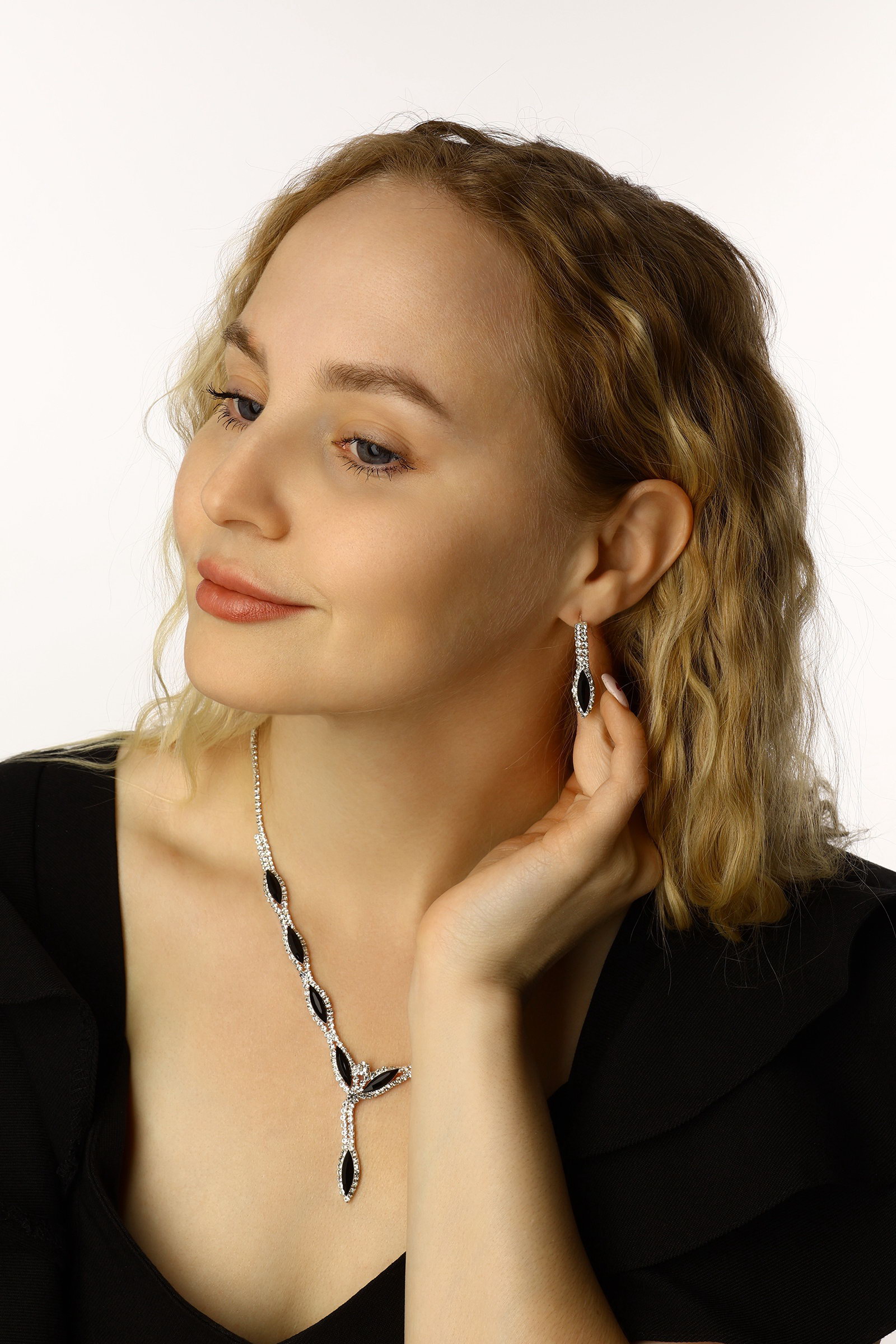 Вид: Колье, Серьги Вставка/Подвеска: Стекло, Стразы Размер упаковки: 7 x 1 x 25 см. Длина, см: 45 Тематика праздника: Универсальная тематика Вид застёжки: Застёжка пусет (гвоздик) Для кого: Для женщины tnved: 7117190000 Тематика: Винтаж В наборе, шт.: 2 Состав набора: Серьги + Колье Цвет фурнитуры: Серебряный Цвет: Чёрный Набор: Да Материал основы: Металл Набор из двух предметов: серьги и колье со стразами это элегантный аксессуар с уникальным дизайном, который добавит сияния вашему образу. Этот комплект идеально подойдет для любого мероприятия, подчеркивая утонченность и стиль. Серьги и колье можно носить вместе или раздельно, дополняя образы для любого случая. Советы по уходу за бижутерией