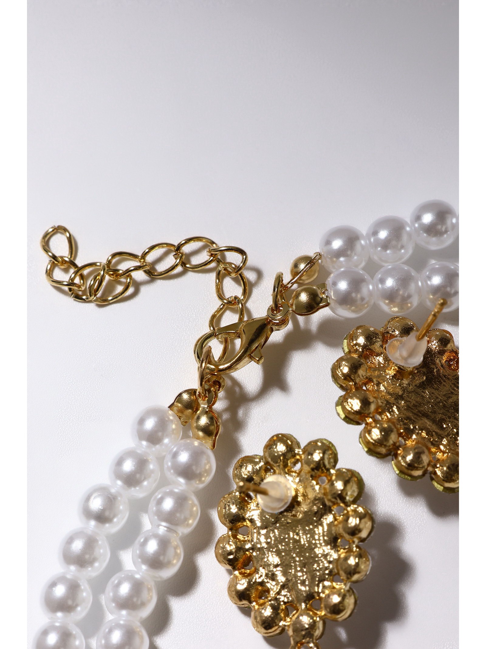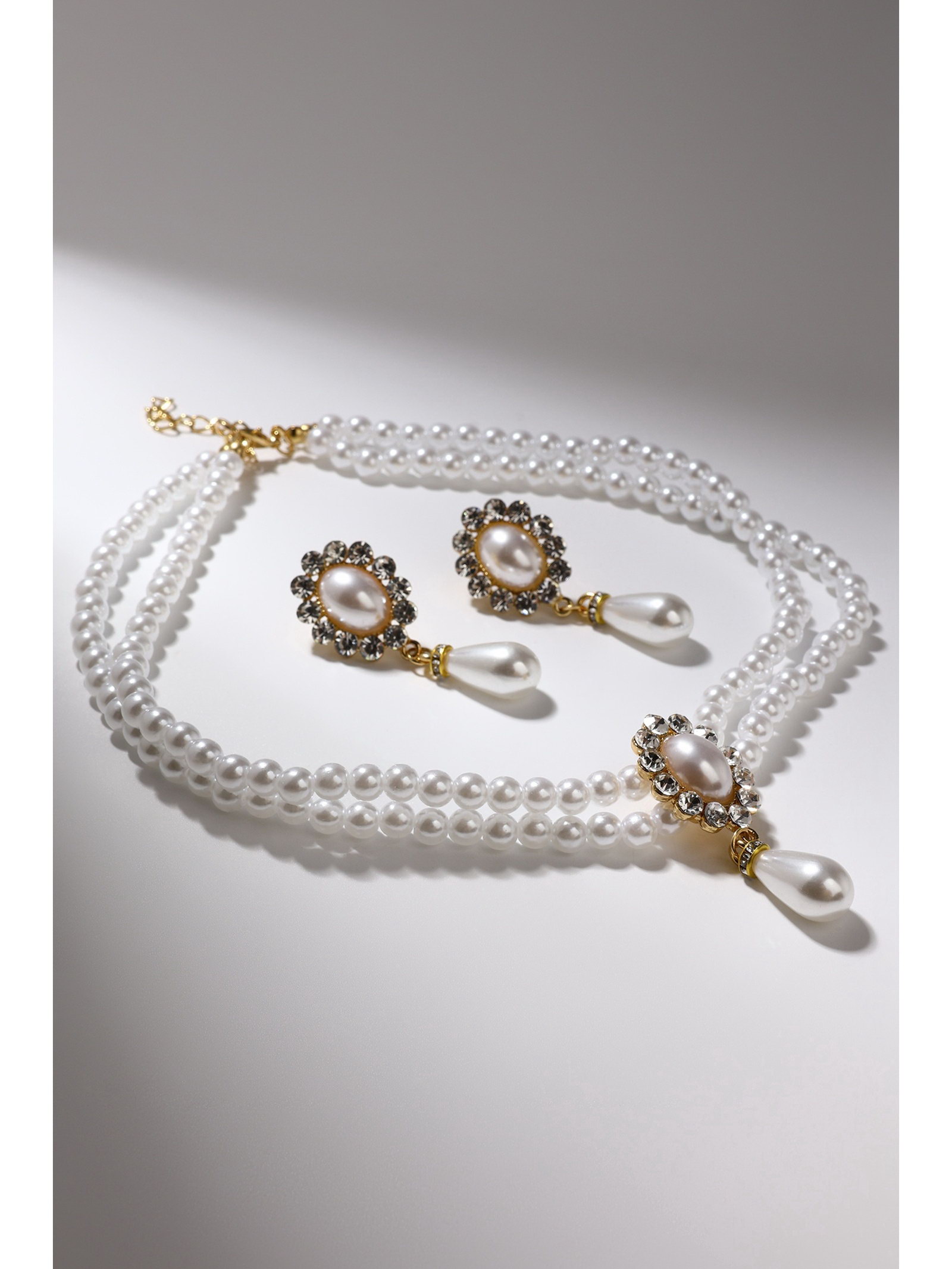 Набор 2 предмета: серьги, колье "Антуанетта" вспышка, цвет белый в золоте, 40 см, 3x40x1.5 см., QF, Китай