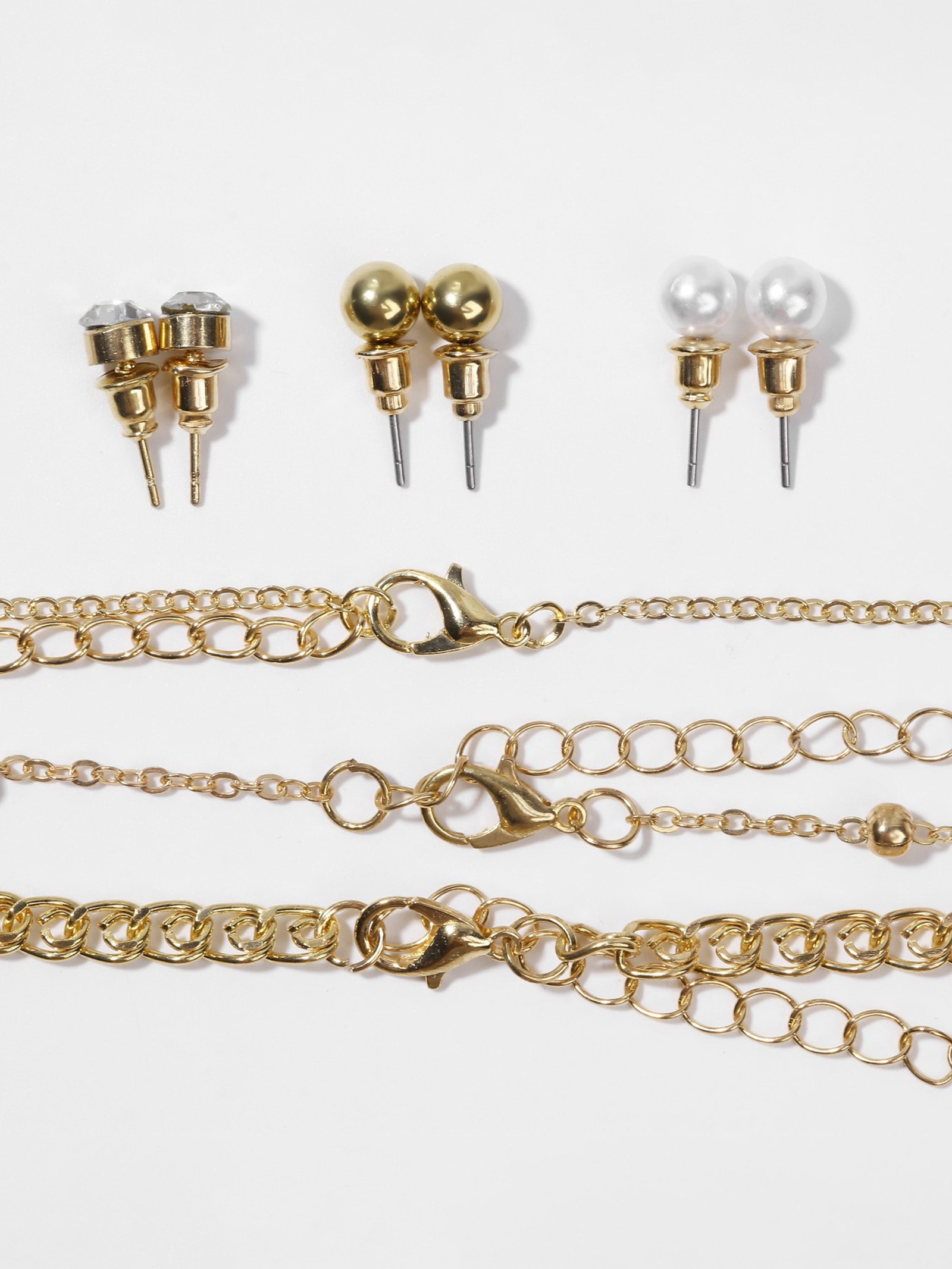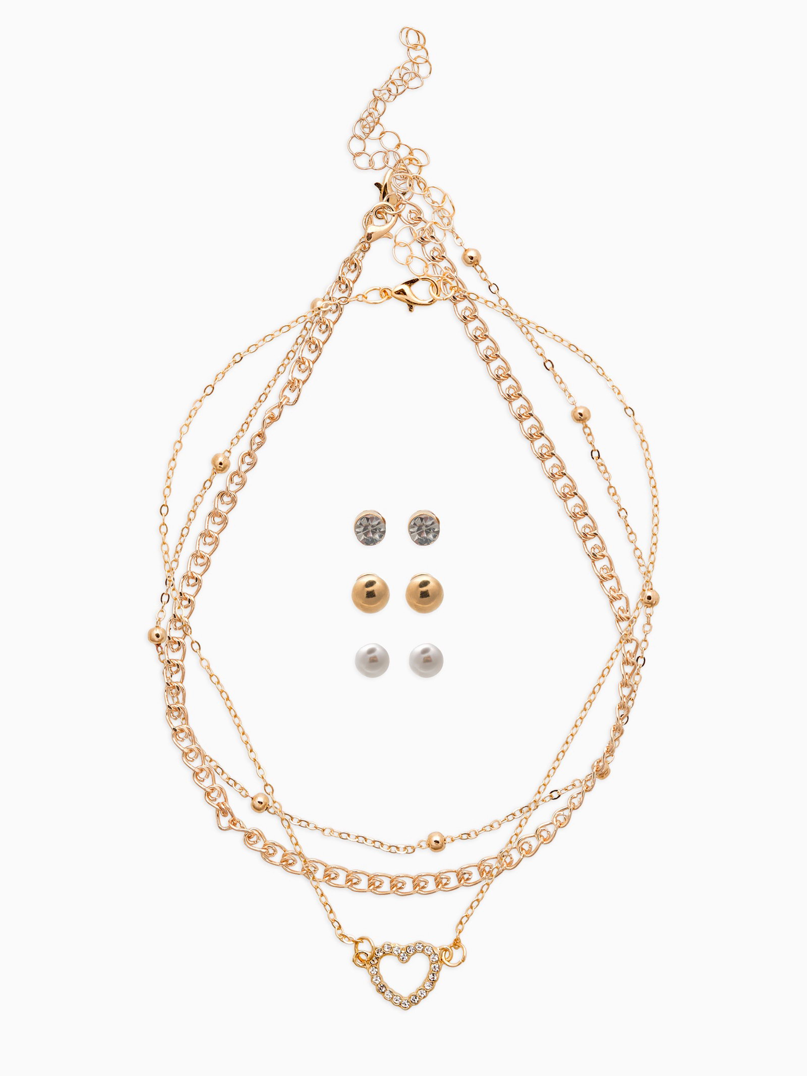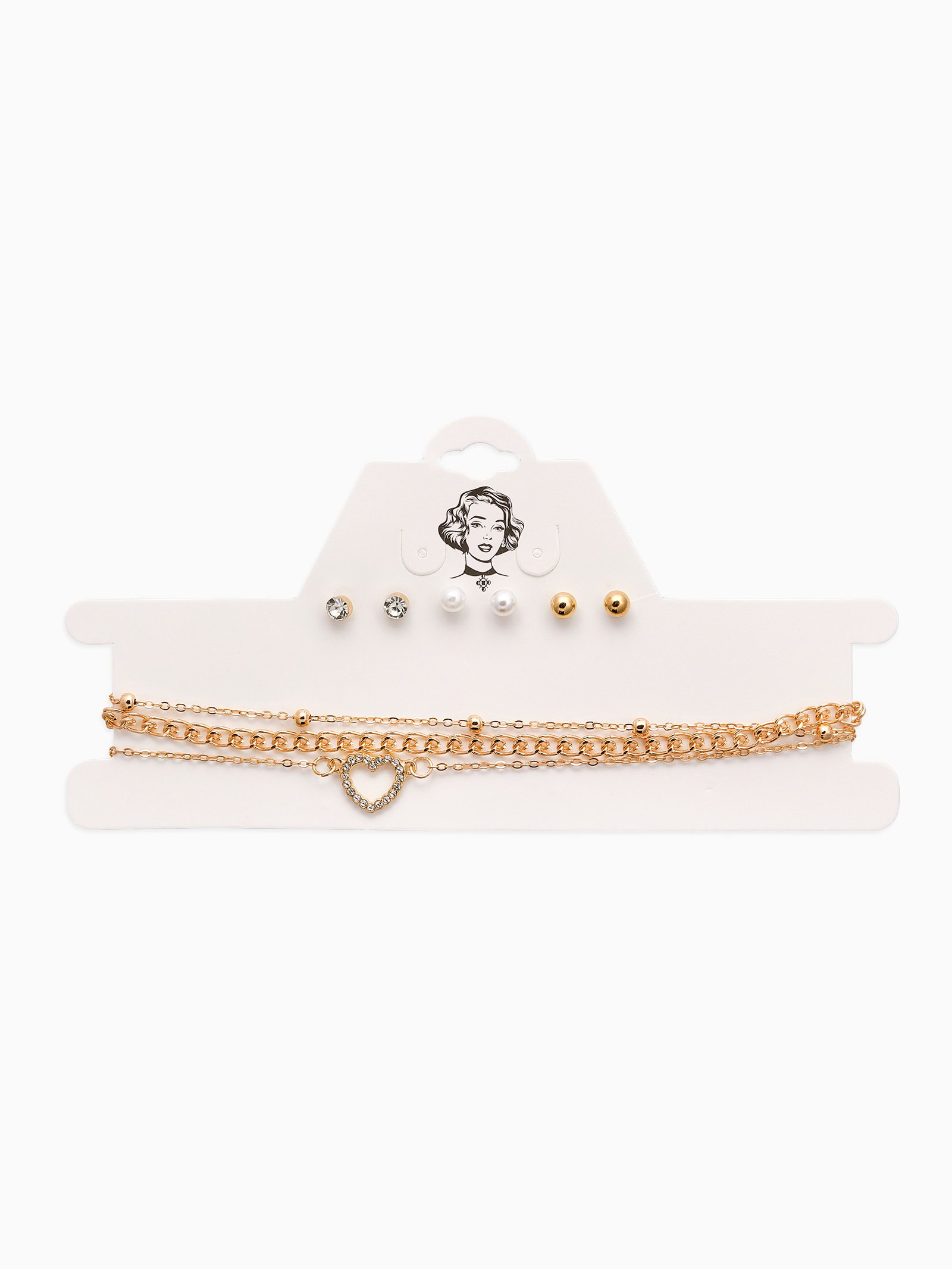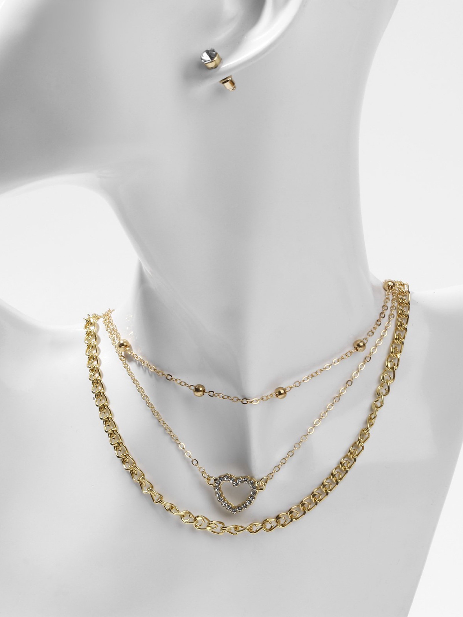 Набор 2 предмета: 3 колье, 3 пары пусет "Эстетика" сердце, цвет белый в золоте, 32 см, 0.6x32x0.6 см., QF, Китай