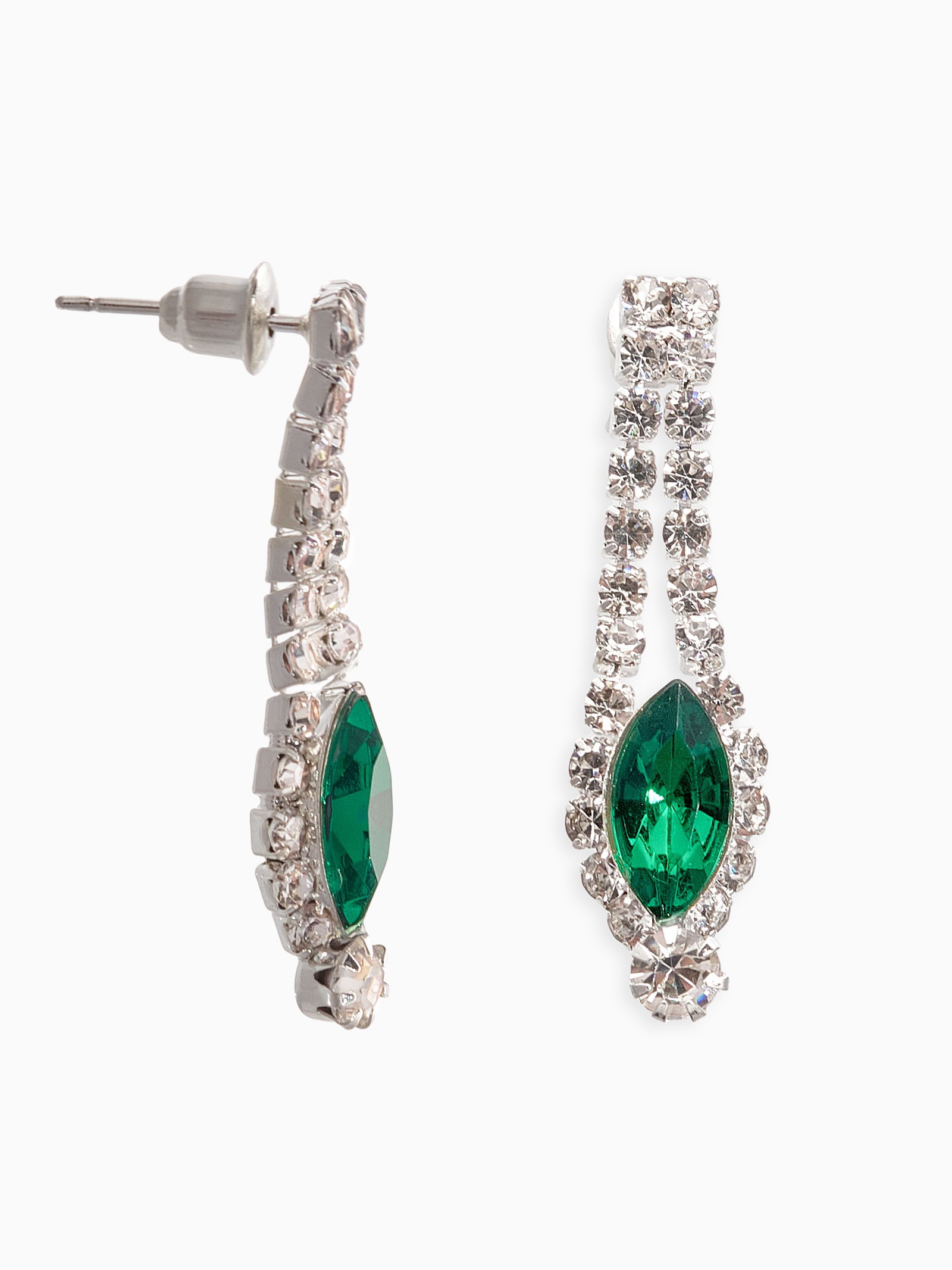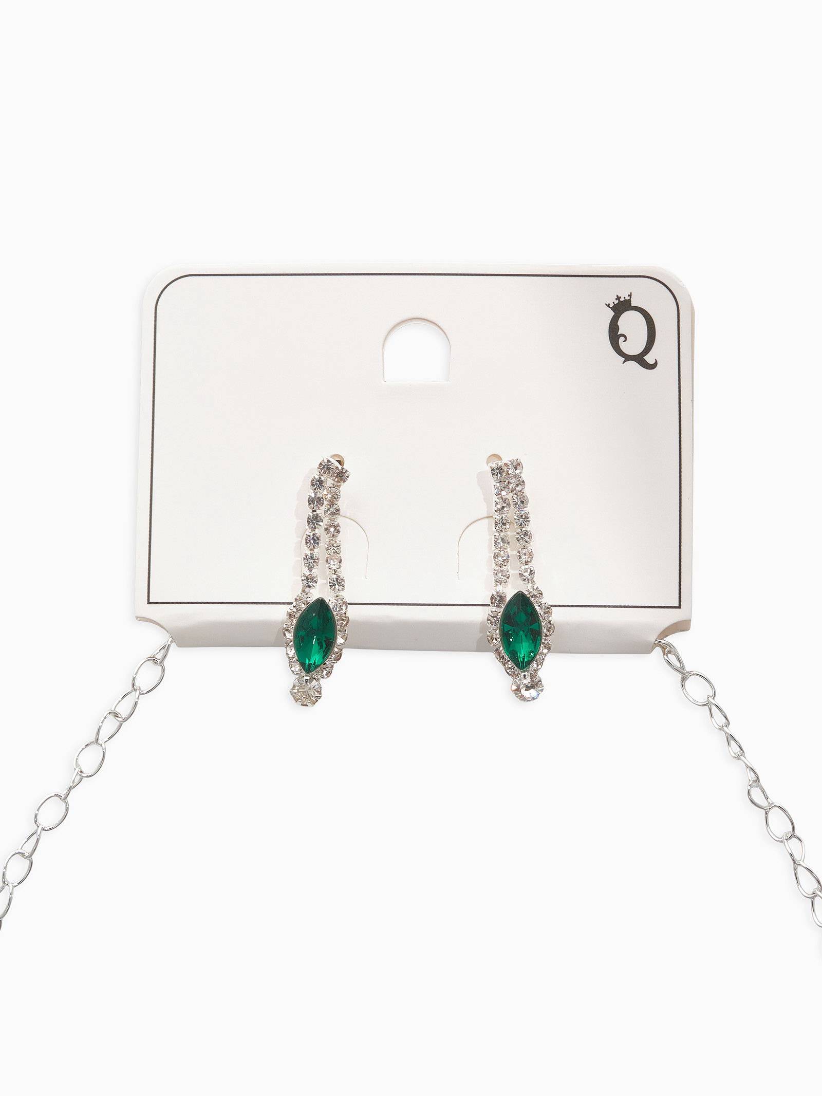 Набор 2 предмета: серьги, колье "Листопад" утончённый ромб, цвет бело-изумрудный в серебре, 32 см, 1x32x3.7 см., QF, Китай